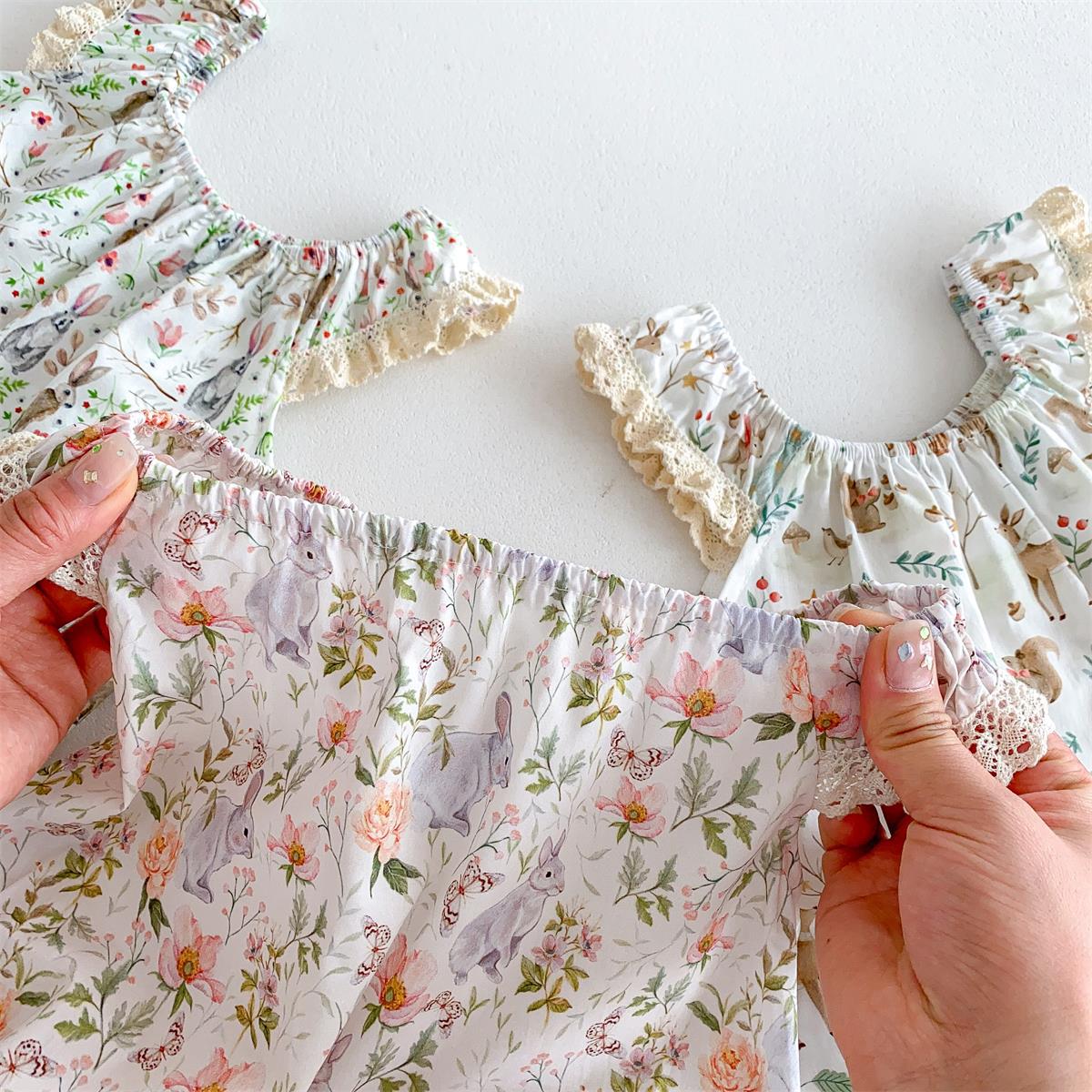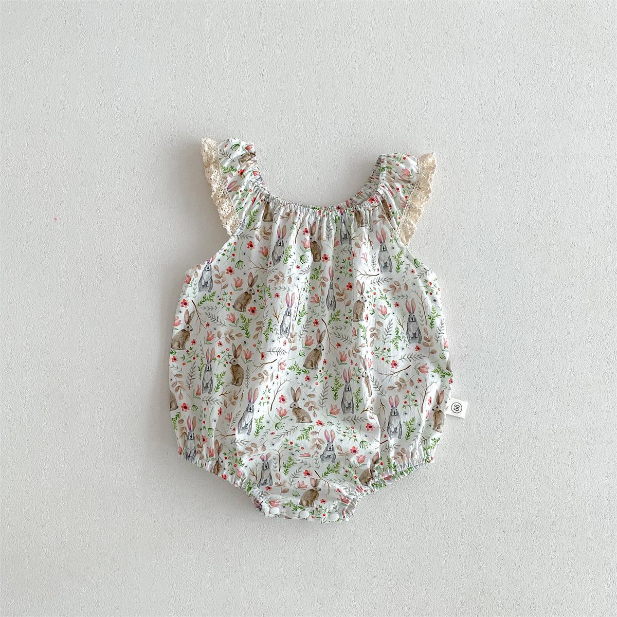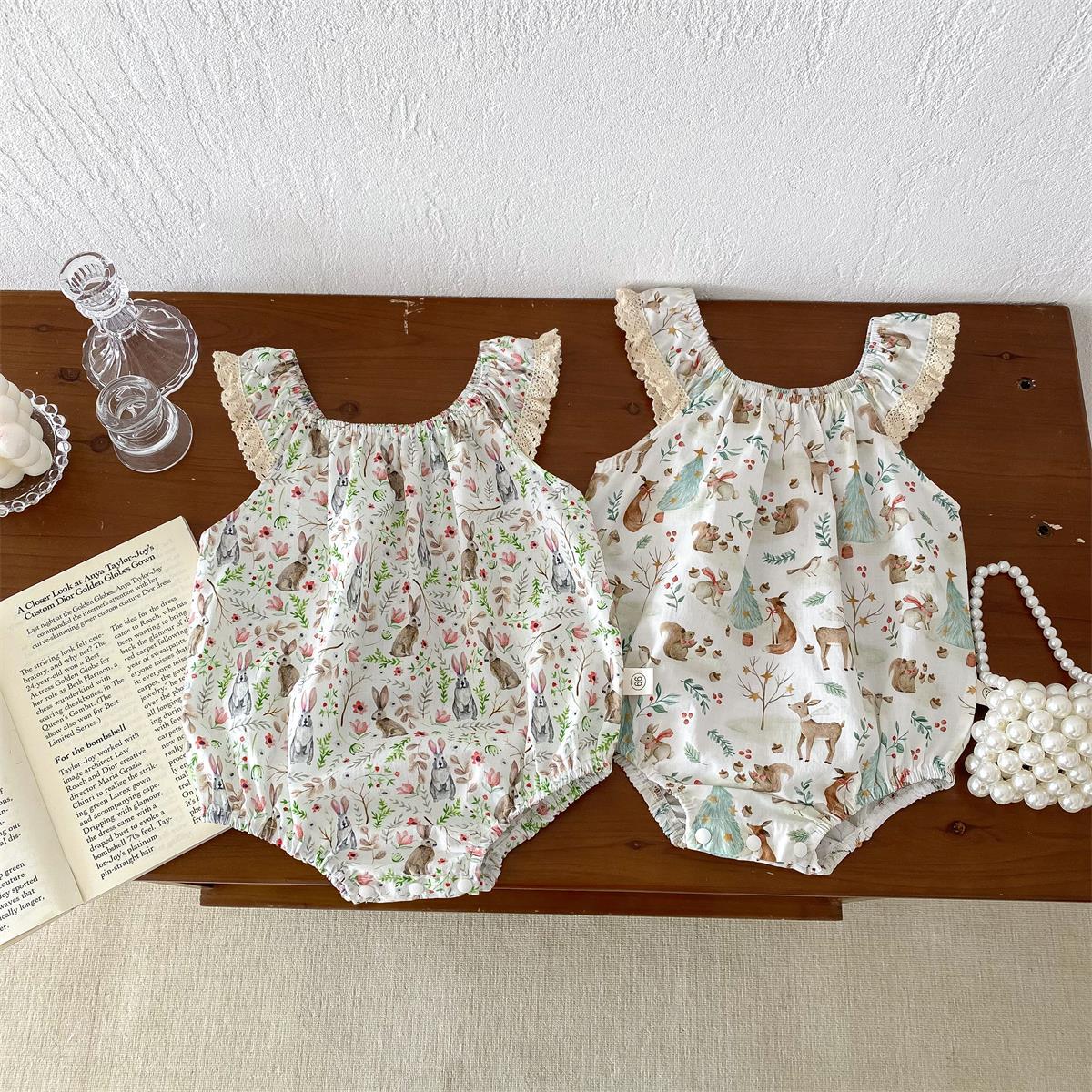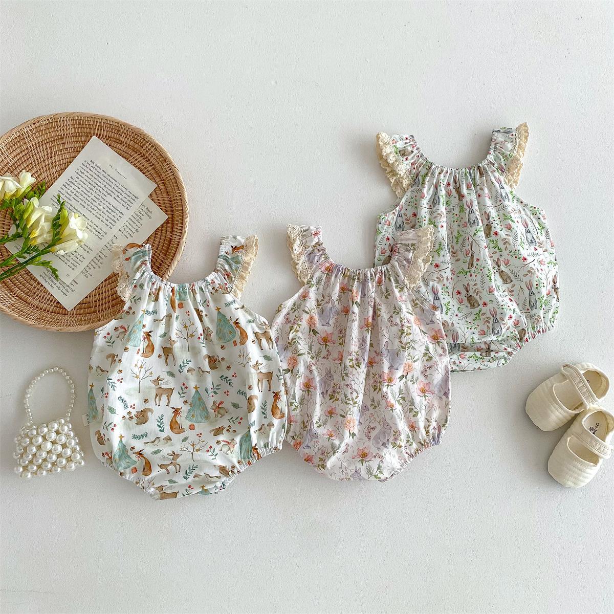 2025 Verano Estilo Coreano Arnés de Tirantes Bebé Niña Mono Delgado sin Mangas Recién Nacido Algodón Mameluco