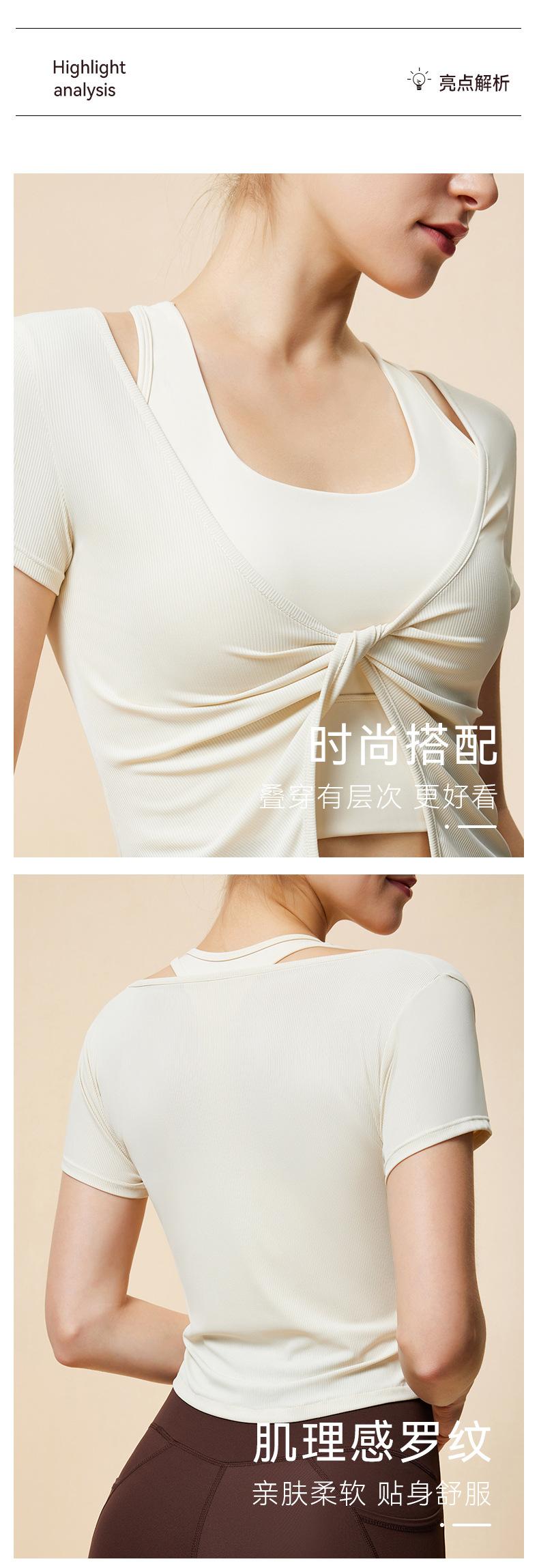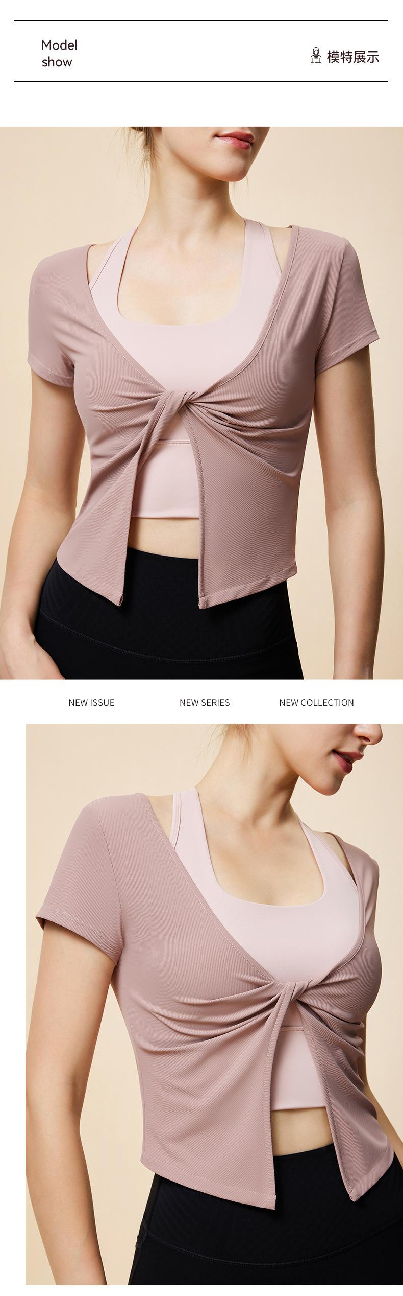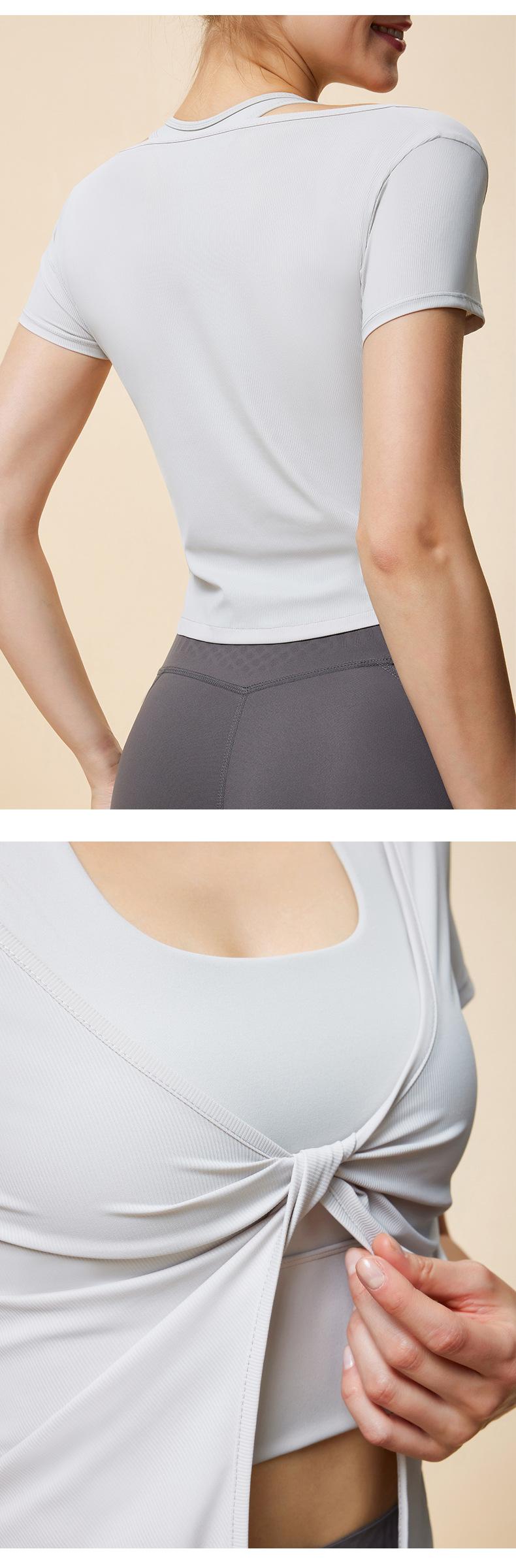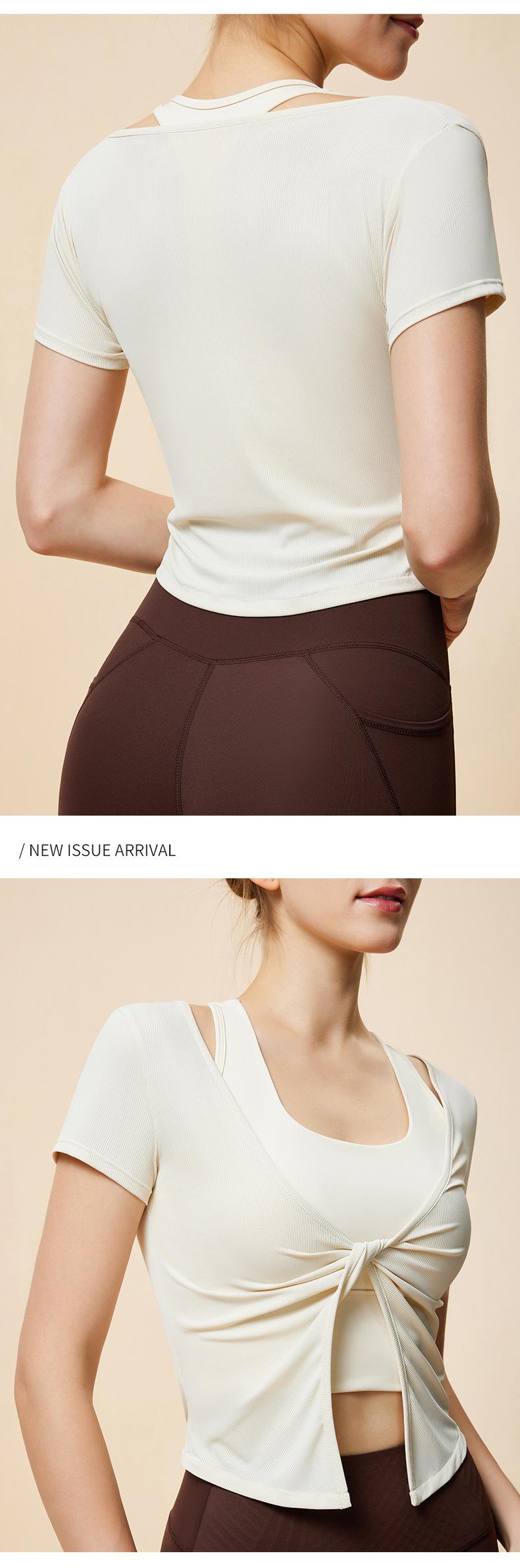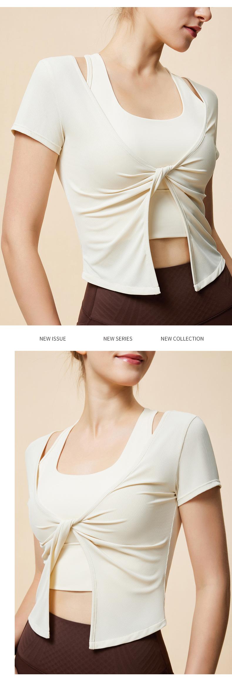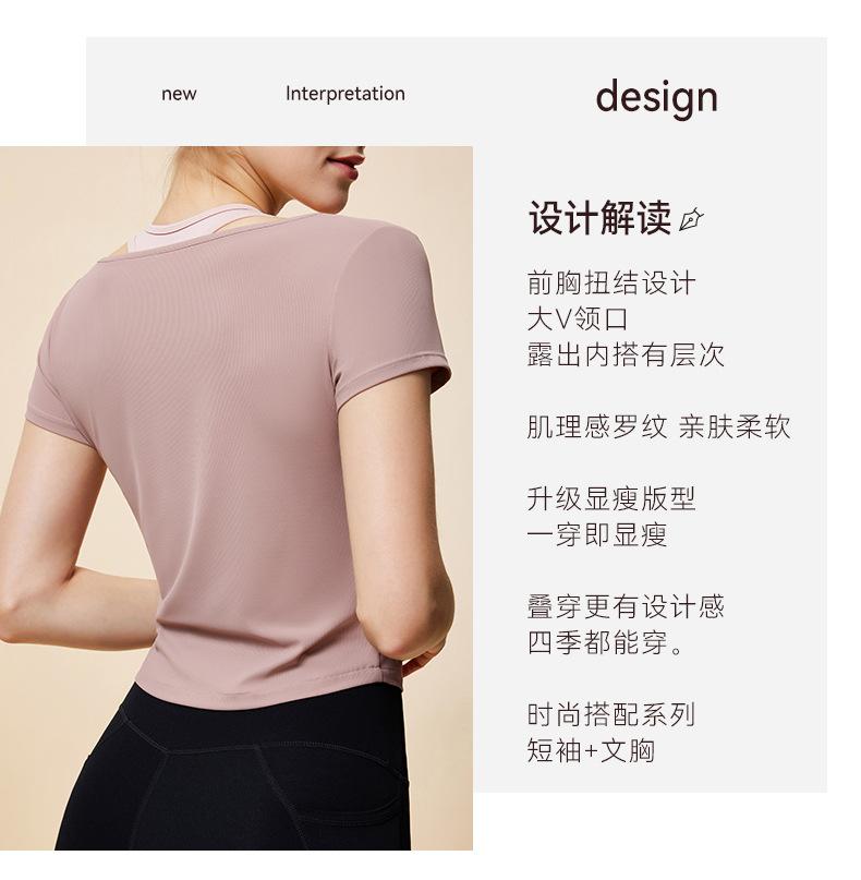 Nueva ropa deportiva de yoga de manga corta con escote en I y espalda descubierta, chaleco de yoga adelgazante con cobertura de carne, conjunto deportivo de dos piezas