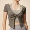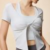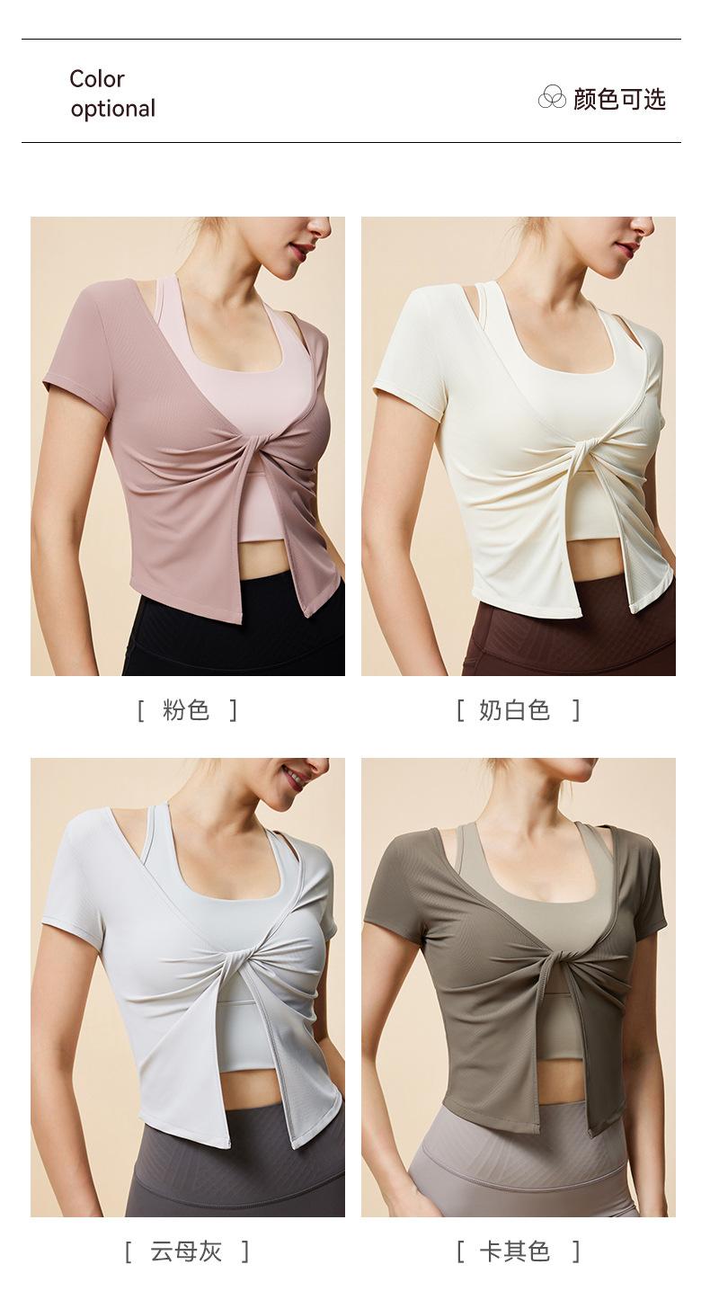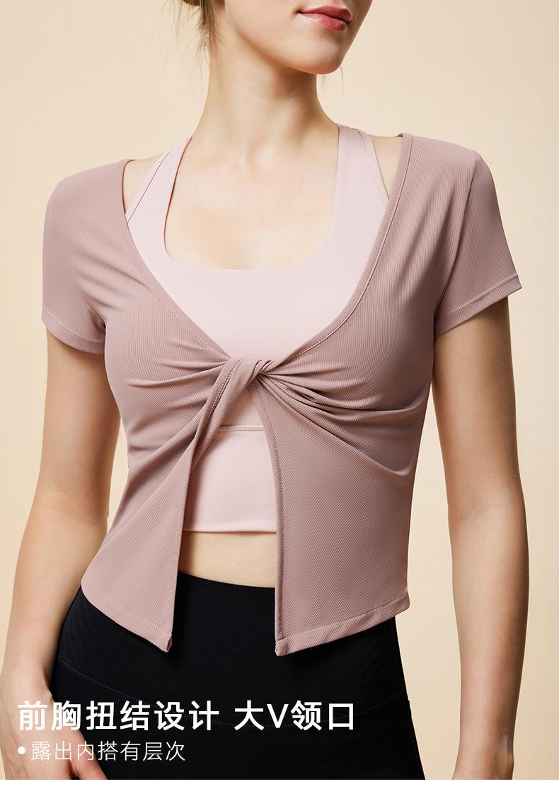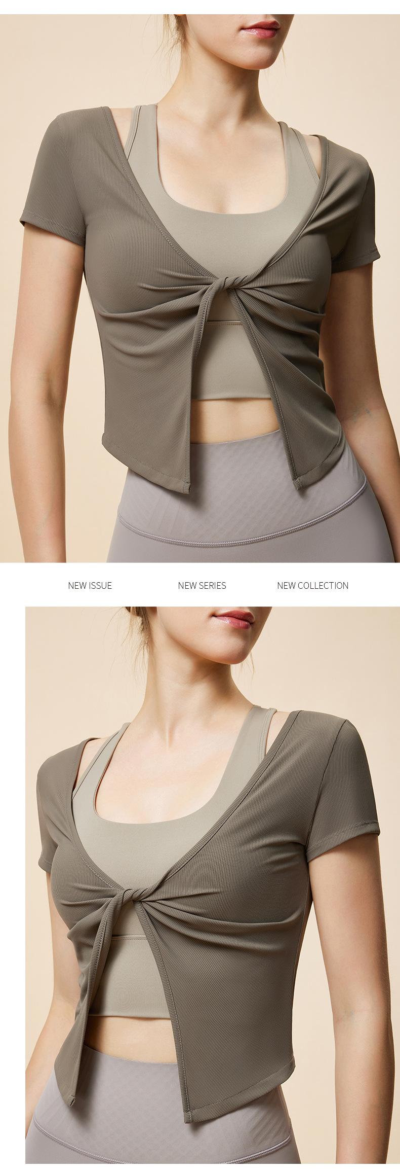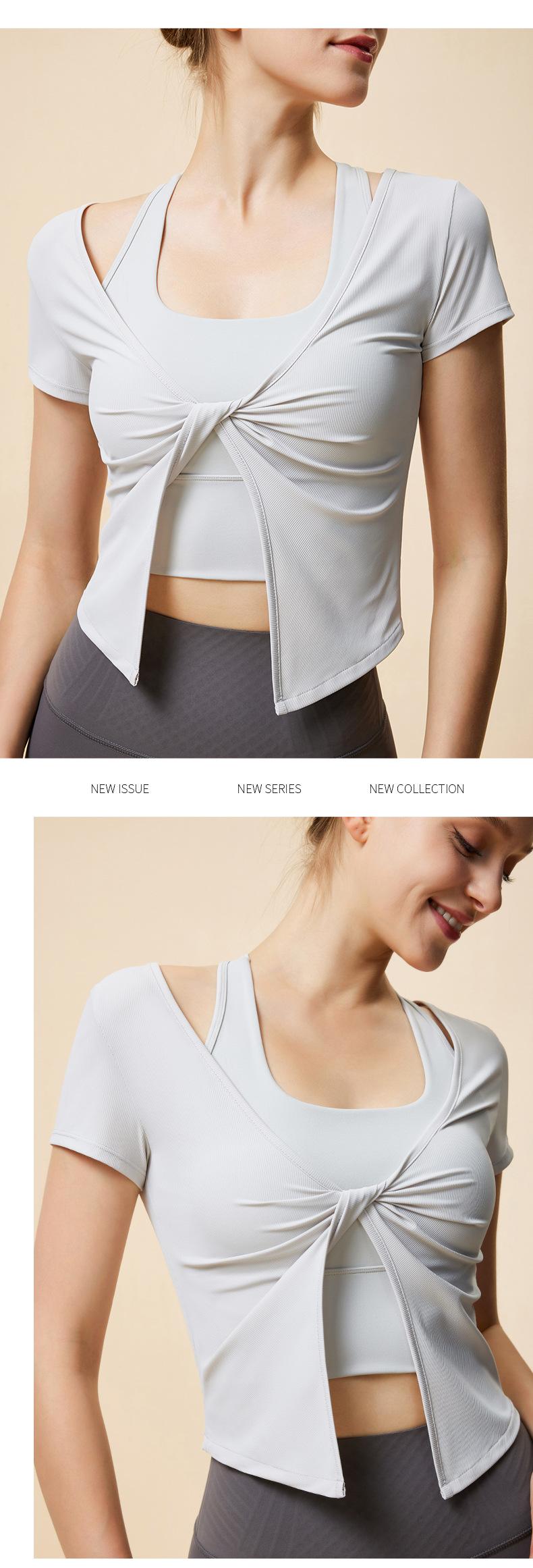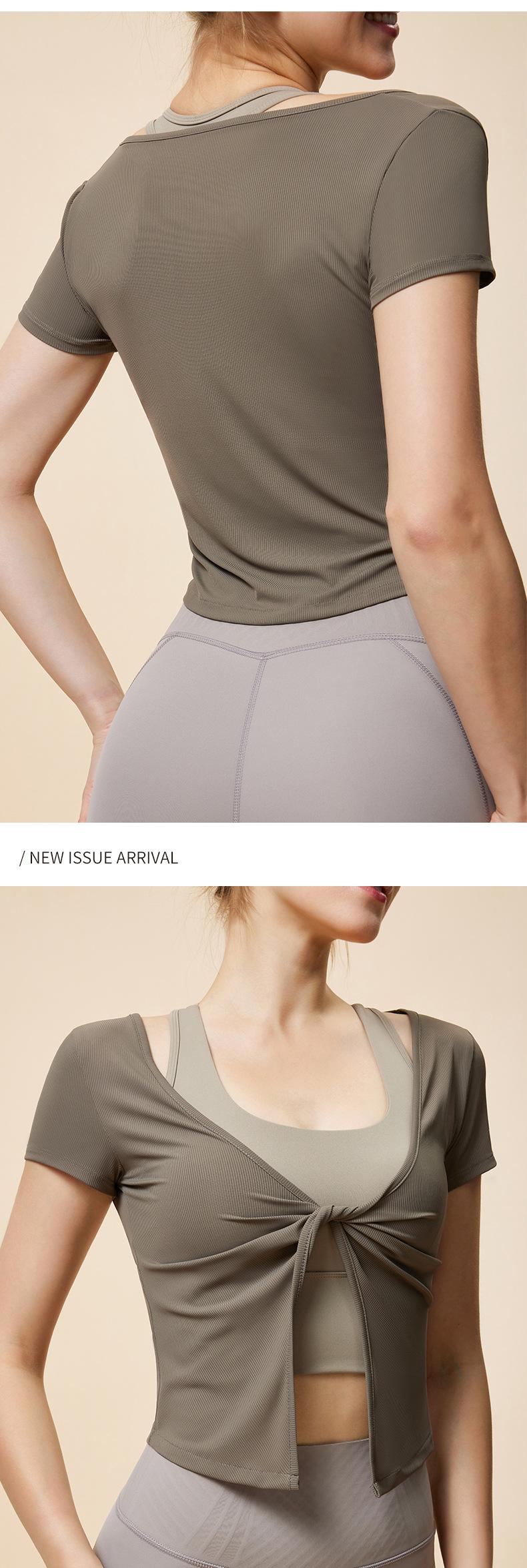 Nueva ropa deportiva de yoga de manga corta con escote en I y espalda descubierta, chaleco de yoga adelgazante con cobertura de carne, conjunto deportivo de dos piezas