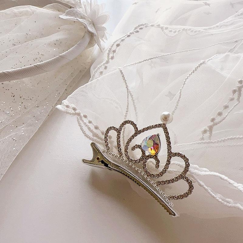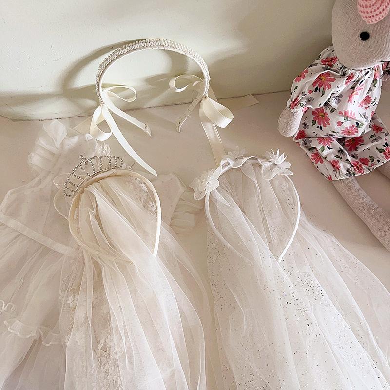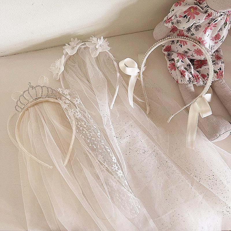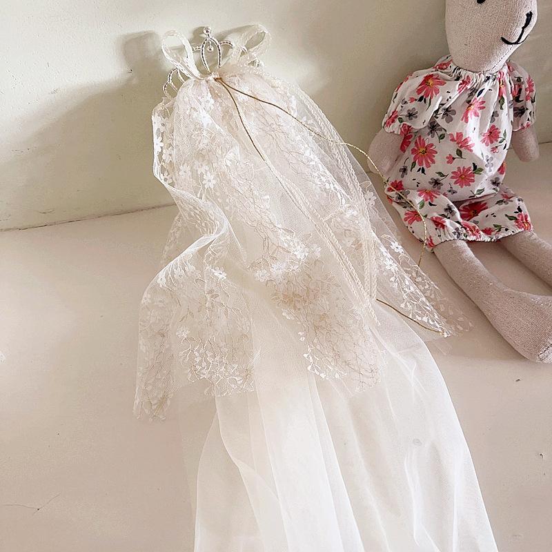 Nuevo estilo francés vintage de encaje de malla con bordado de perlas, pétalos, corona de diamantes, velo para niña de las flores, accesorios para el cabello