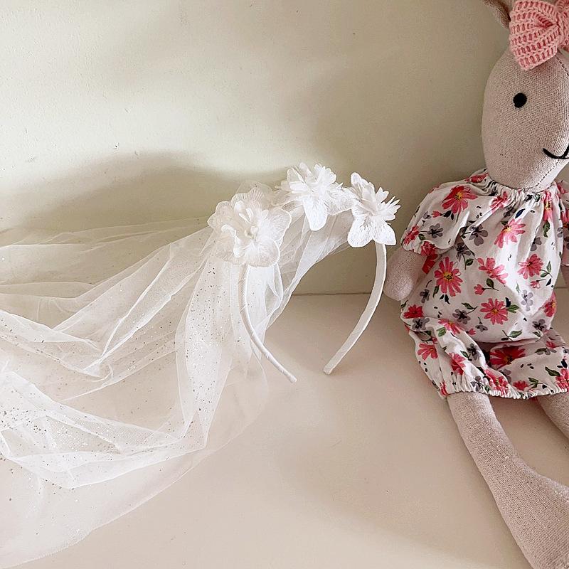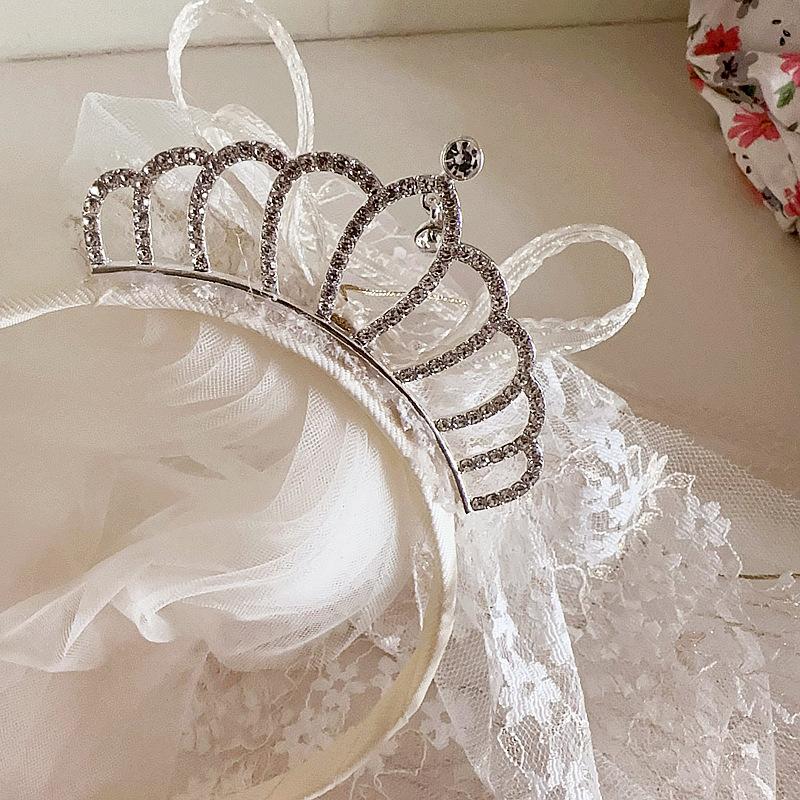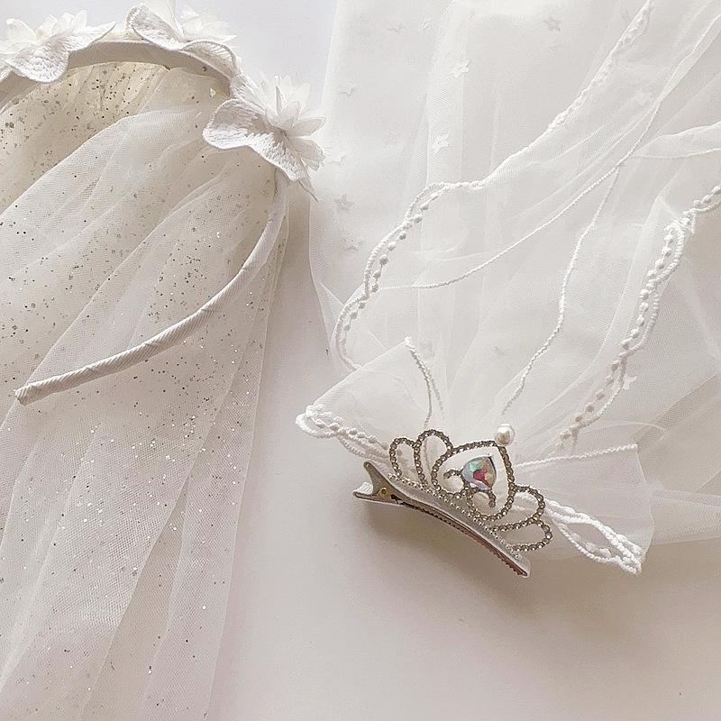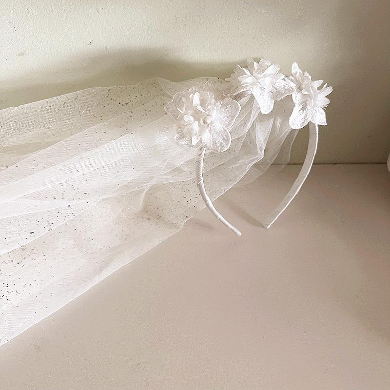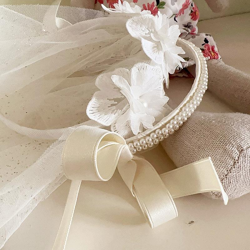 Embroidered floral yarn, Diamond Crown yarn, Pearl cotton headband, Five-star Press-clip veil