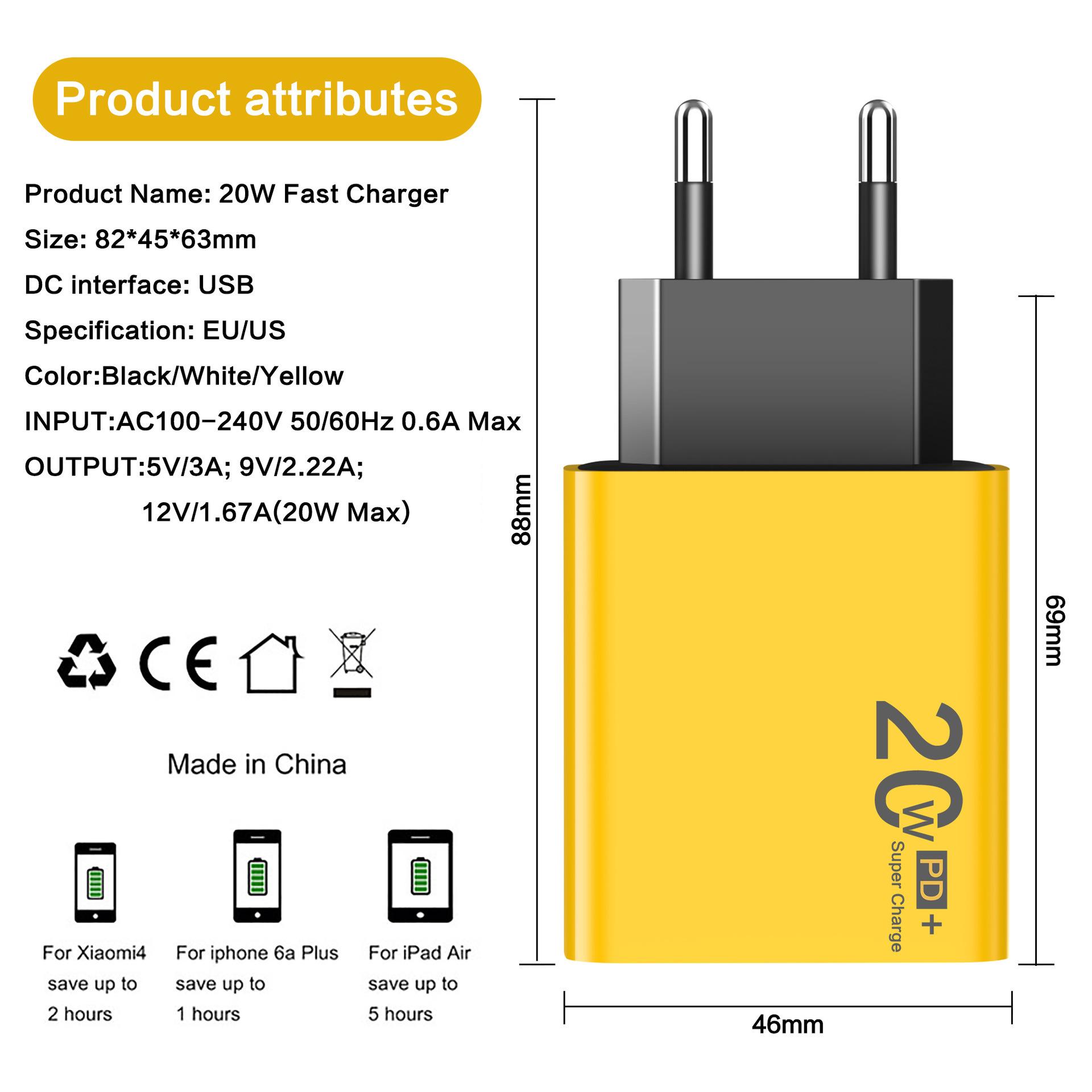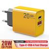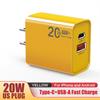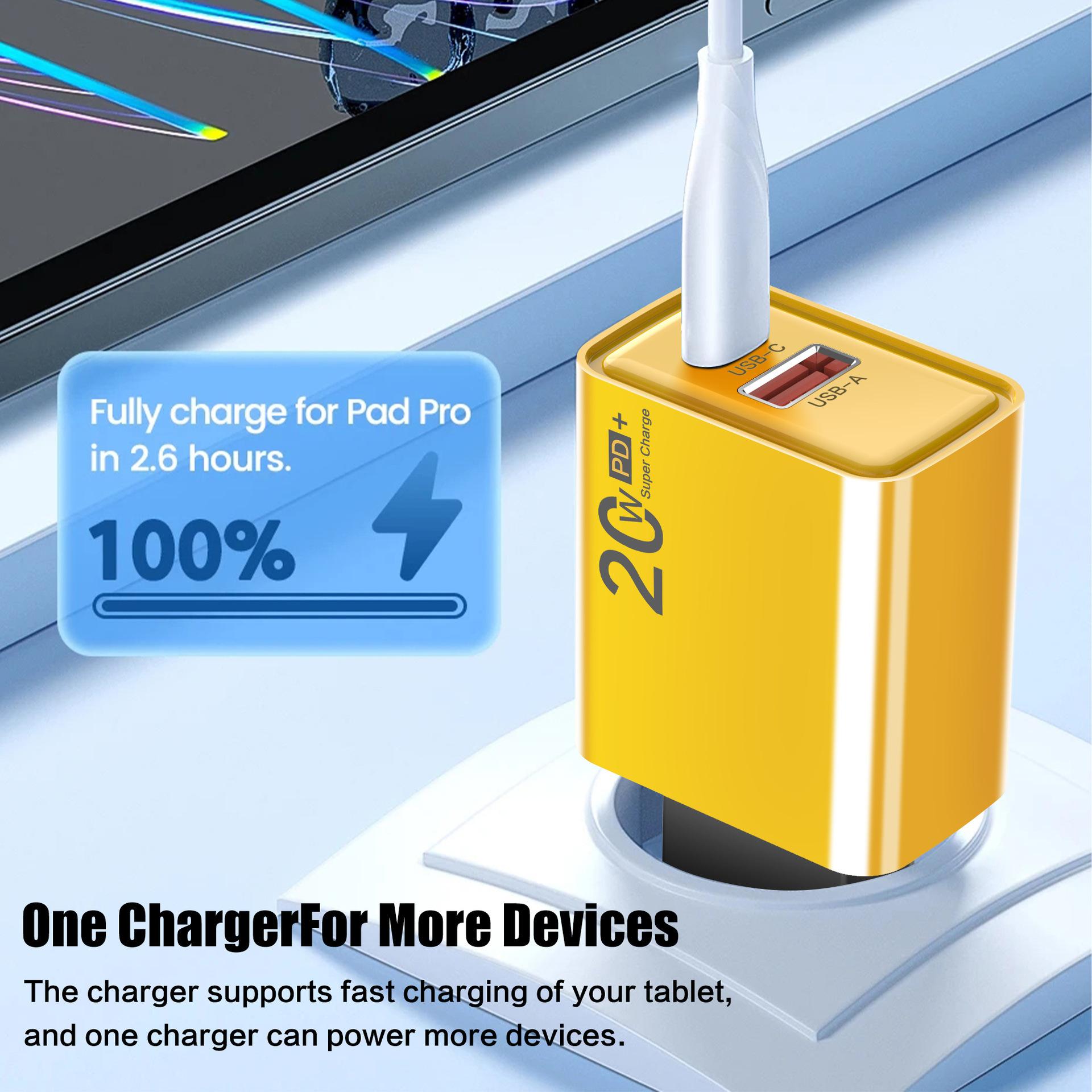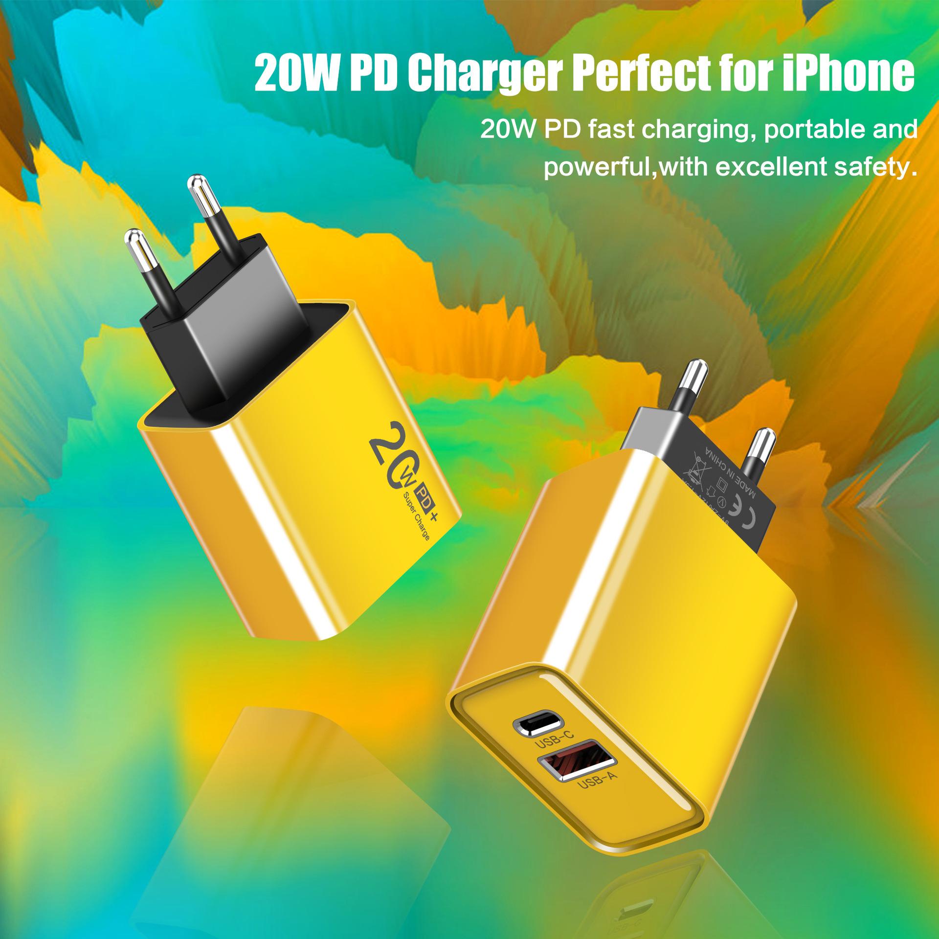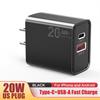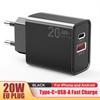 Cargador USB PD de carga rápida superrápida de 20 W totalmente compatible con teléfonos móviles tipo C para cargadores Apple y Android.