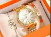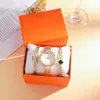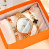 Reloj de pulsera de cuarzo con correa de malla y cinta informal con personalidad exquisita de acero de titanio para mujer (3 piezas/juego)