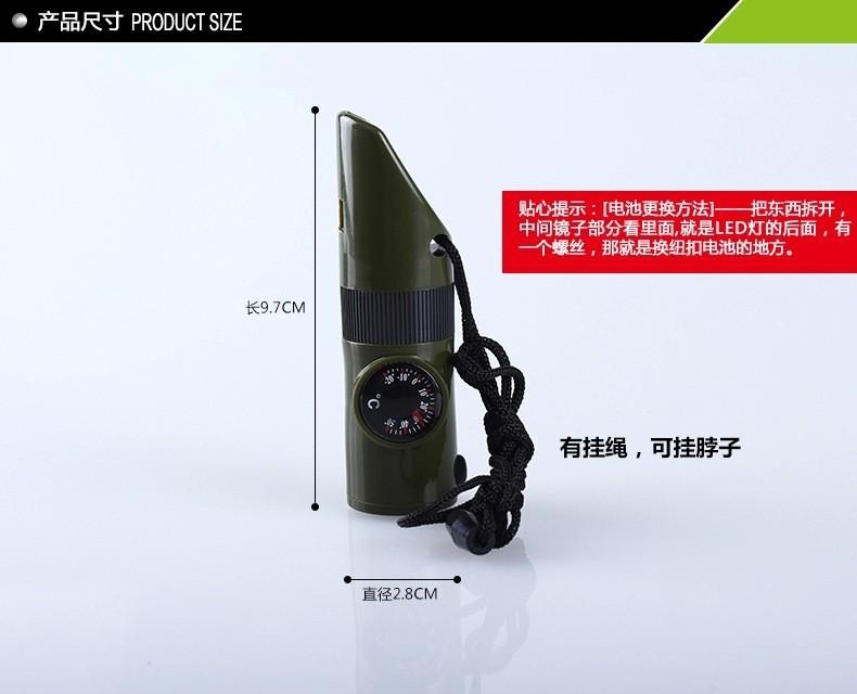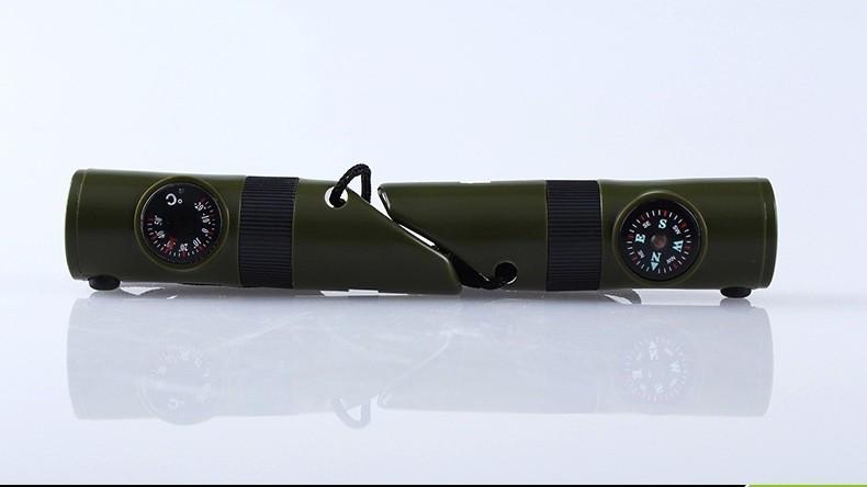 Silbato multifuncional 7 en 1 para exteriores, silbato de supervivencia, silbato salvavidas con luz LED, termómetro y brújula 7 en 1