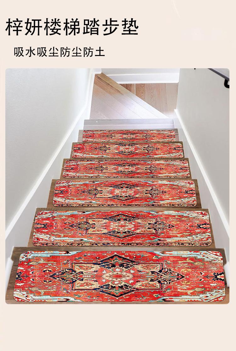 Felpudo de escalera con diseño de hoja de arce transfronterizo, de madera maciza dúplex para interiores, antideslizante, resistente al agua para el hogar