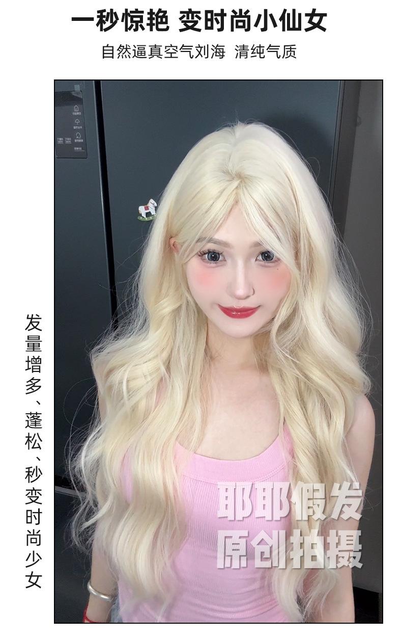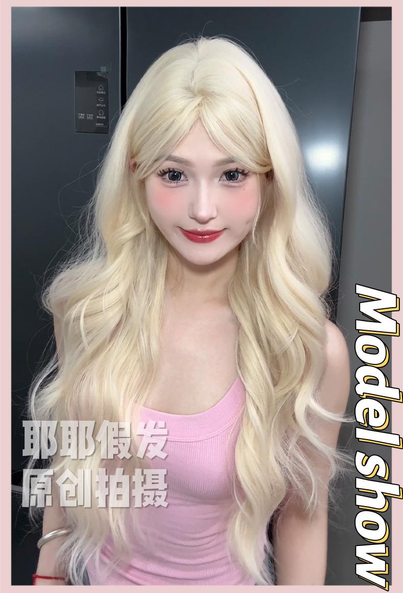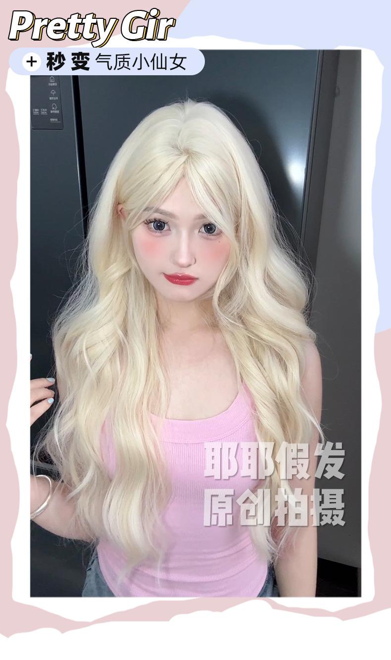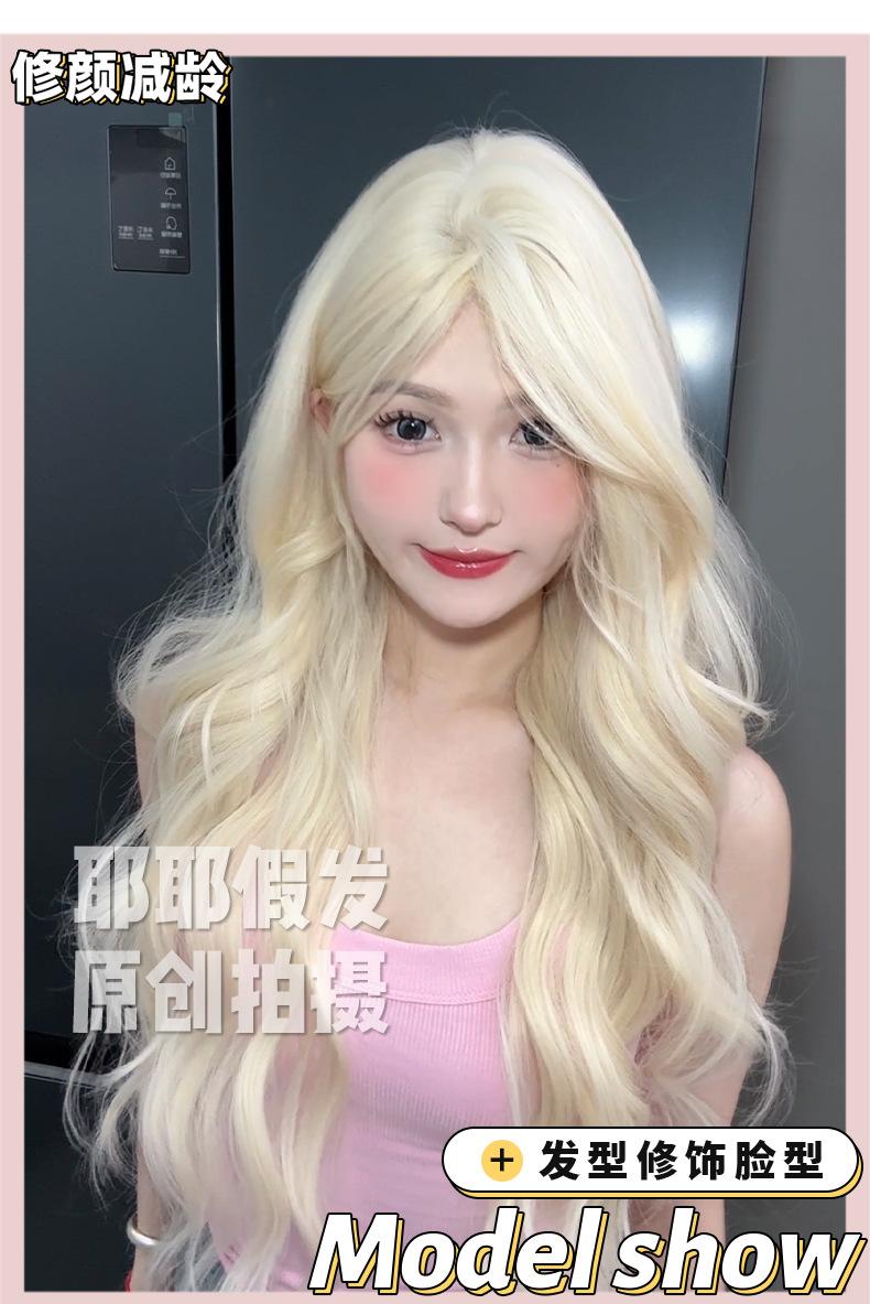 Peluca Yea de verano nueva, peluca platino natural dividida, larga y rizada, con tocado completo