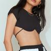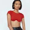 Chaleco de Moda de Estilo Europeo y Americano de Manga Corta Descubierto con Ombligo al Aire Sexy Top Ajustado Traje Nuevo de Verano para Mujer 2022