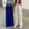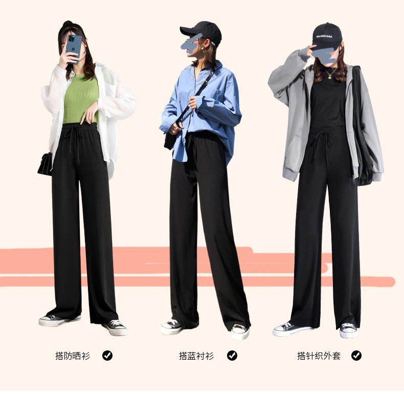 Pantalones anchos negros para mujer, de verano 2024, holgados, adelgazantes, rectos, informales, drapeados.