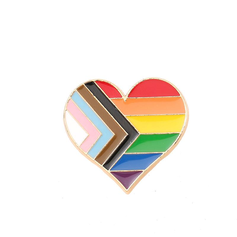 Insignia de metal con forma de corazón con la bandera arcoíris de Europa y América, broche de color geométrico con pintura transfronteriza, accesorio para bolso y ropa