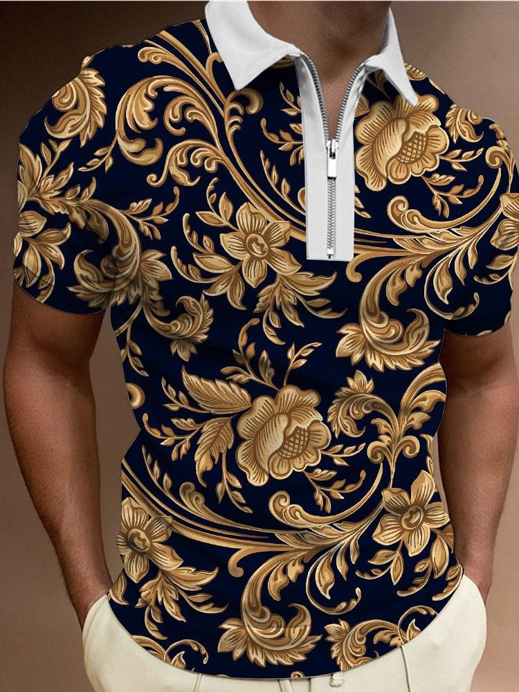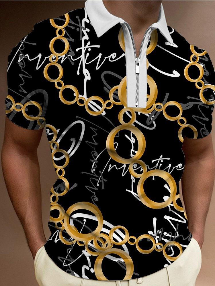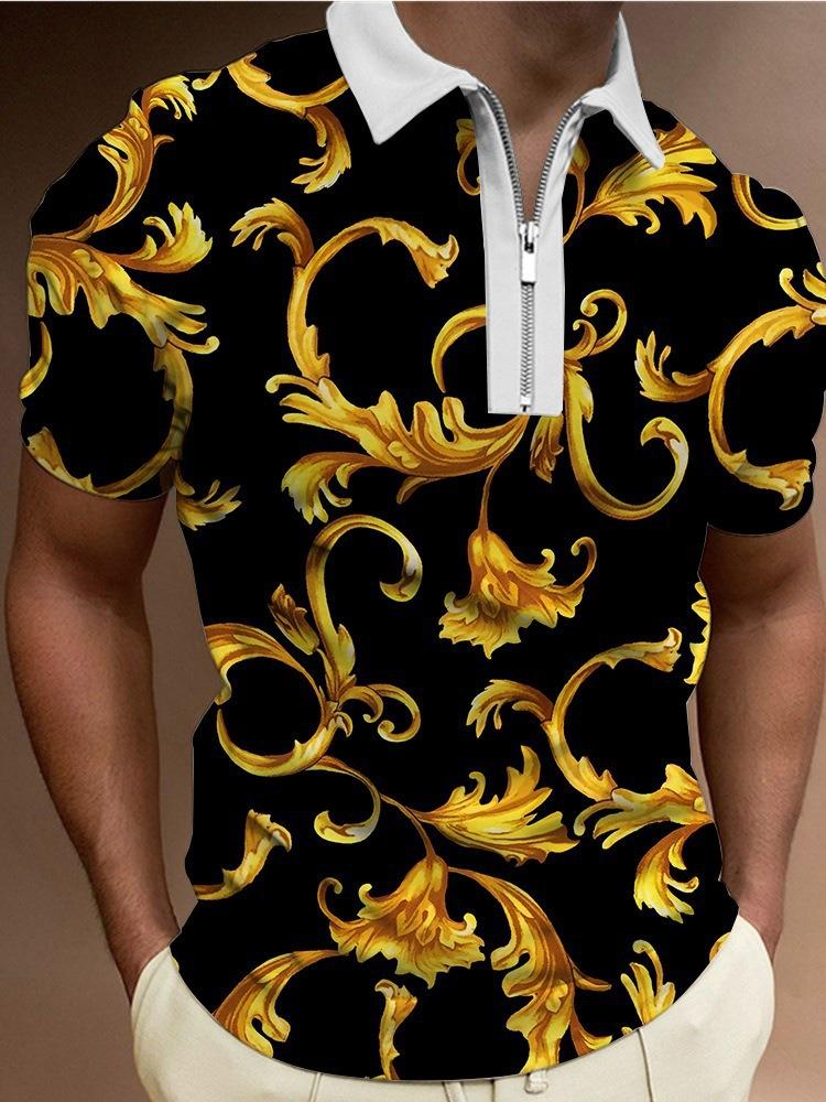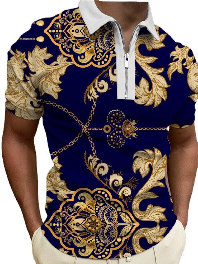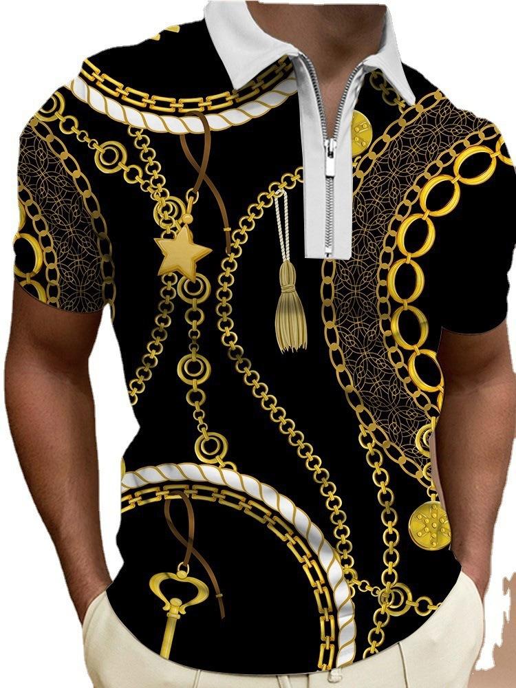 Polo de manga corta con estampado metálico 3D para hombre, informal, de negocios, para comercio exterior transfronterizo
