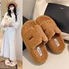 Pantuflas Peludas de Moda para Mujer 2025 Otoño e Invierno Nuevas para Exterior Hebilla de Cinturón Suela Gruesa Casual Algodón de Una Tira