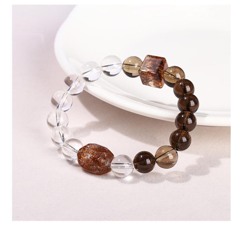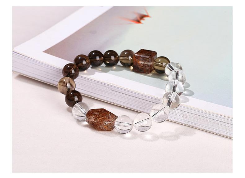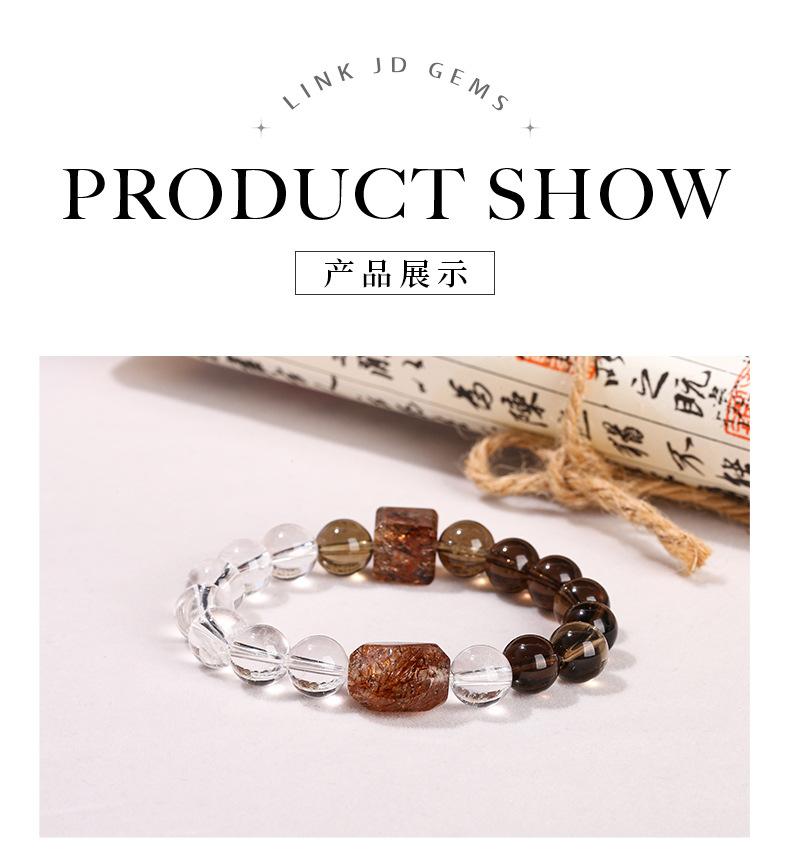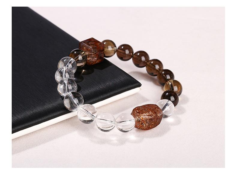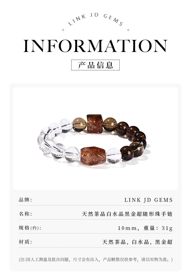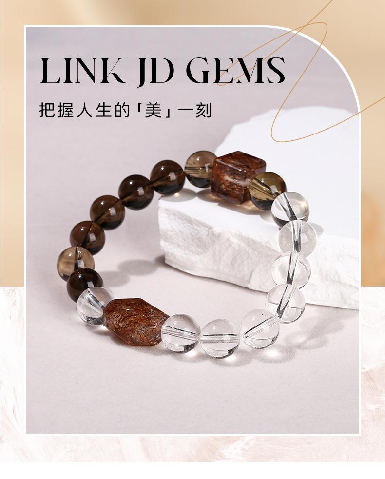 Jingdong Joyería 7A Cristal de Té Natural Cristal Blanco Oro Negro Pulsera de Cuentas Super Formadas Moda Regalo para Hombre y Mujer Joyería al Por Mayor