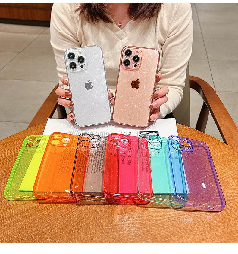 Adecuado para Funda de Teléfono Móvil Apple 16Promax Glitter Fluorescente Transparente Iphone17 Silicona Todo Incluido 13 Funda Protectora 15