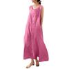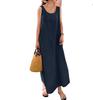 Vestido elegante sin mangas con cuello redondo y bolsillos sueltos de algodón y lino, estilo sencillo, estilo europeo y americano, para mujer