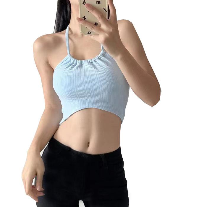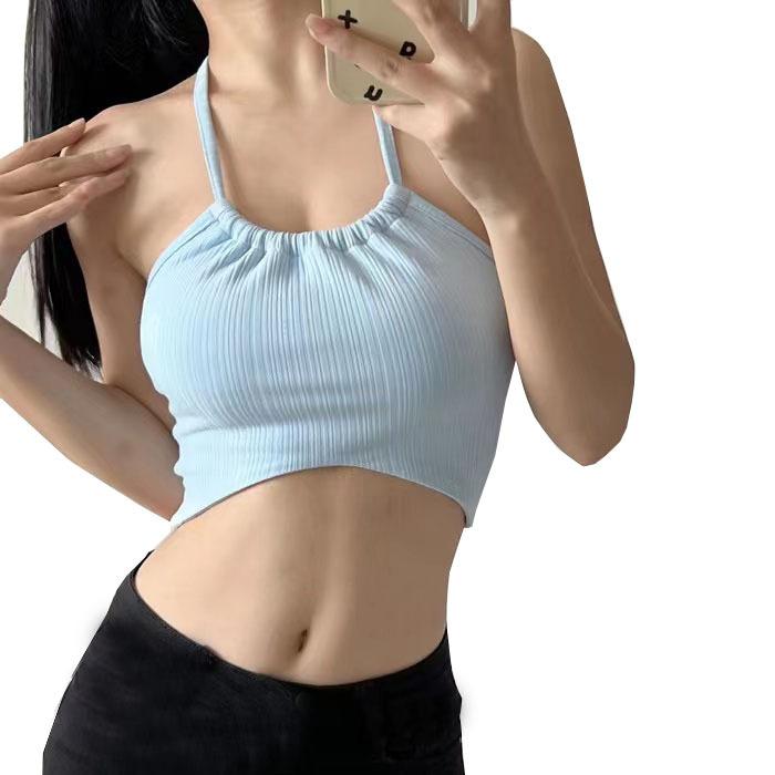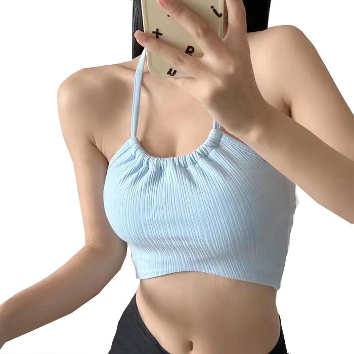 Chaleco de comercio exterior transfronterizo para mujer con almohadilla para el pecho, espalda cruzada con rayas, ropa deportiva de fitness y yoga, top con tirantes