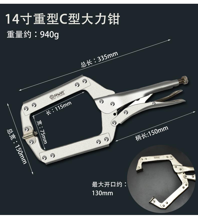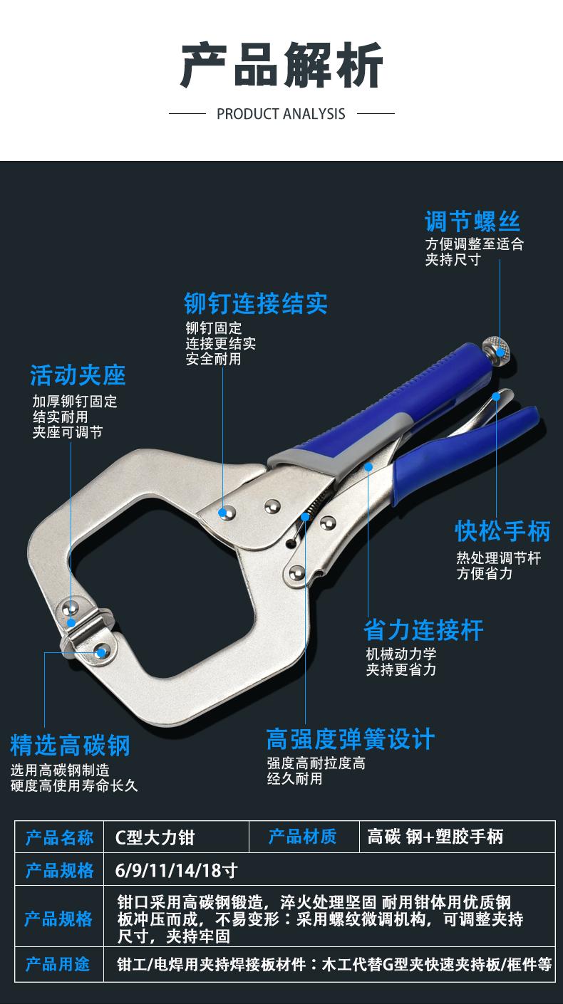 Alicates pesados, alicates en forma de C, gran apertura, multifunción, abrazadera de gran fuerza, alicates de presión universales, herramienta de fijación para carpintería de boca ancha