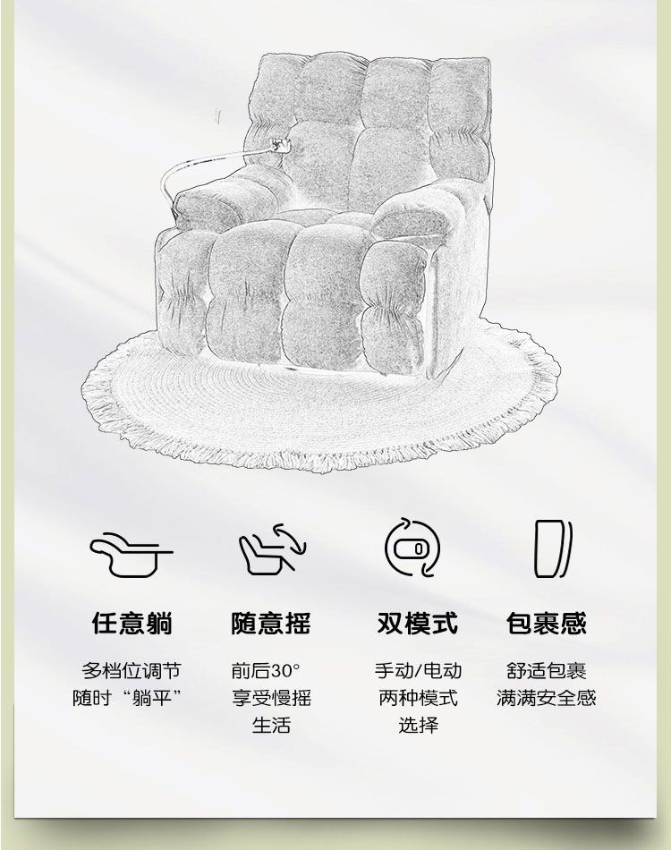 Cápsula espacial sedentaria, sofá individual perezoso, sala de estar, ocio, reclinable, mecedora, función eléctrica, nubes, ligero, sofá de lujo.