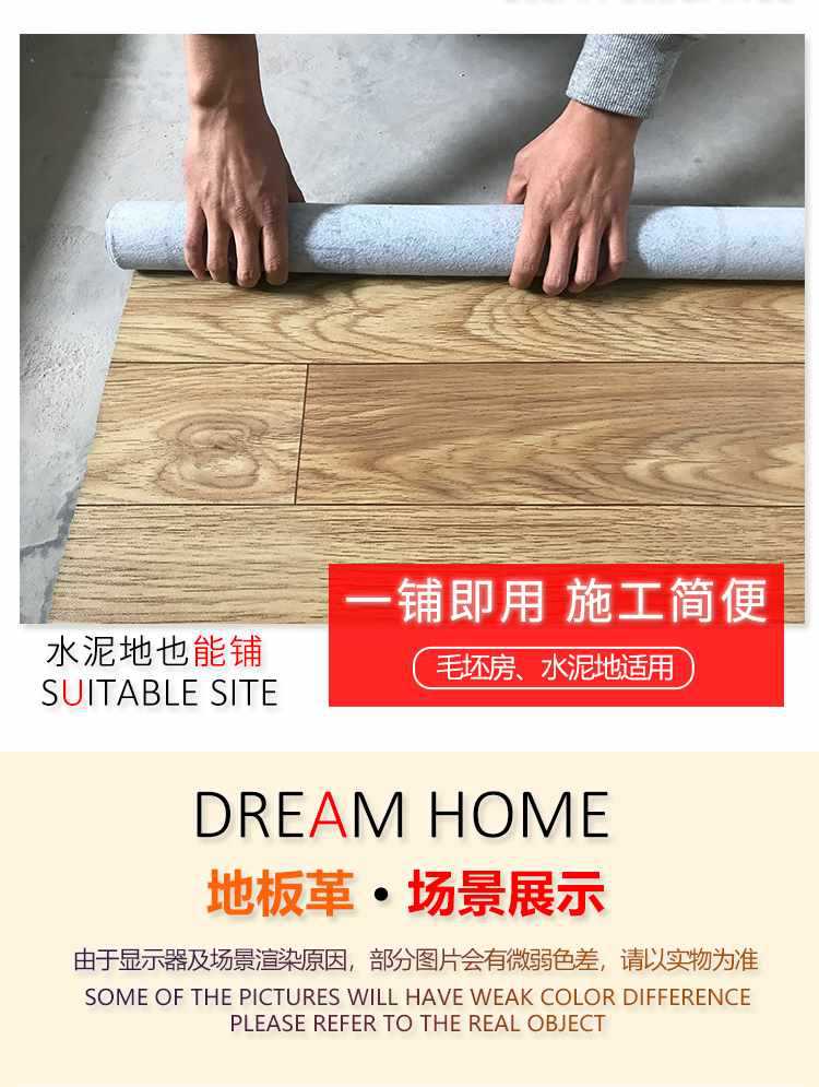 Piso de PVC Cuero para Piso Cemento para Piso Colocación Directa Adhesivo Espesado para Piso Resistente al Desgaste Impermeable Casa en Obra Negra Hogar Piso de Plástico