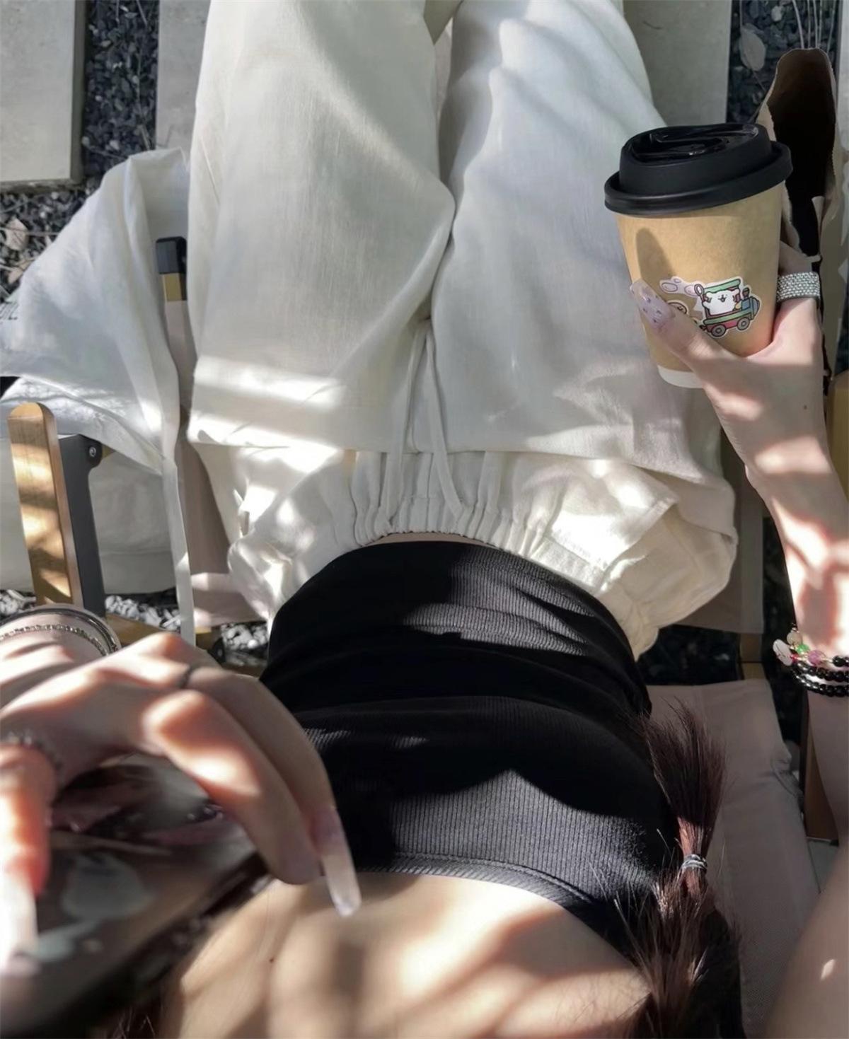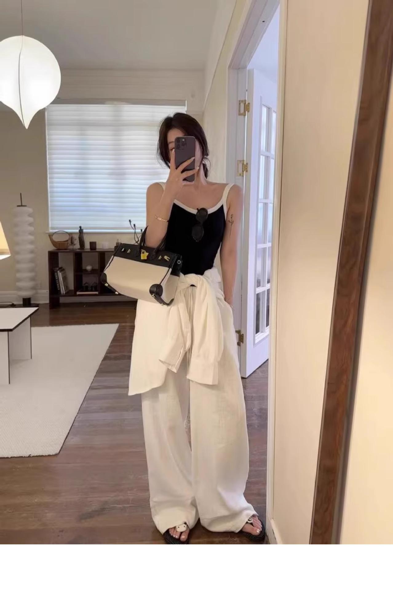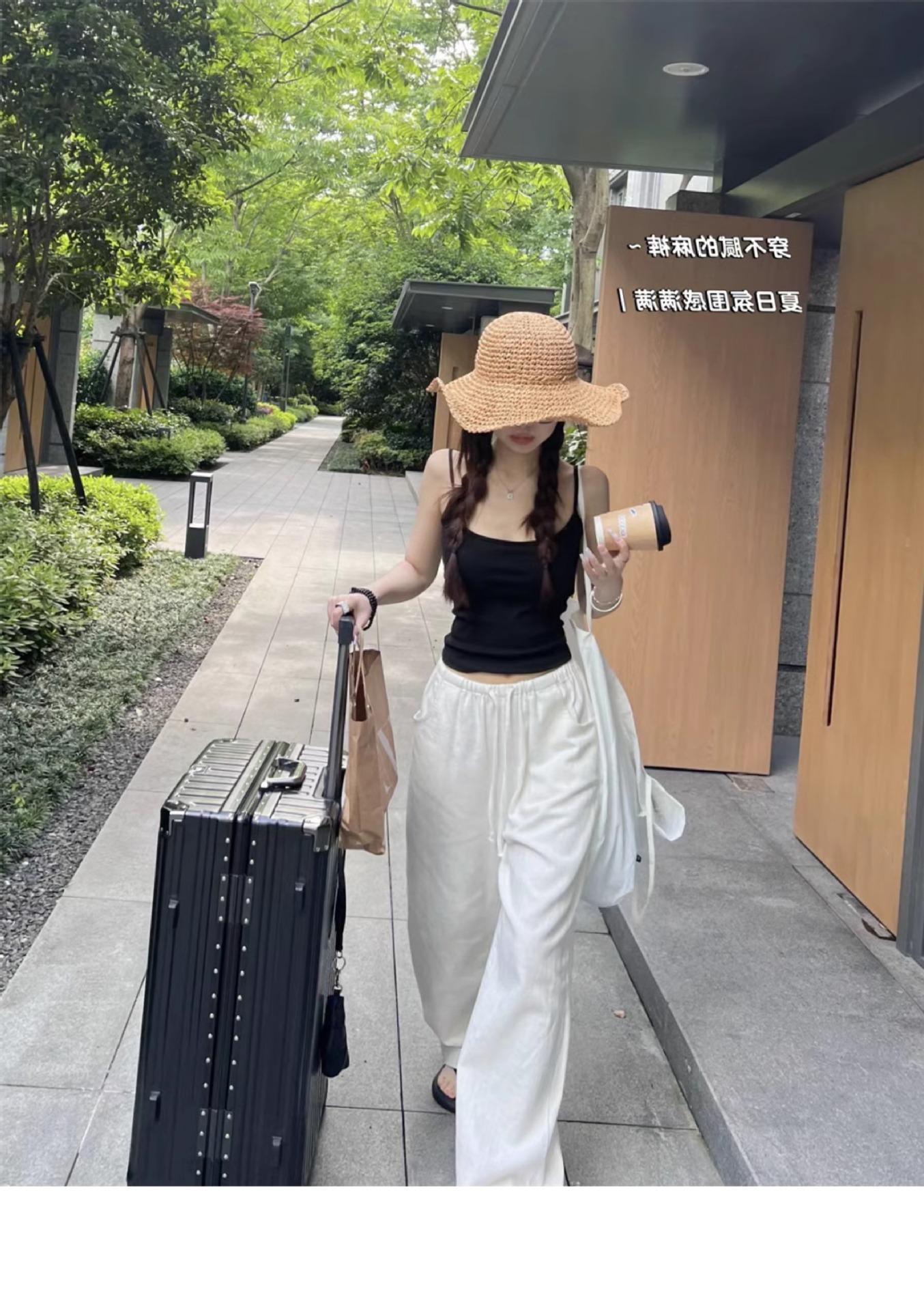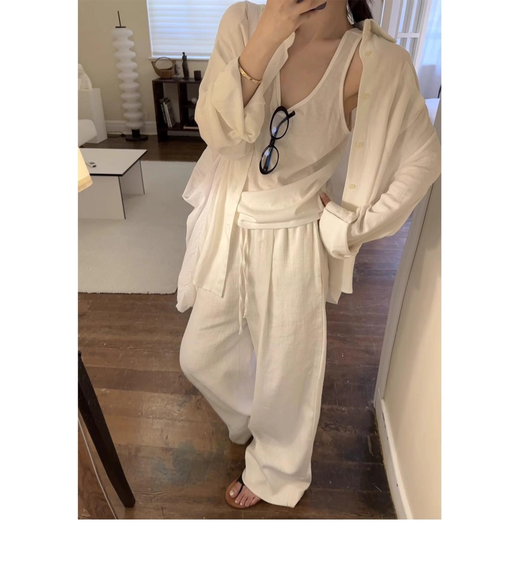 Pantalones anchos de algodón y lino para mujer en verano, finos, sueltos, perezosos, transpirables, no transparentes, de pierna recta, para fregar el suelo, drapeados, pantalones blancos