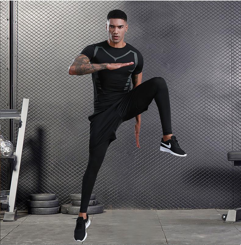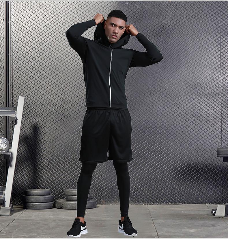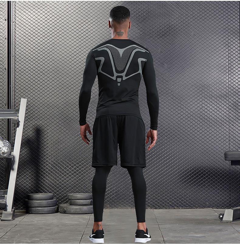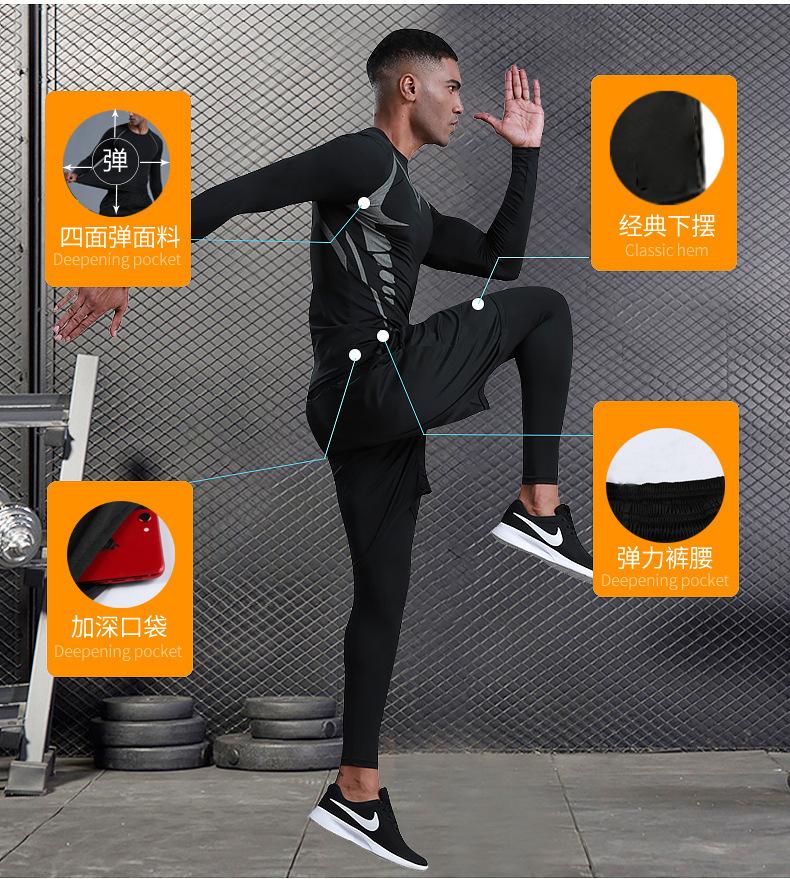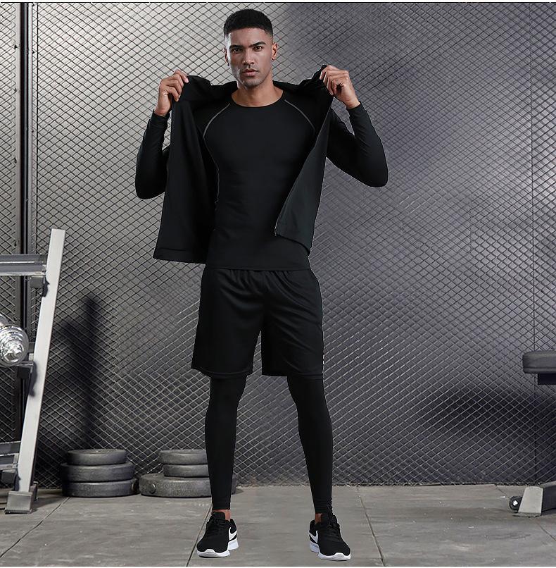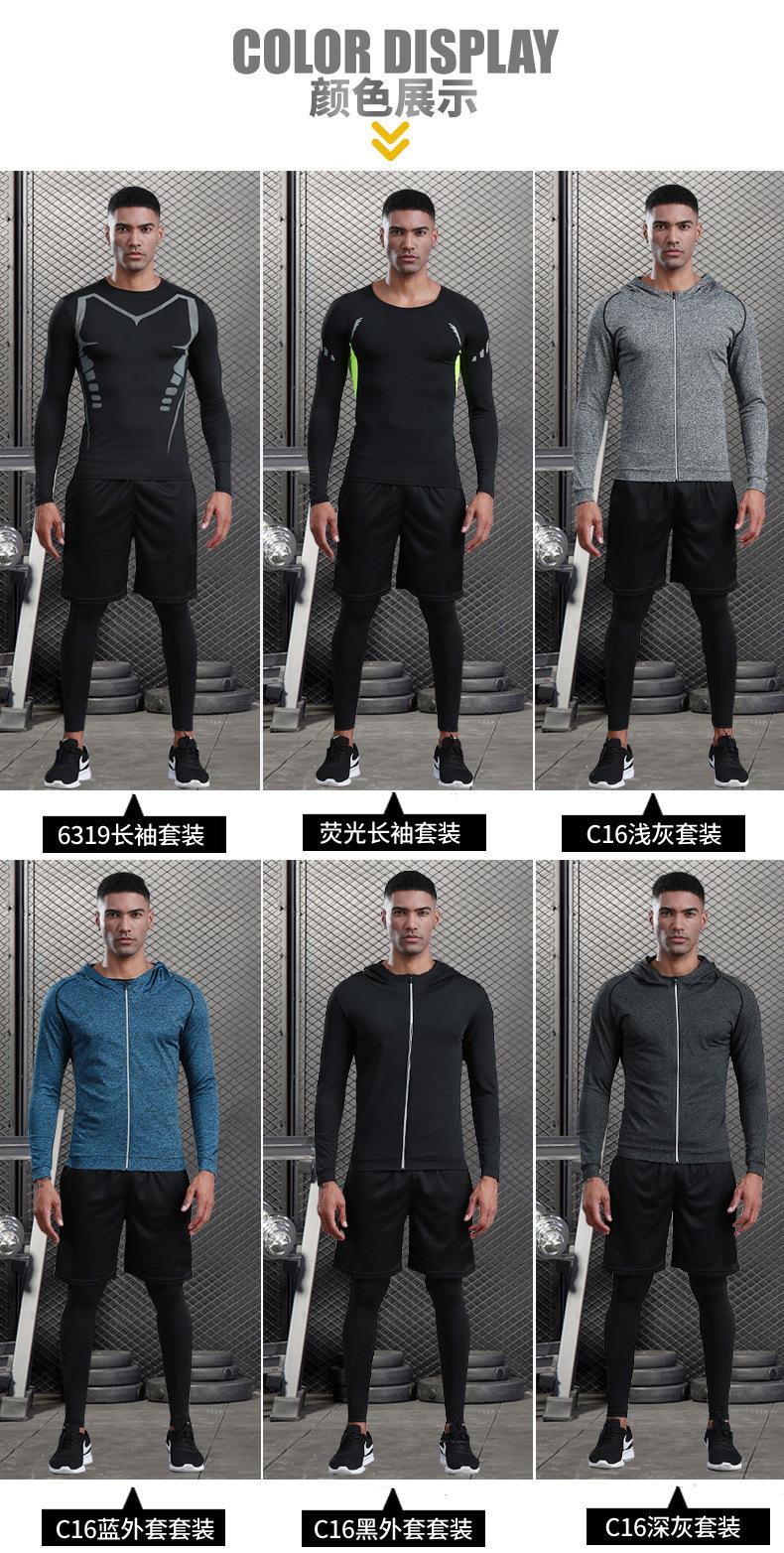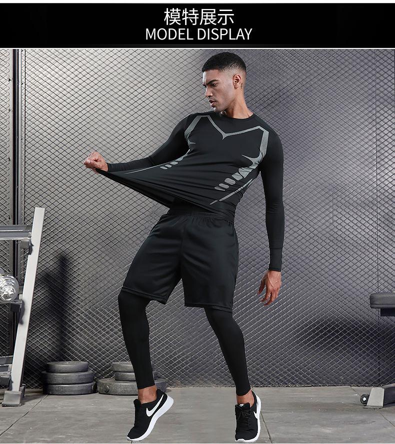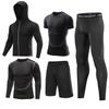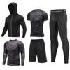Traje de fitness transfronterizo, mallas deportivas para hombre, traje de entrenamiento de baloncesto de cinco piezas, transpirable, de secado rápido y alta elasticidad
