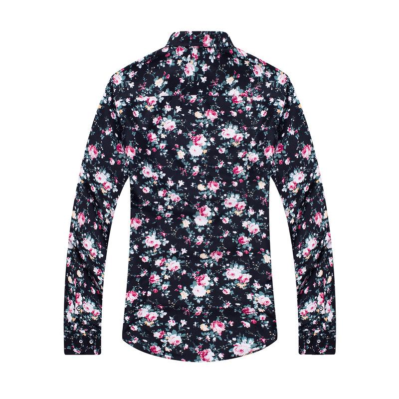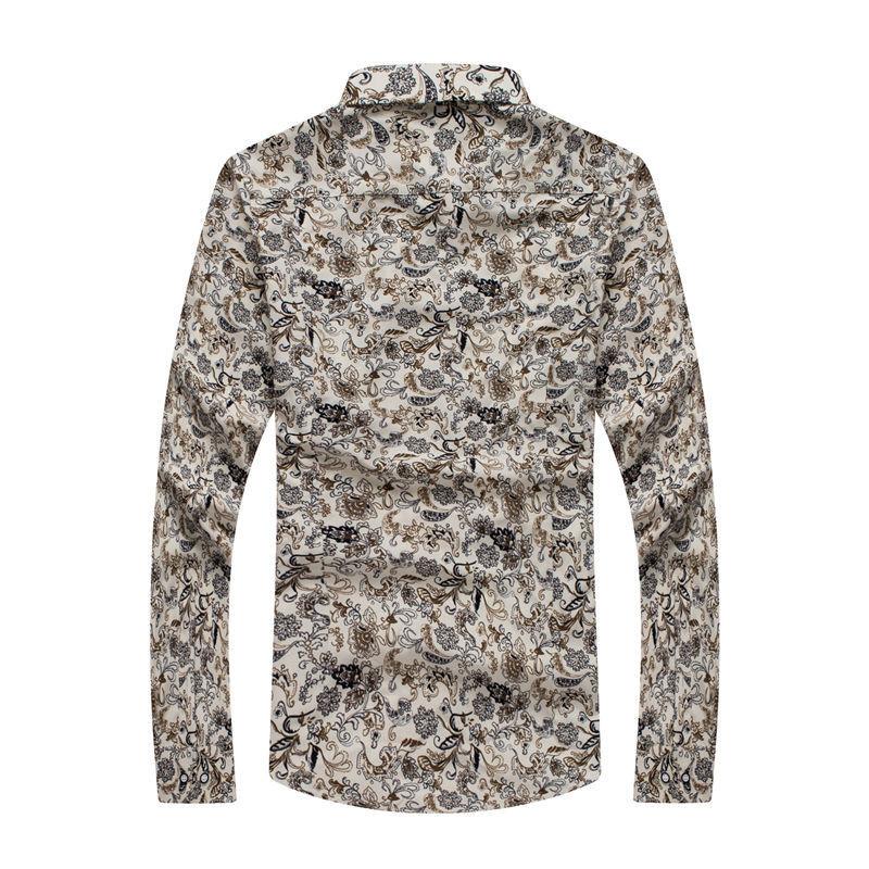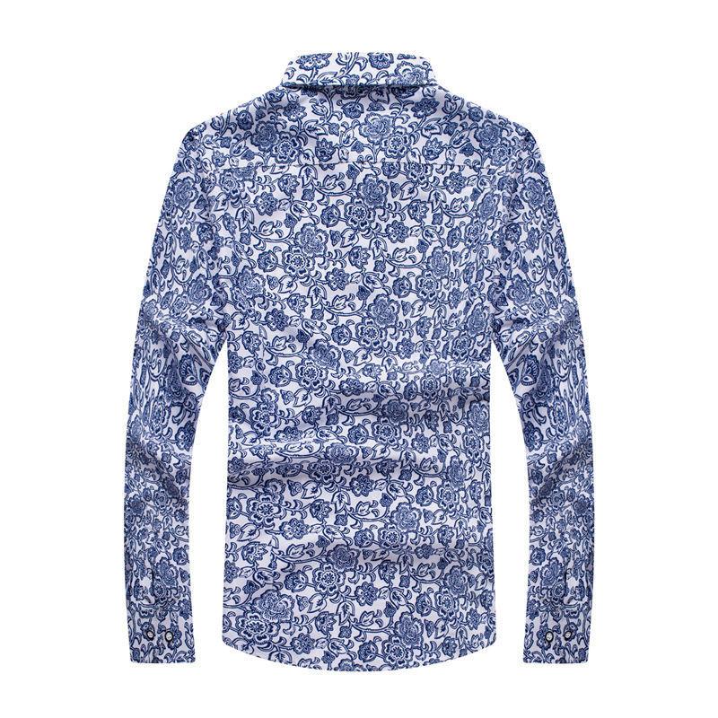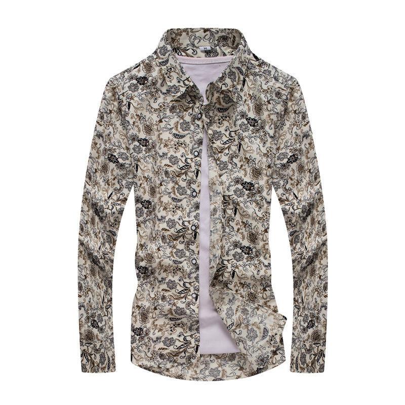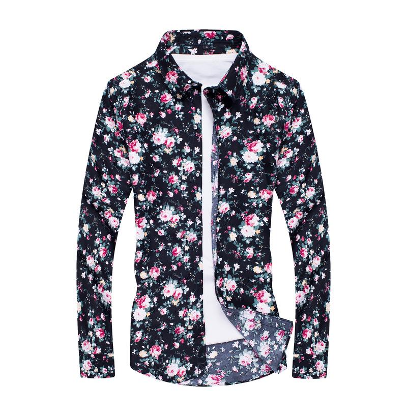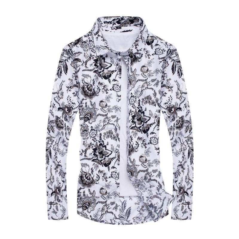 Camisa Casual Slim de Solapa Nueva para Hombre de Primavera y Otoño para Comercio Exterior, Camisa Floral de Manga Larga para Hombre de Talla Grande Transfronteriza