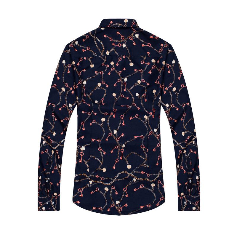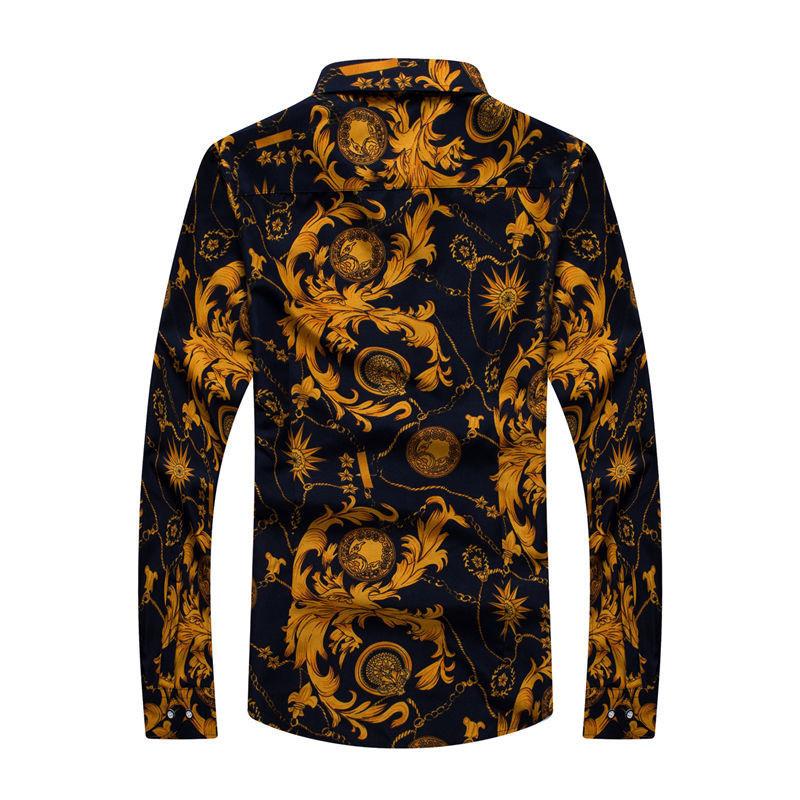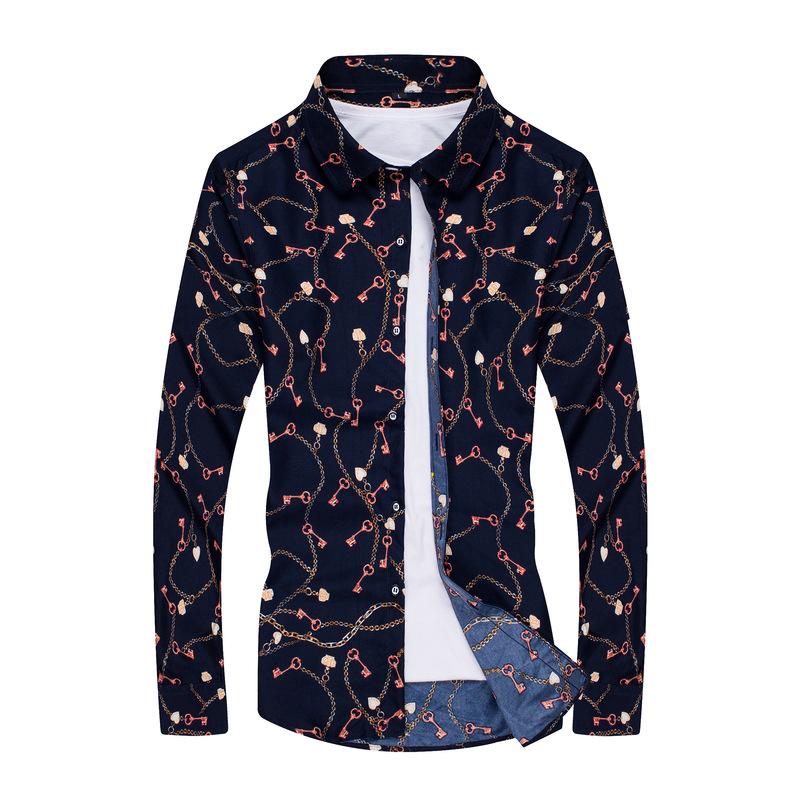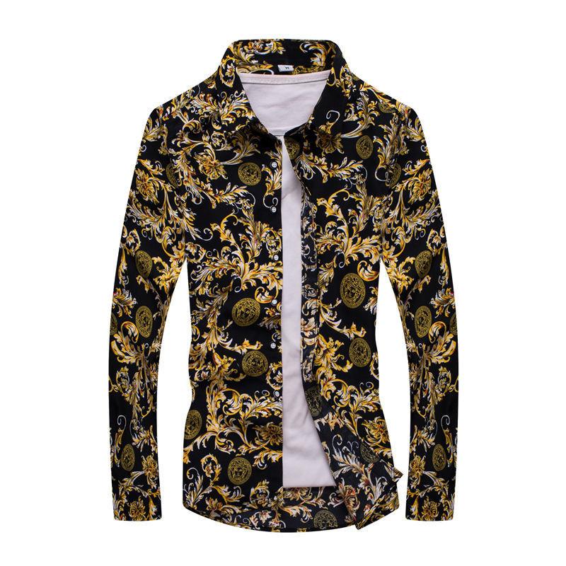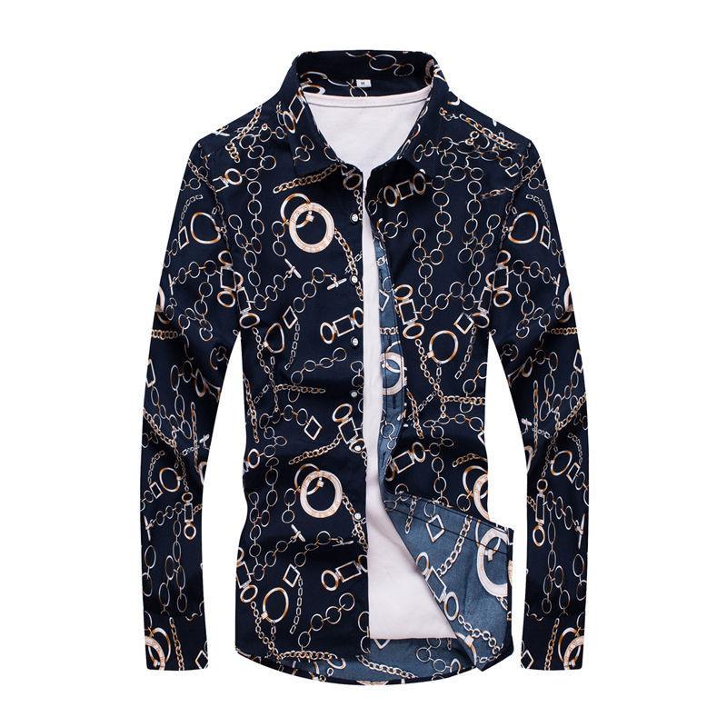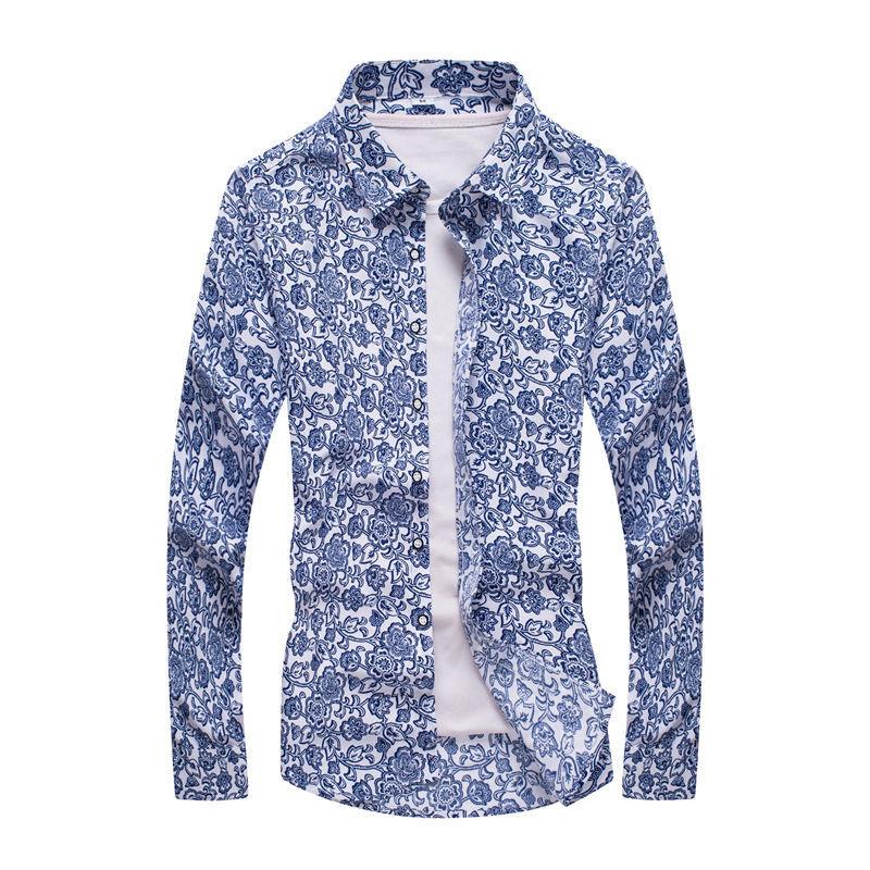 Camisa Casual Slim de Solapa Nueva para Hombre de Primavera y Otoño para Comercio Exterior, Camisa Floral de Manga Larga para Hombre de Talla Grande Transfronteriza