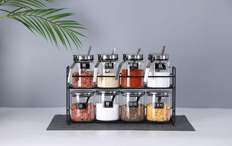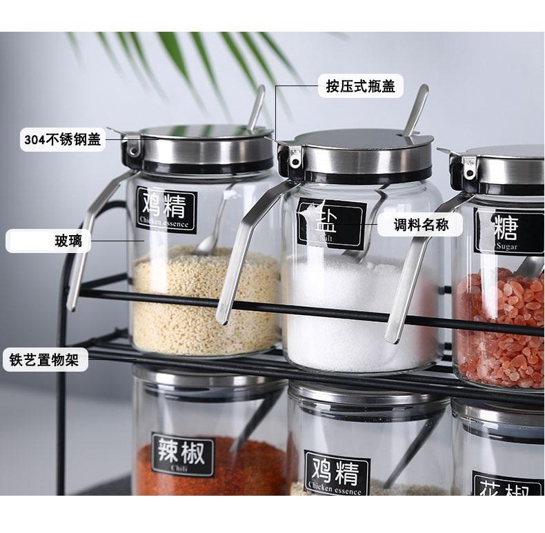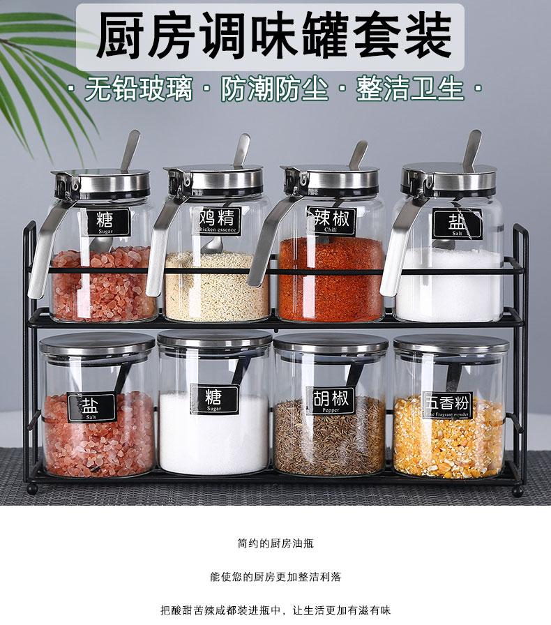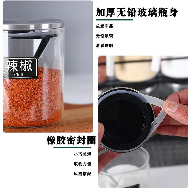 Caja de condimentos para cocina, hogar, combinación de condimentos, juego completo, botella pequeña, dispensador de condimentos, tanque de sal de vidrio con tapa