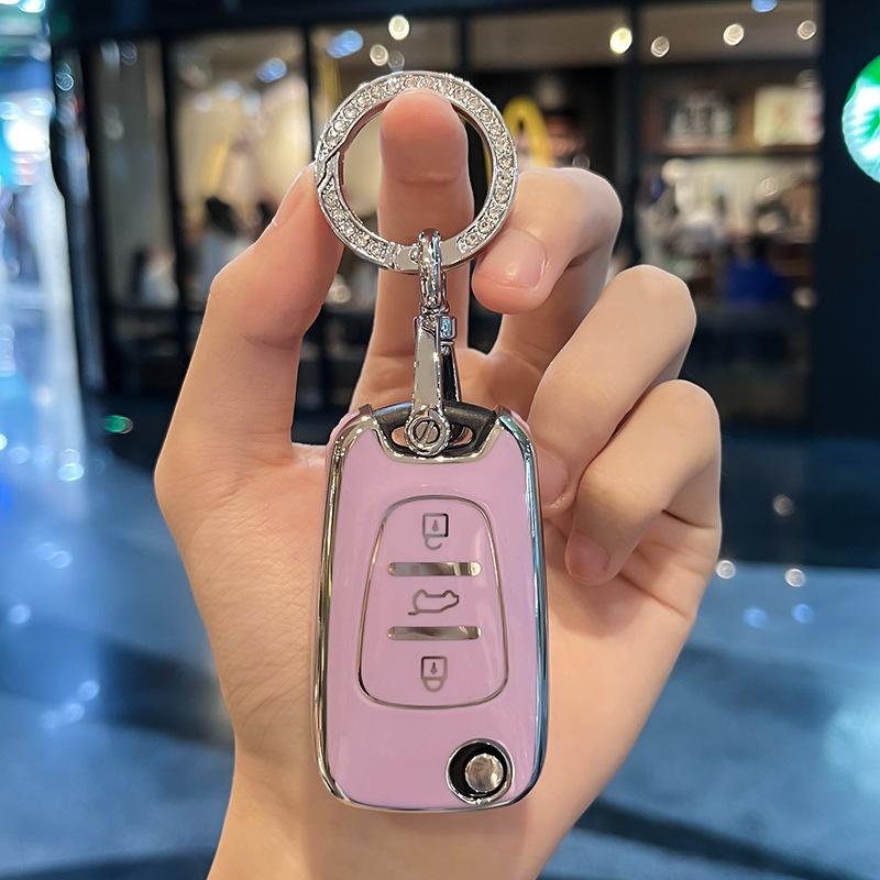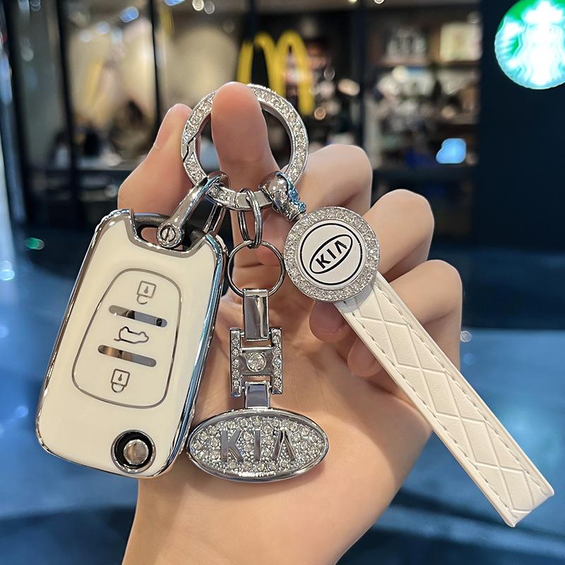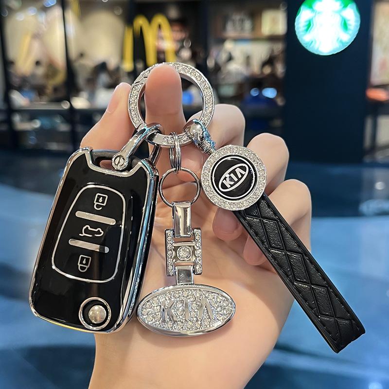 Kia C- Smart 3 Key [Black Single Shell] + Diamond-encrusted Car Mark-Leather Rope
