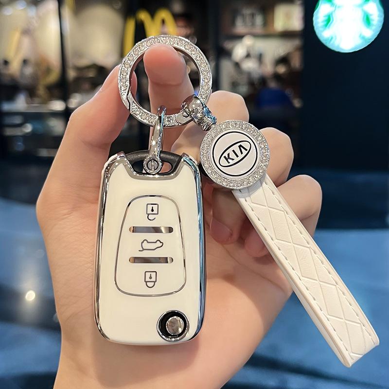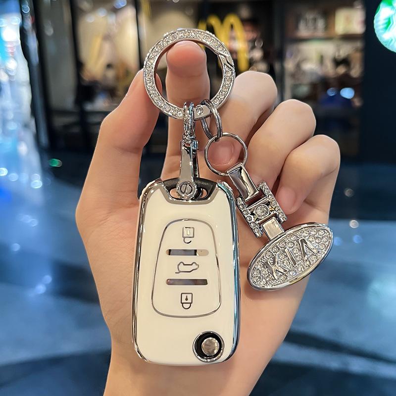 Kia D-Folding 3 Key [White Single Shell] + Diamond Ring, Kia D-Folding 3 Key [White Single Shell] + Diamond Lo...