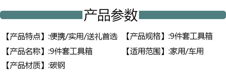9-piece toolbox, 9-piece 8009, car repair, tool kit, car emergency, tool kit, car supplies, 35-3D, 1742