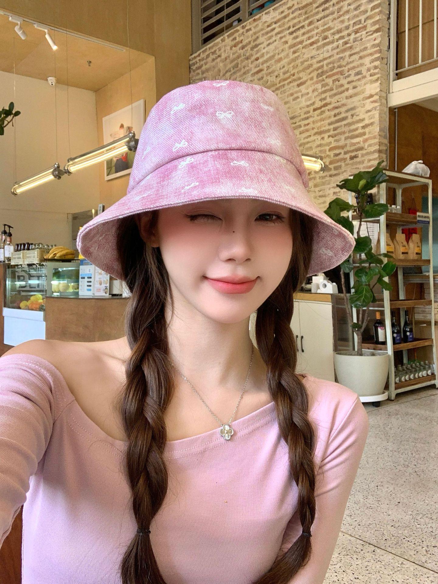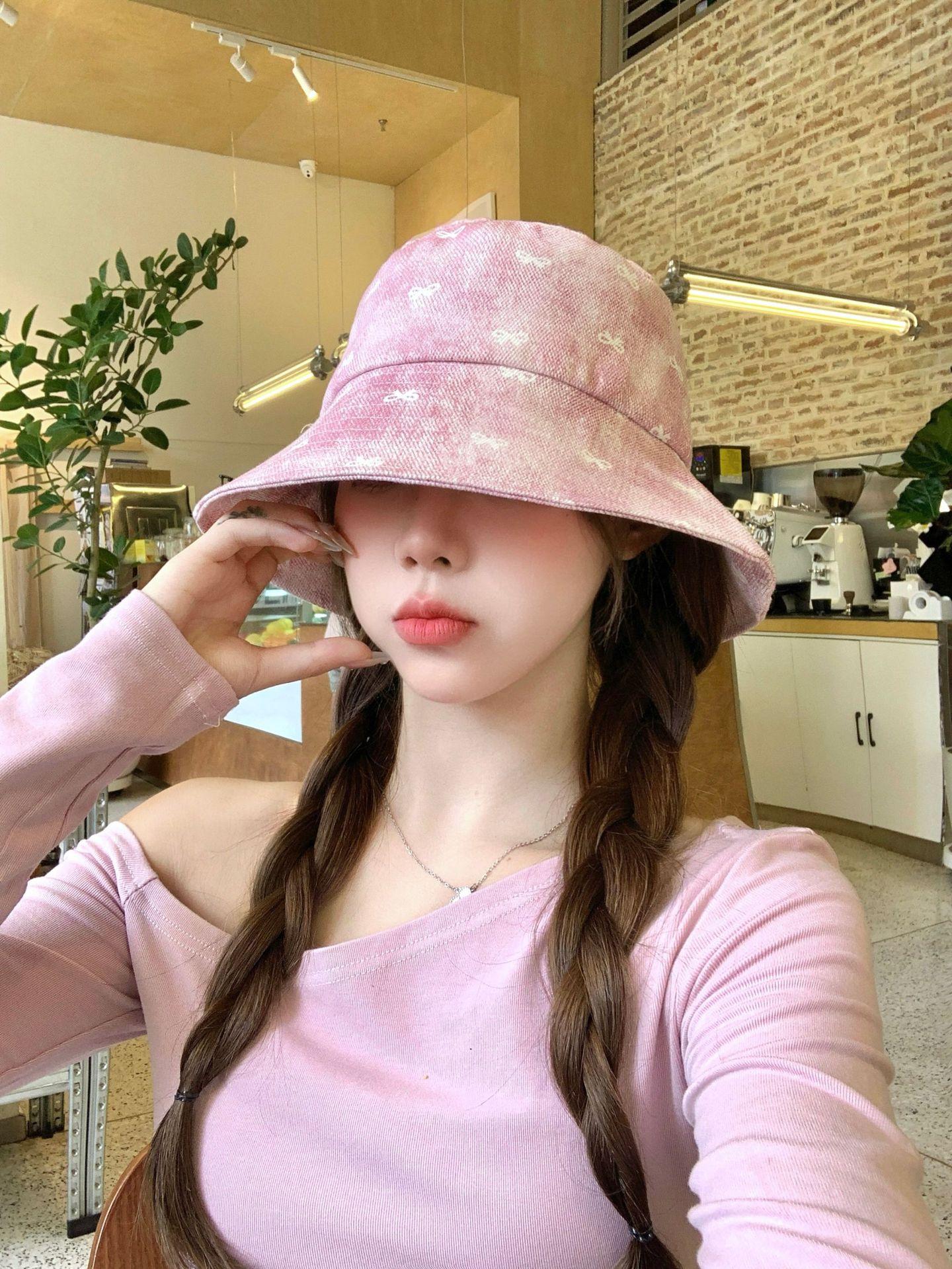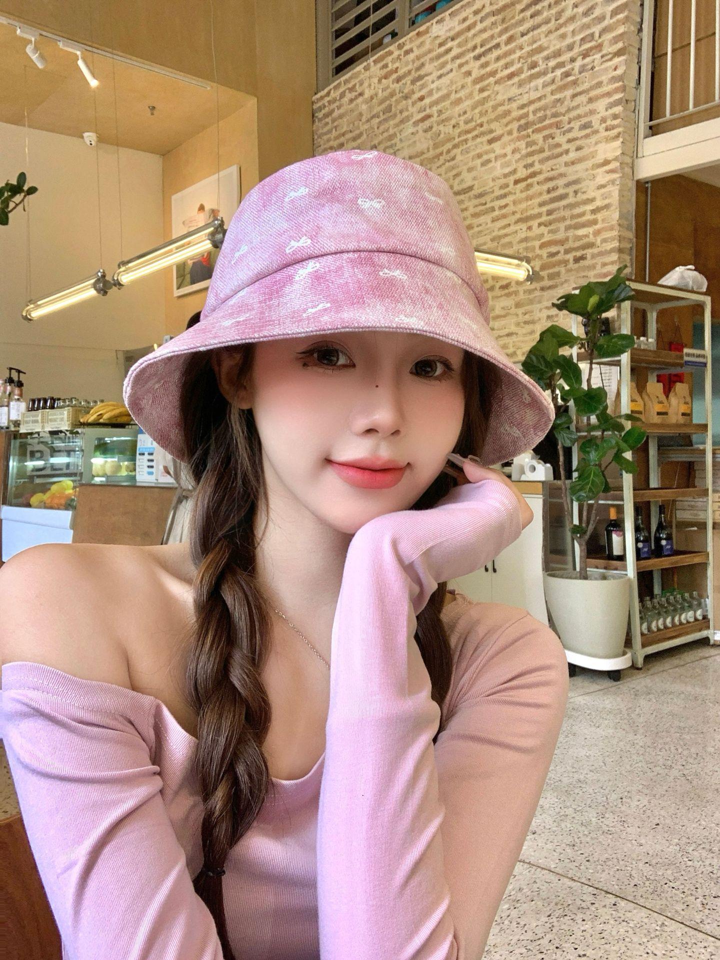 Sombrero de pescador con lazo dulce estilo coreano para mujer, sombrero para el sol con protección solar para exteriores, estilo retro, artístico, combinable, para verano y otoño.