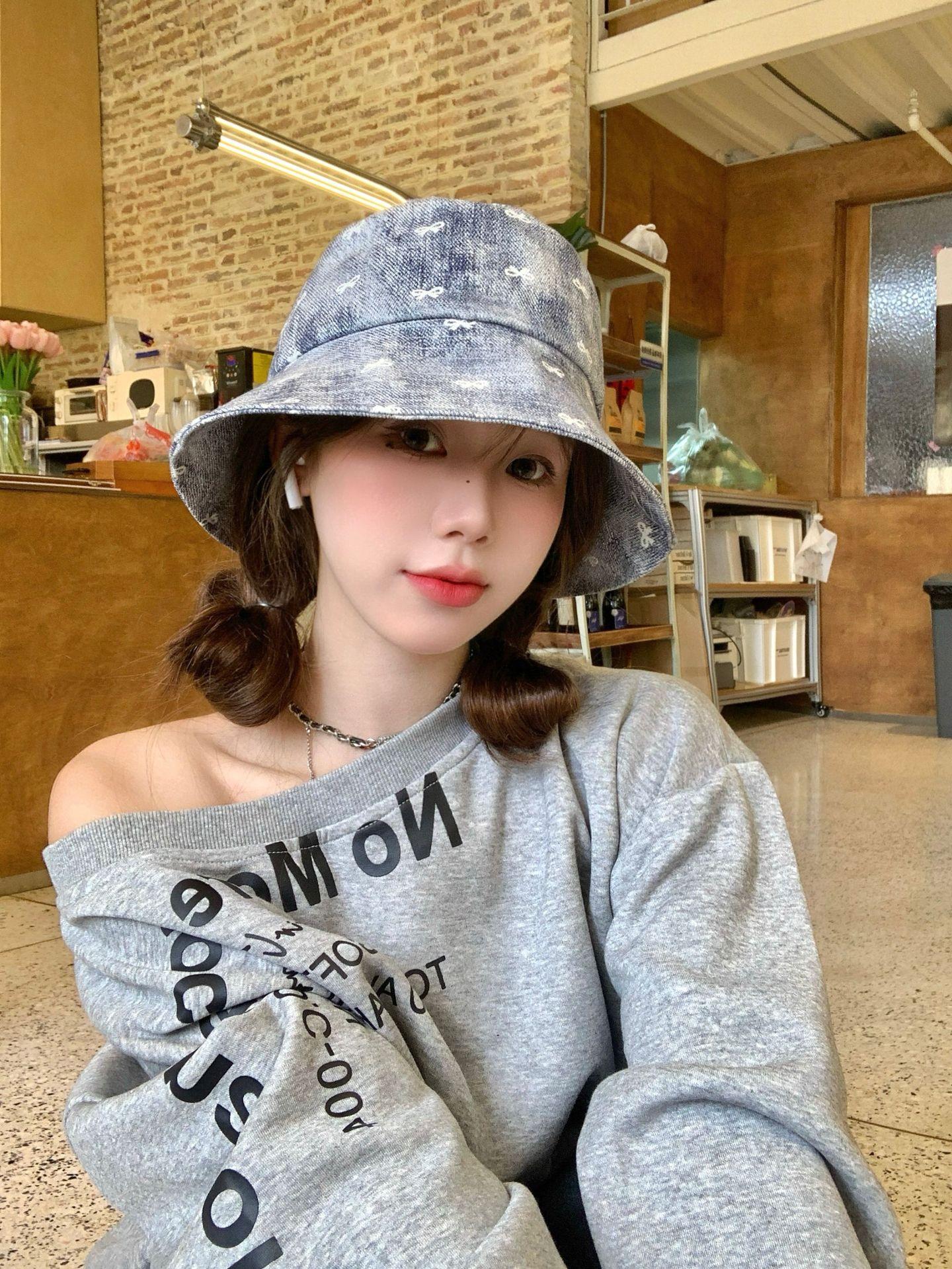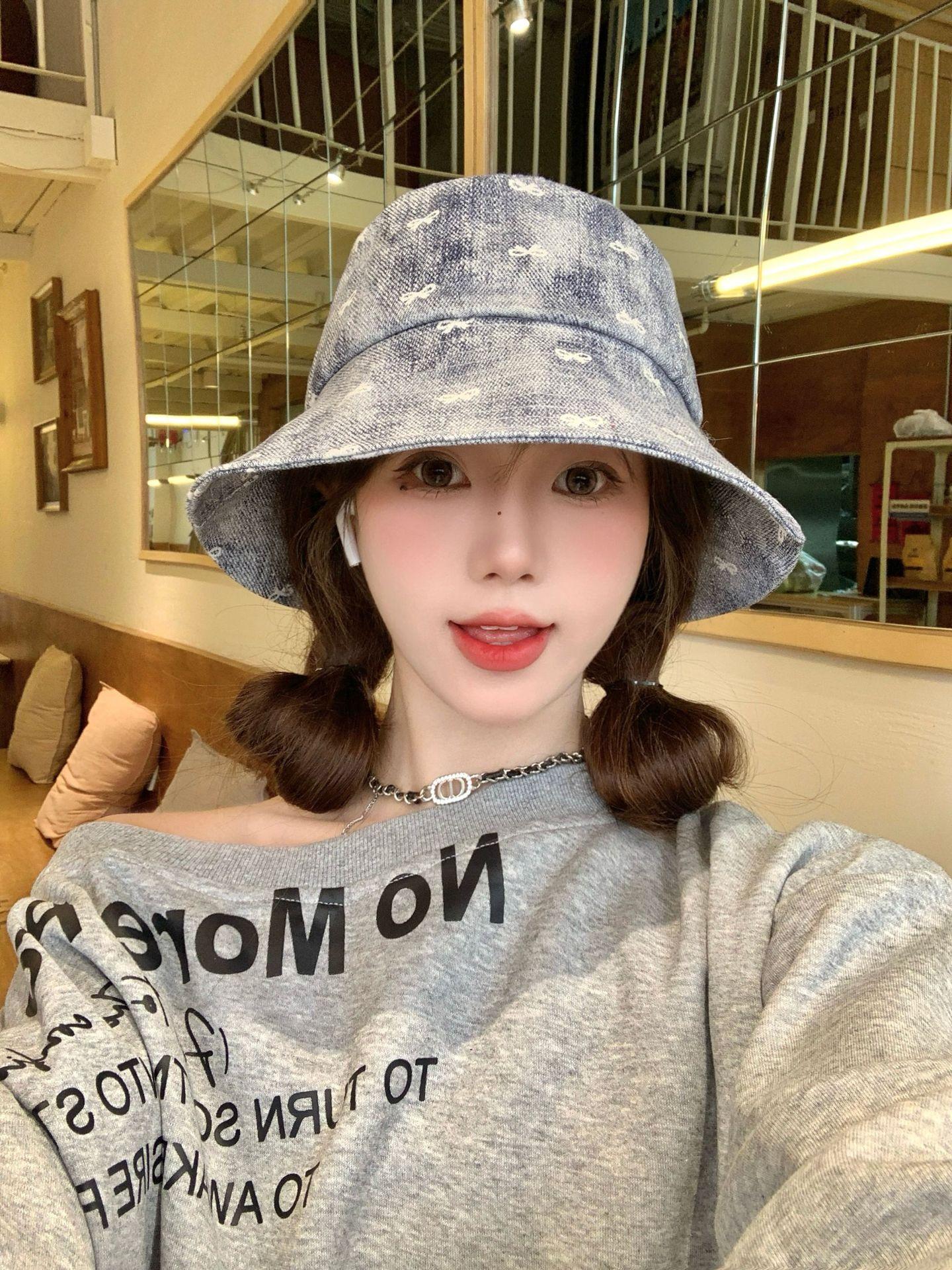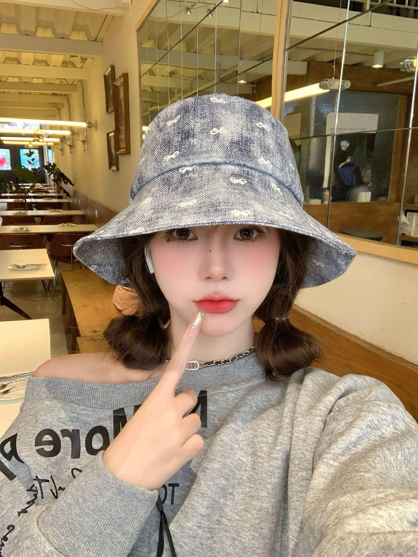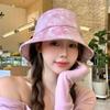 Sombrero de pescador con lazo dulce estilo coreano para mujer, sombrero para el sol con protección solar para exteriores, estilo retro, artístico, combinable, para verano y otoño.