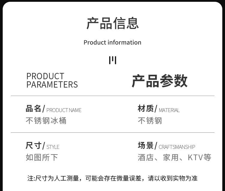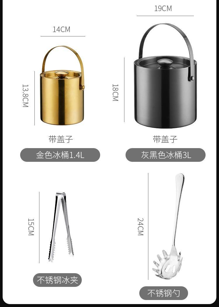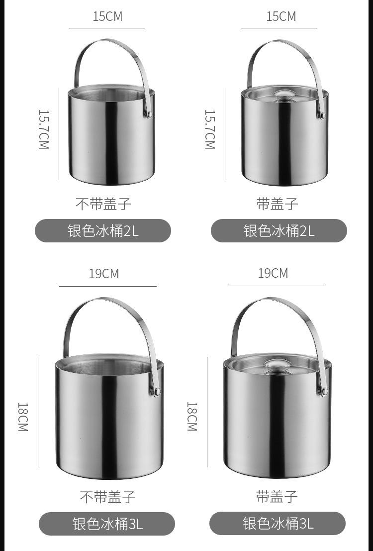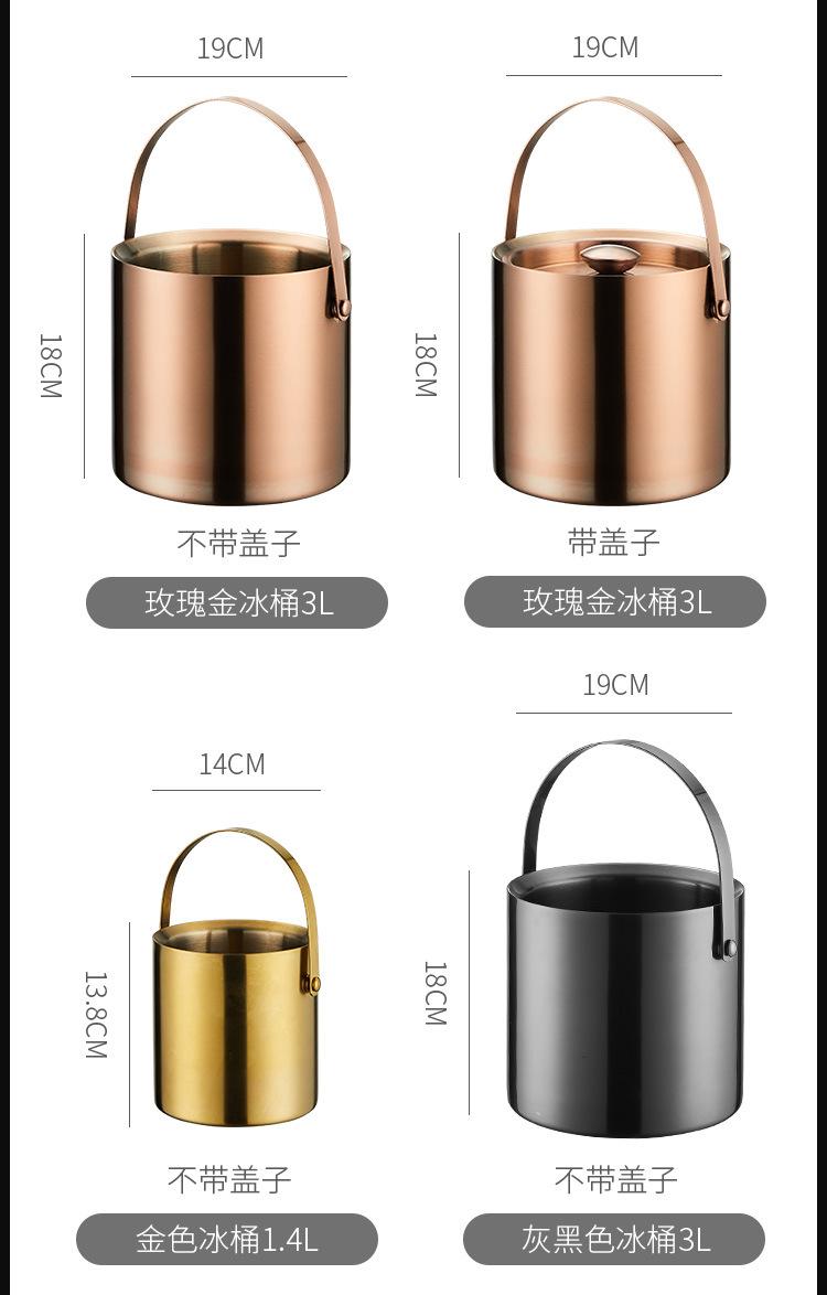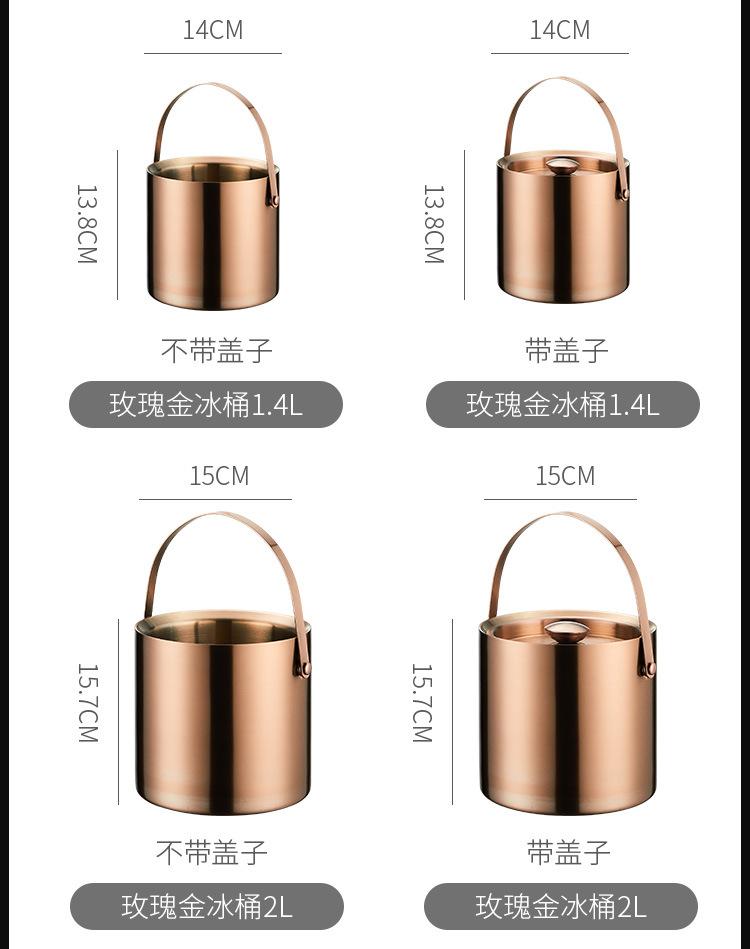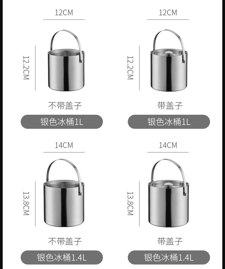 Thickened 1L Brushed Hand Ice Bucket, Thickened 1.4L Brushed Hand Ice Bucket, Thickened 2L Hand-in-Hand Brushe...