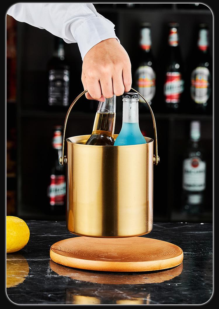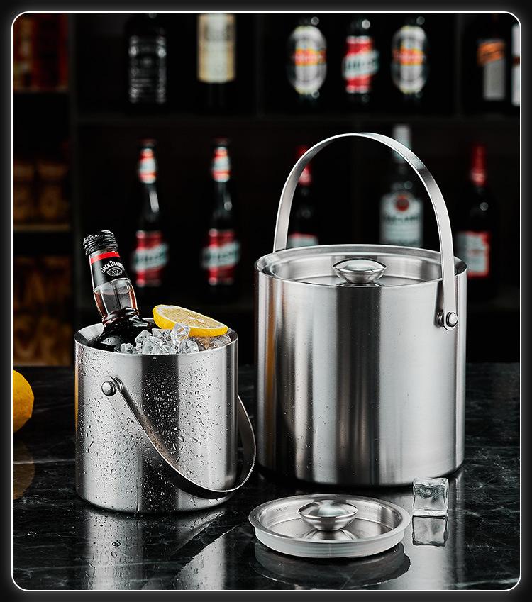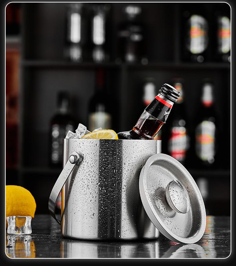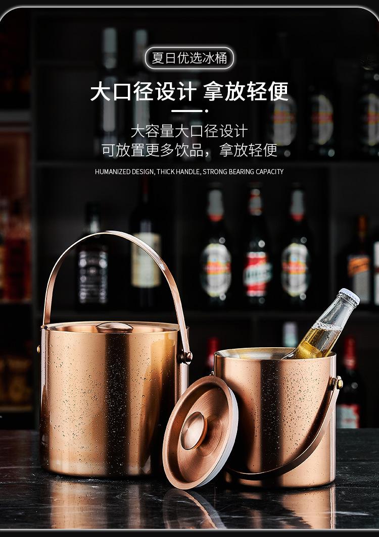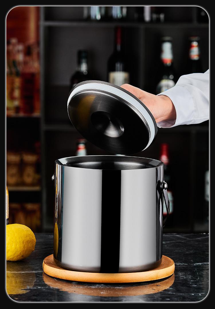 Cubo de hielo de acero inoxidable engrosado, con aislamiento de doble capa, para mantener el frío en barra, para uso comercial en KTV, para champán, cerveza helada y vino tinto.