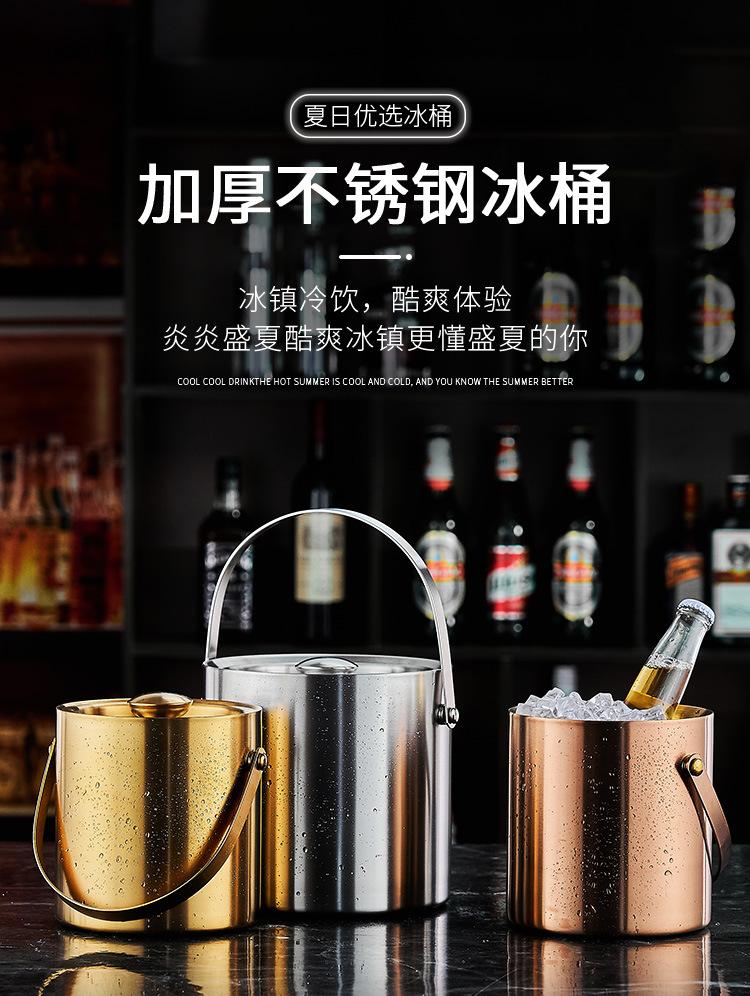 Compra Cubo de hielo de acero inoxidable engrosado, con aislamiento de doble capa, para mantener el frío en barra, para uso comercial en KTV, para champán, cerveza helada y vino tinto. al por mayor en Joom.pro