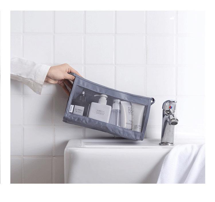 Bolsa de lavado de malla triangular de mano, bolsa de cosméticos de viaje de gran capacidad, bolsa de almacenamiento, bolsa de lavado, bolsa de cosméticos de malla portátil