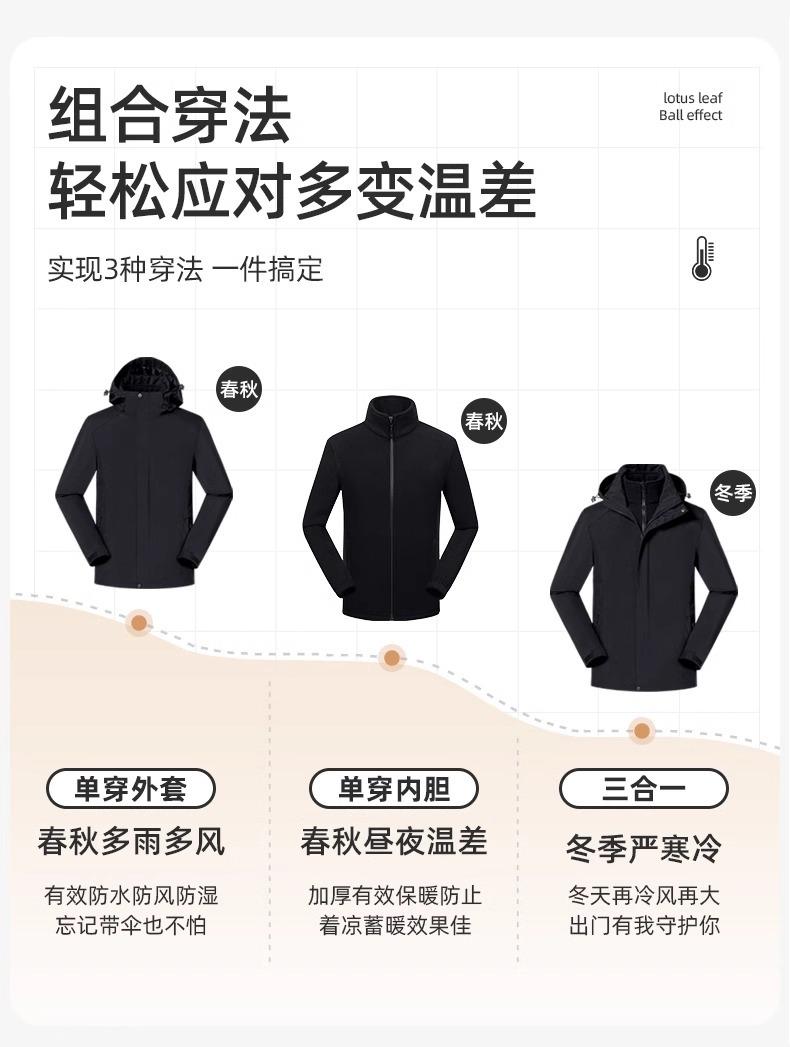 Ropa de asalto para exteriores de otoño e invierno 2024, traje de montañismo impermeable, a prueba de viento, desmontable, de dos piezas, tres en uno, con sellado térmico para hombres y mujeres
