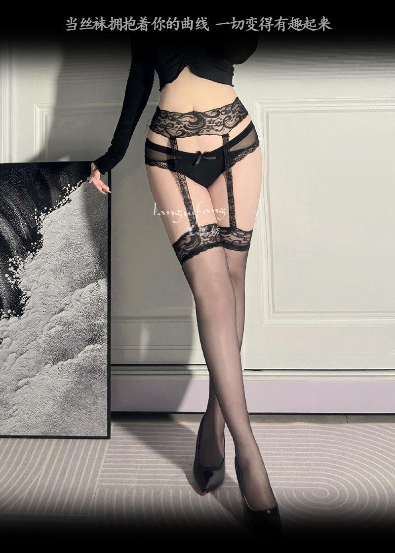 Medias ultrafinas de seda blanca pura para mujer con liga de encaje sexy con costuras giratorias Langui 529