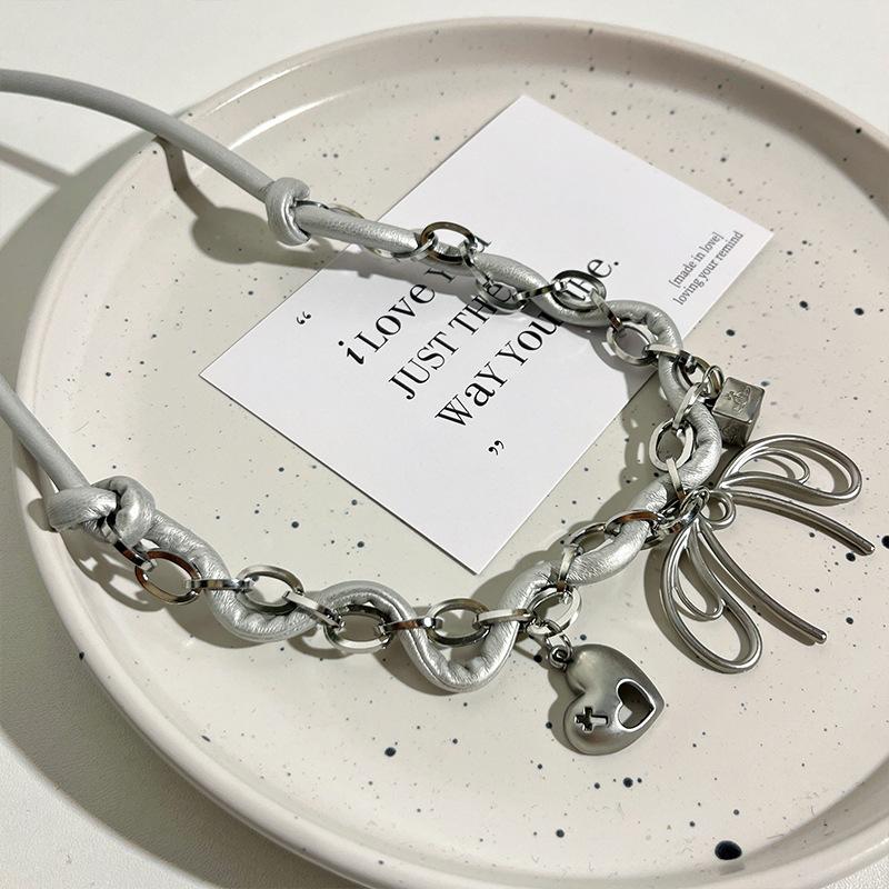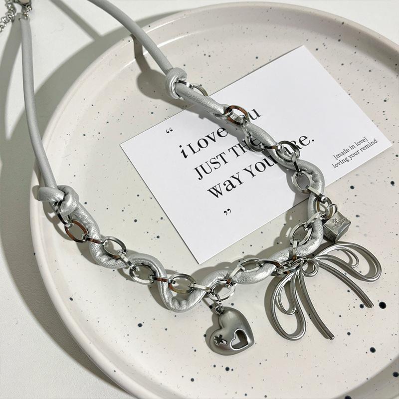 Collar con colgante de mariposa vintage con forma de corazón y cordón de cuero para mujer, gargantilla estilo punk, cadena de clavícula de alta calidad, a la moda.