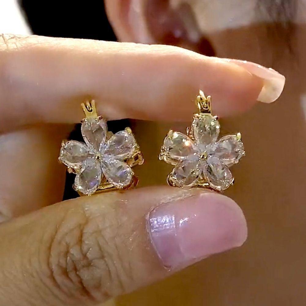 2023 nuevos pendientes de circonita, pendientes de flores, pendientes elegantes y exquisitos, pendientes de hadas de moda, diseño personalizado y simple
