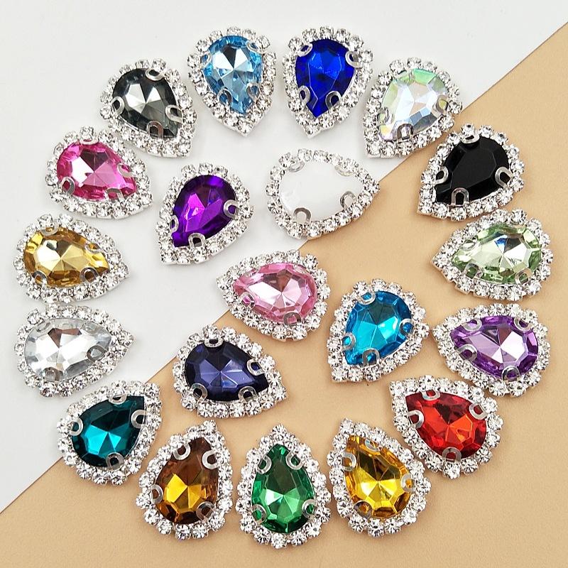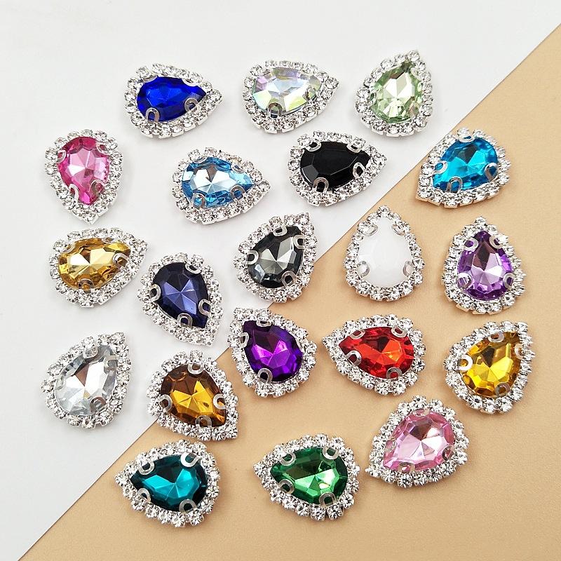 Encaje Acrílico Perforado en Forma de Gota Cosido a Mano Accesorios de Diamante DIY Nupcial Xiuhe Accesorios de Ropa Venta al Por Mayor