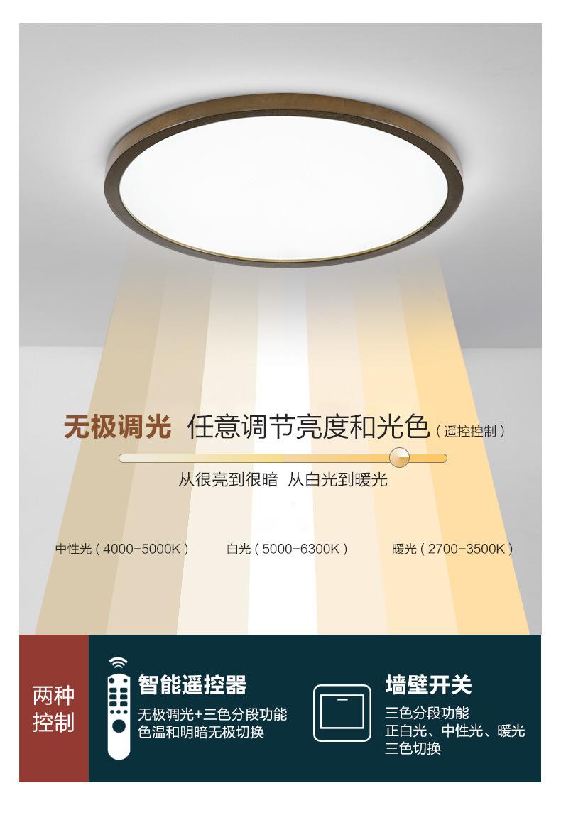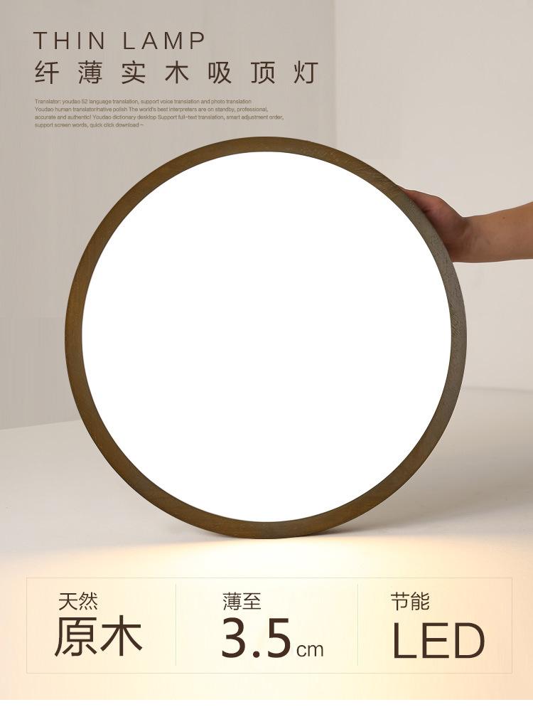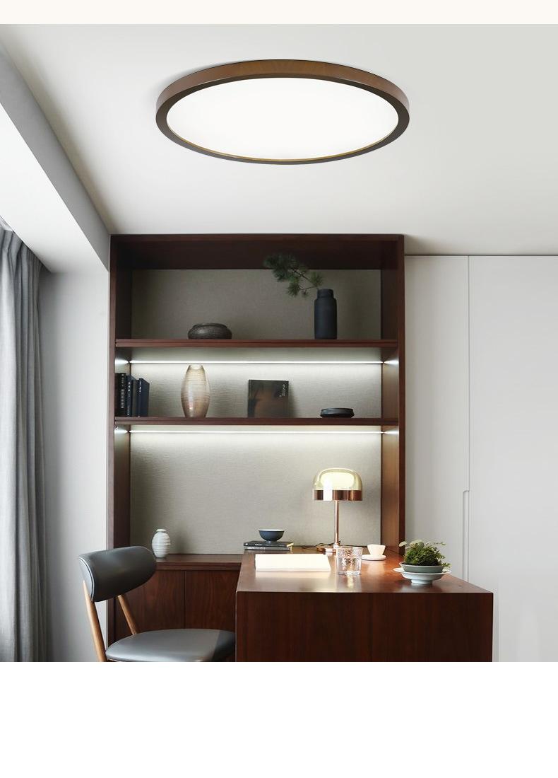 Lámpara de techo redonda ultrafina para dormitorio, moderna y sencilla, para sala de estar, comedor, estudio, color nogal, para balcón.