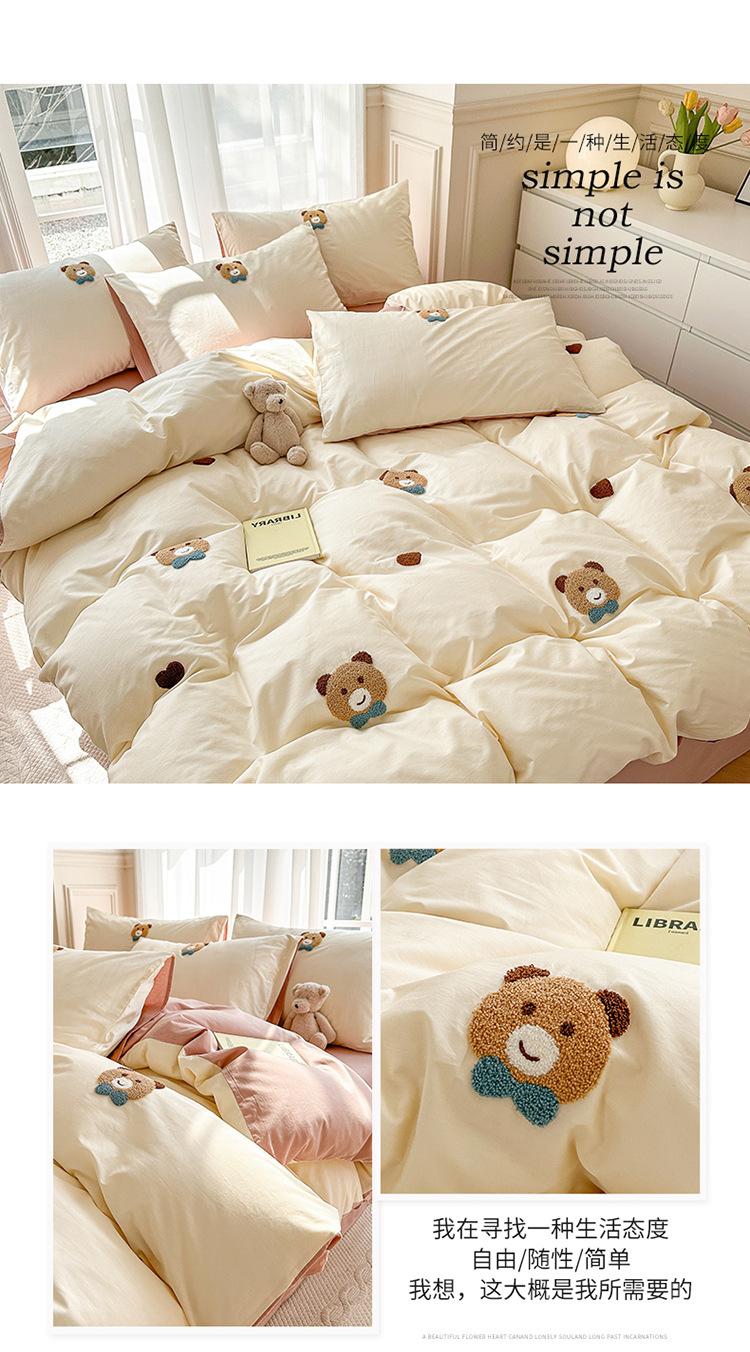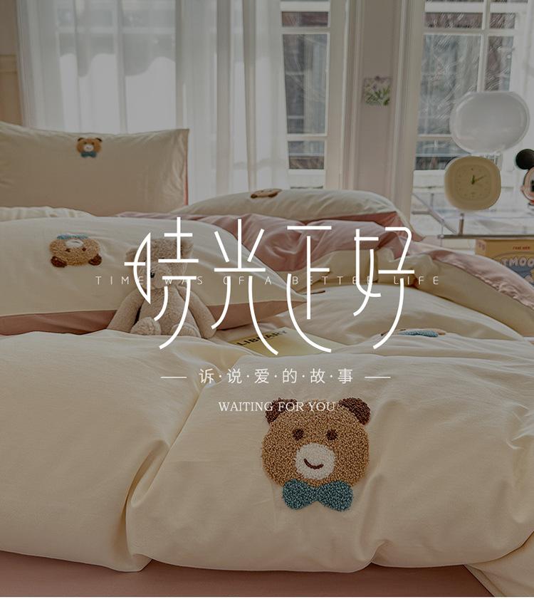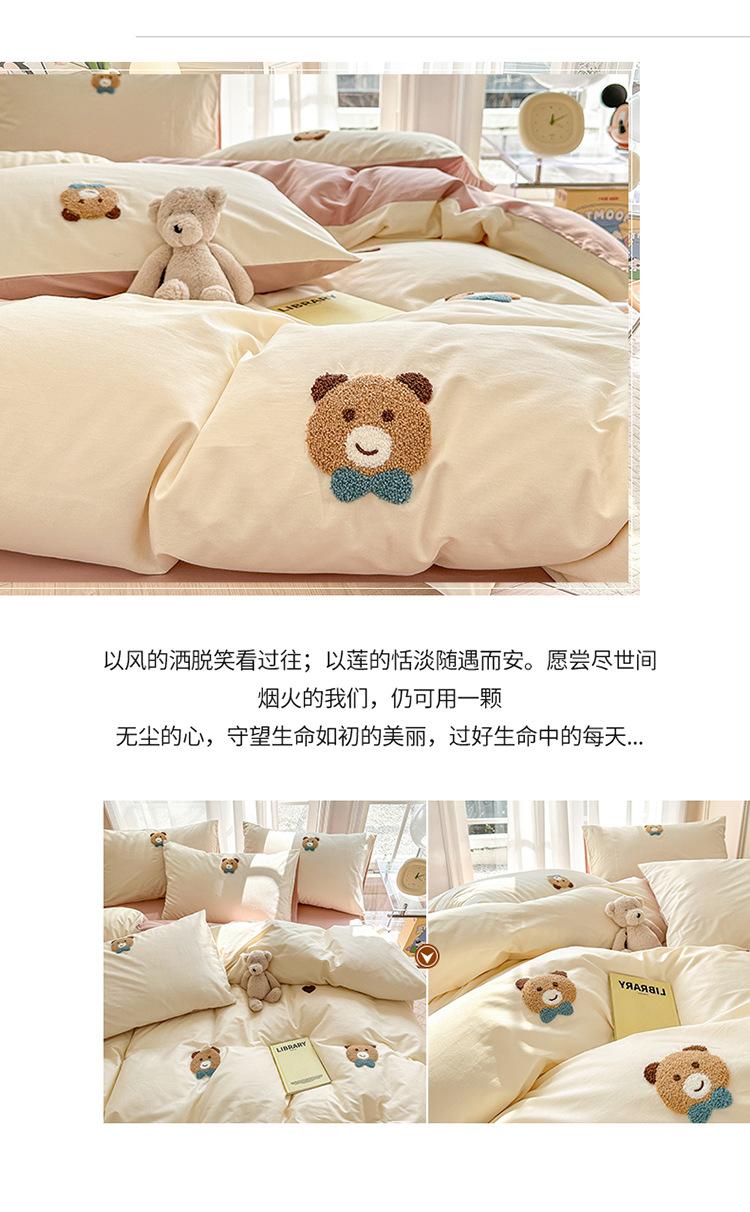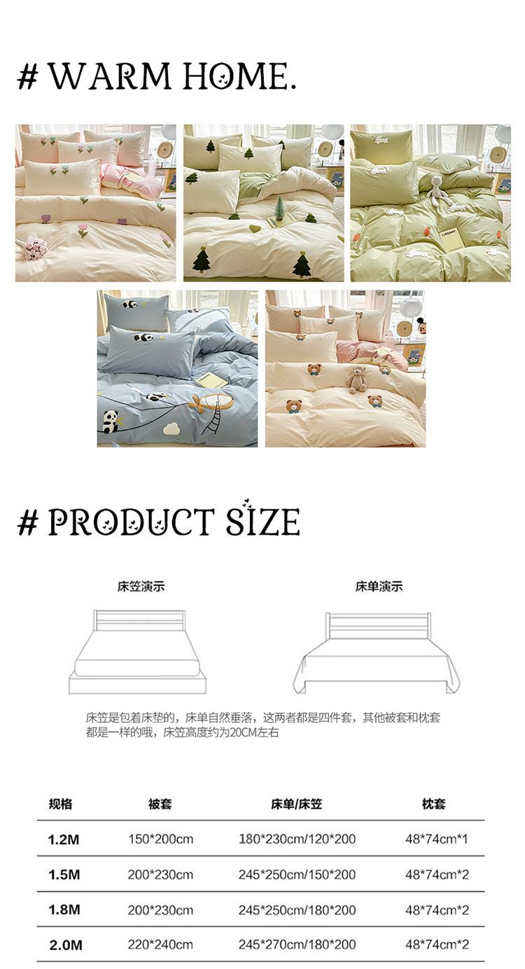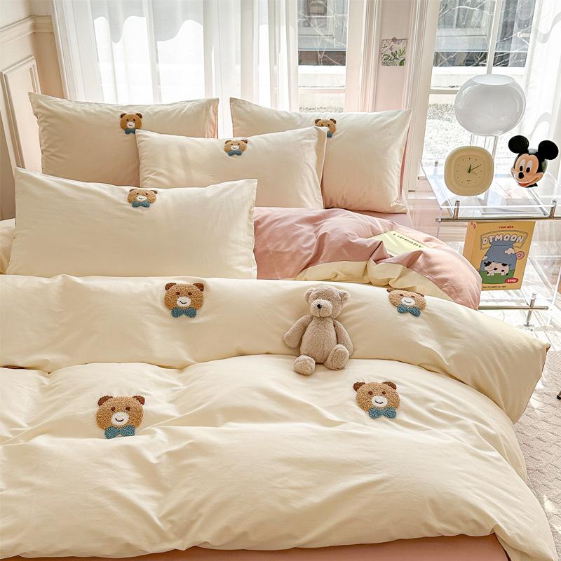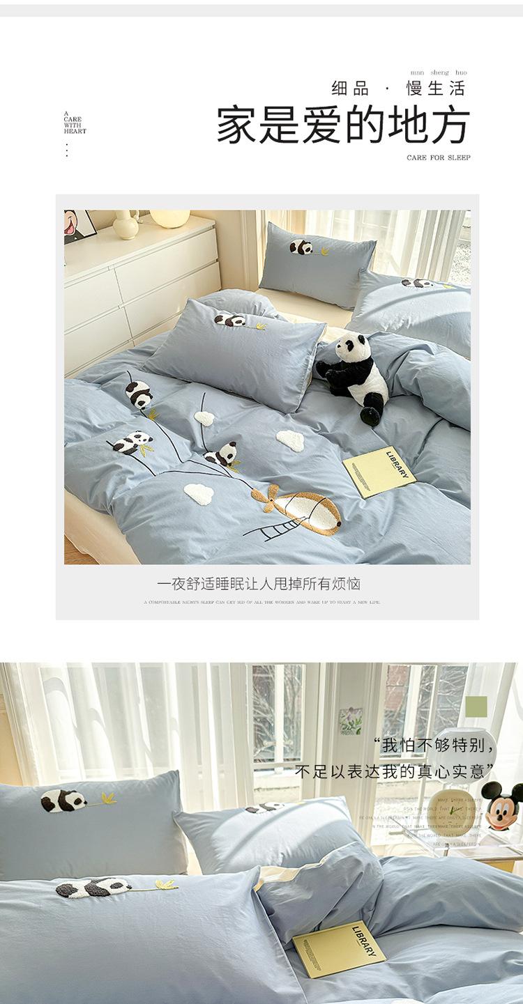 Conjunto de cuatro piezas de algodón fresco pequeño Ins, bordado de algodón, estilo de dibujos animados simple, toalla bordada, sombrero de cama, ropa de cama, conjunto de tres piezas 4