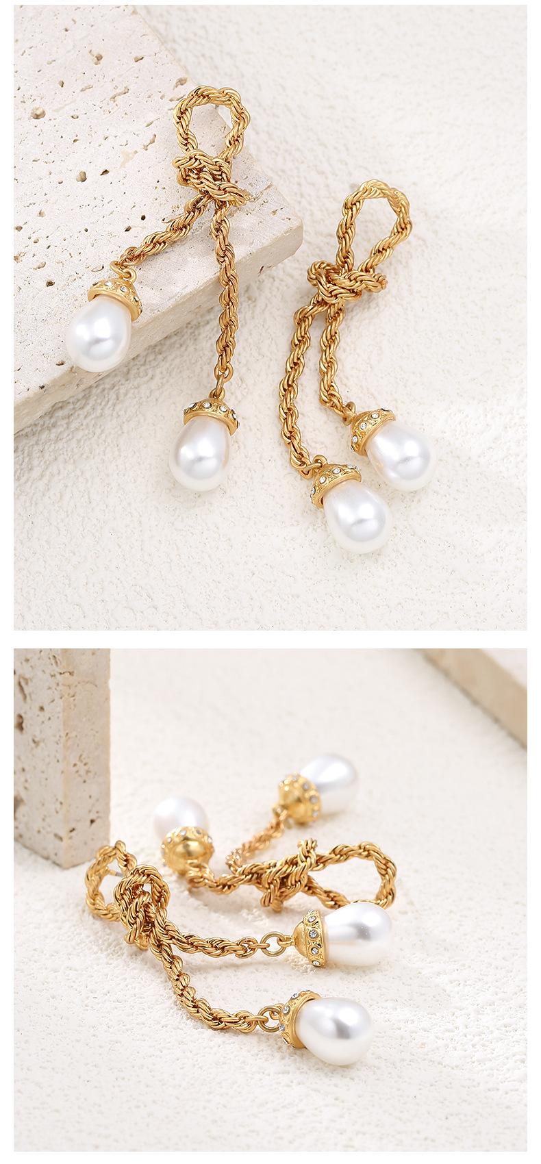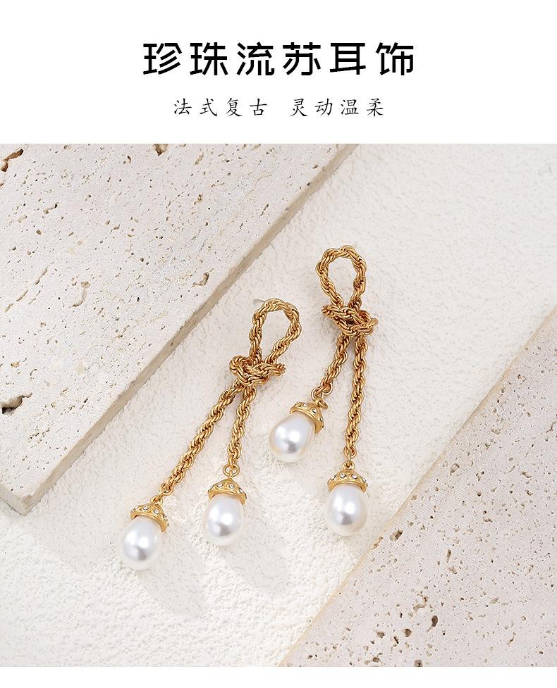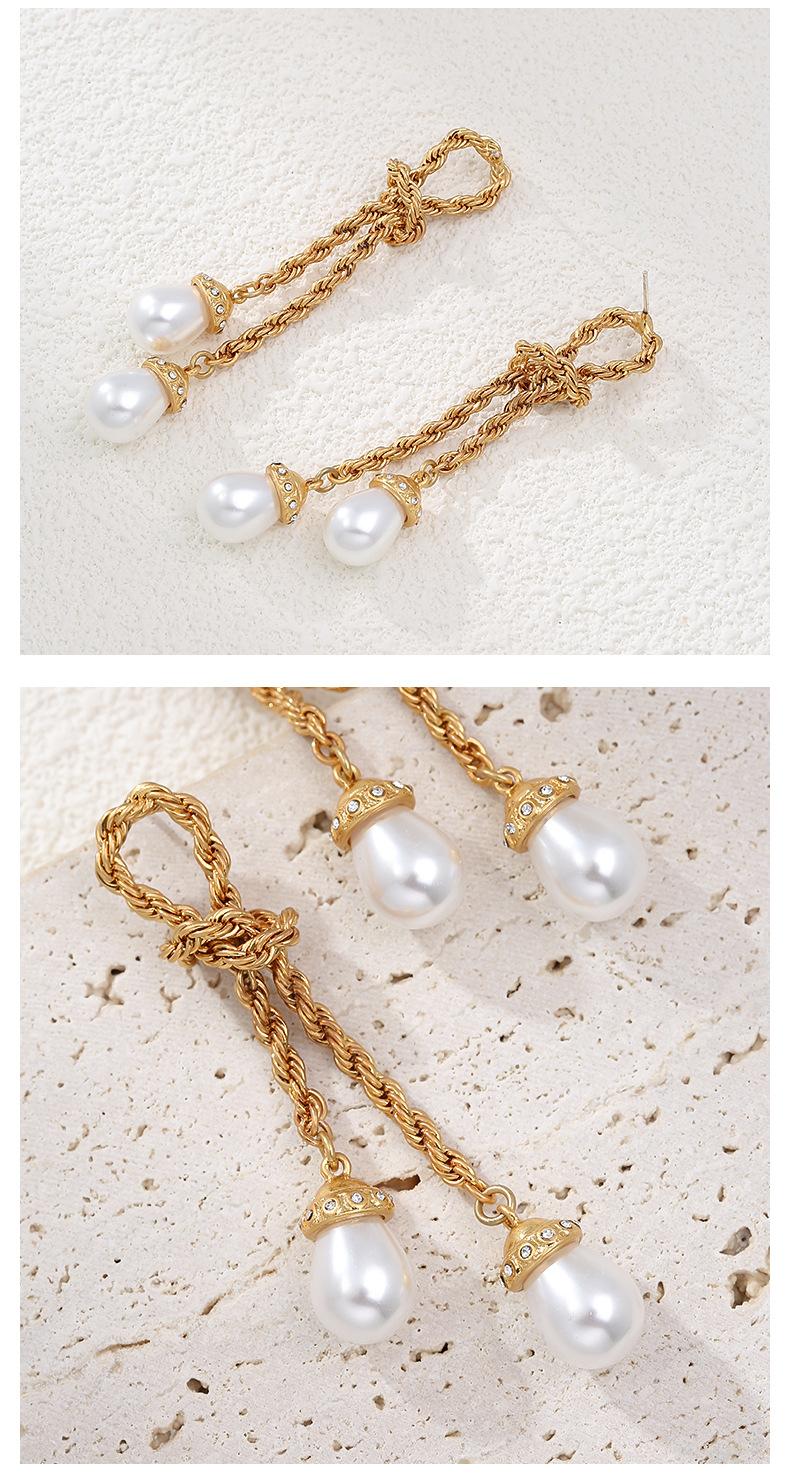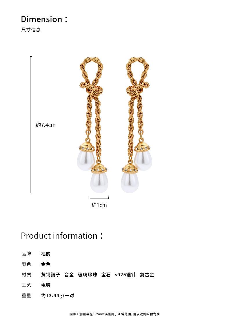 Pendientes de perlas con diseño de nicho retro francés, pendientes con nudo de cuerda torcida, elegantes pendientes de aguja de plata S925 con temperamento al por mayor