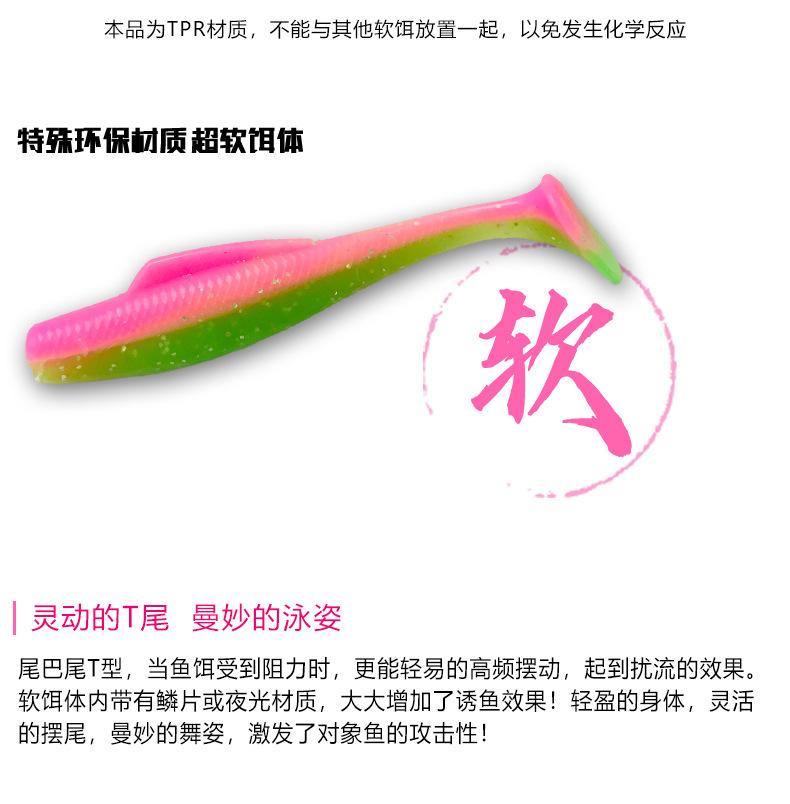 Luya Soft Bait T-tail flotante de agua Soft Bait T-tail gusano blando pez blando cebo falso raíz pesca cabeza de plomo anzuelo pesca en grupo pesca lubina mandarín deformado
