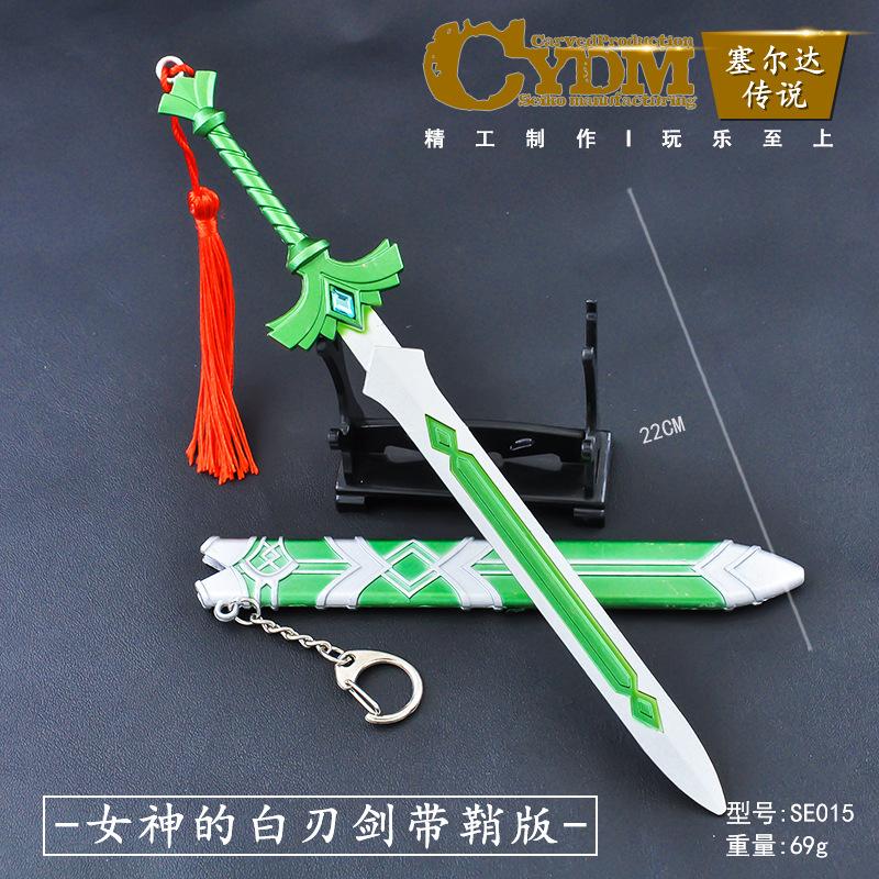 El juego The Legend of Zelda que rodea la espada de hoja blanca de la diosa del aliento salvaje con vaina, adornos artesanales totalmente metálicos.