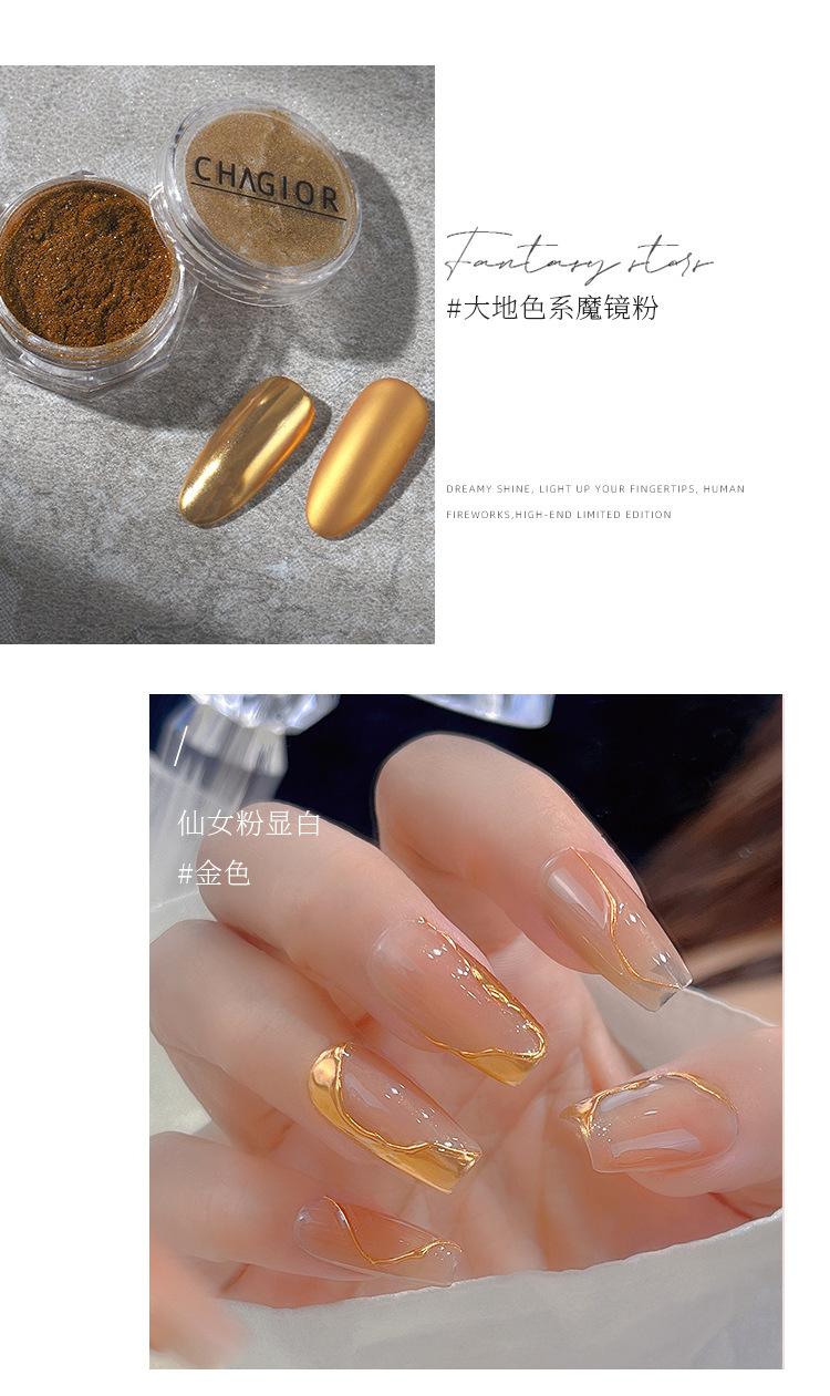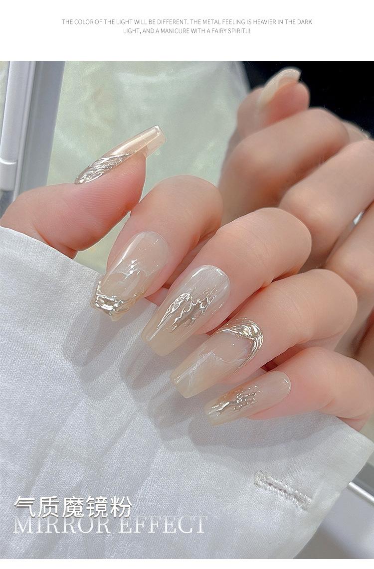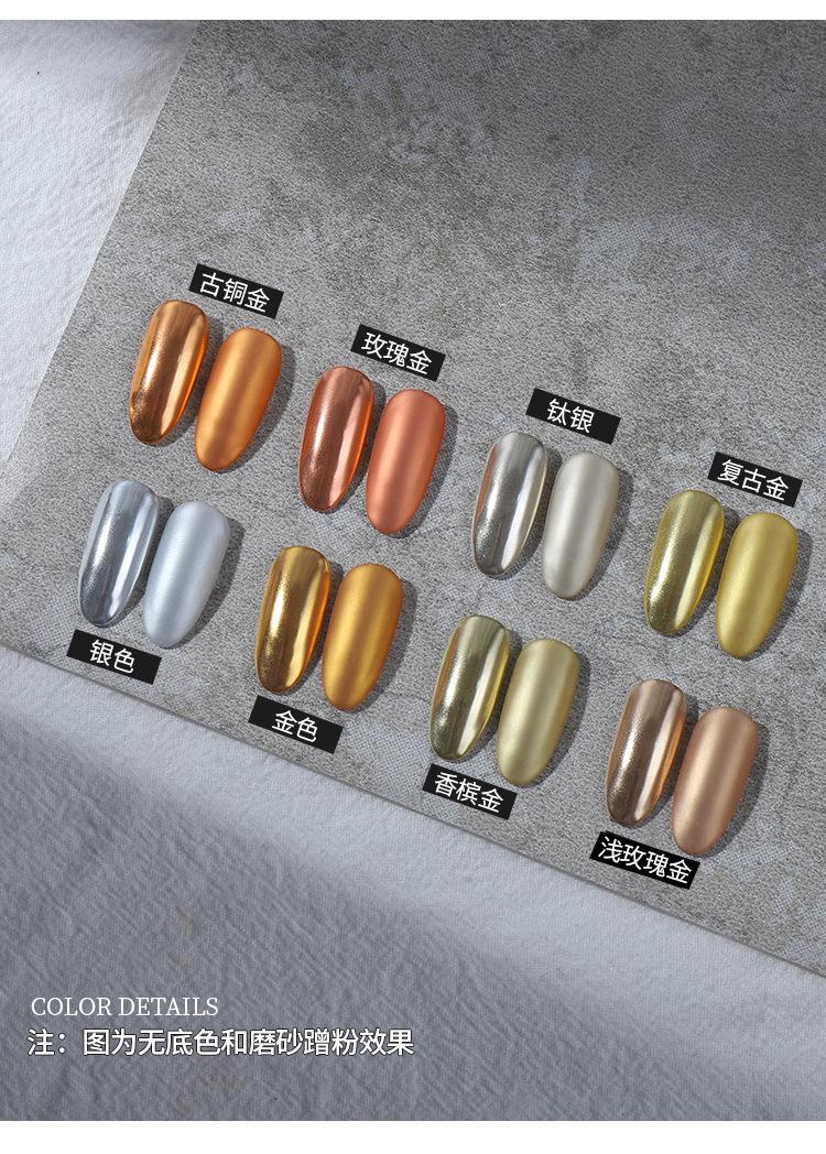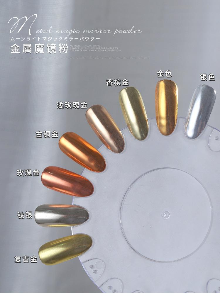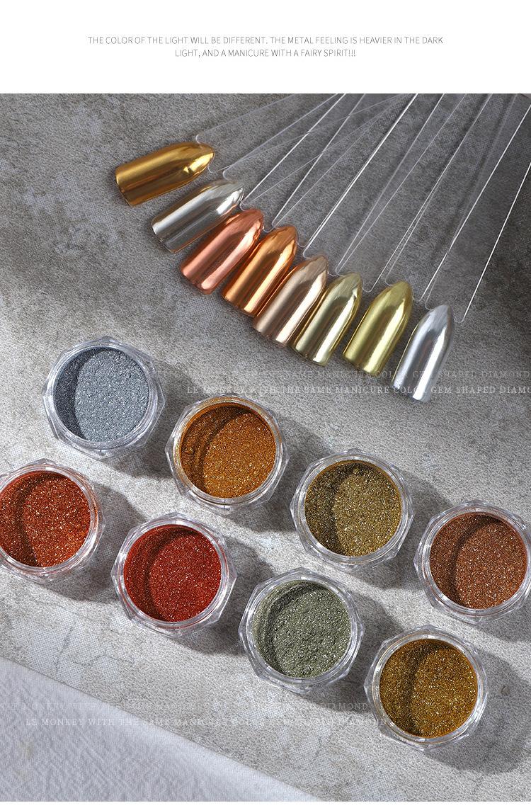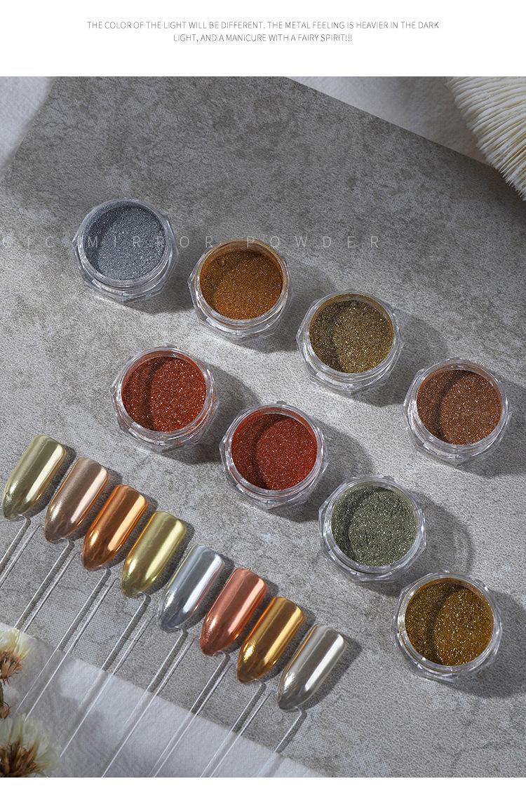 Polvo espejo mágico para uñas champán aurora plateado metálico pintura brillo espejo fuerte purpurina delicada súper brillante concha 8 colores