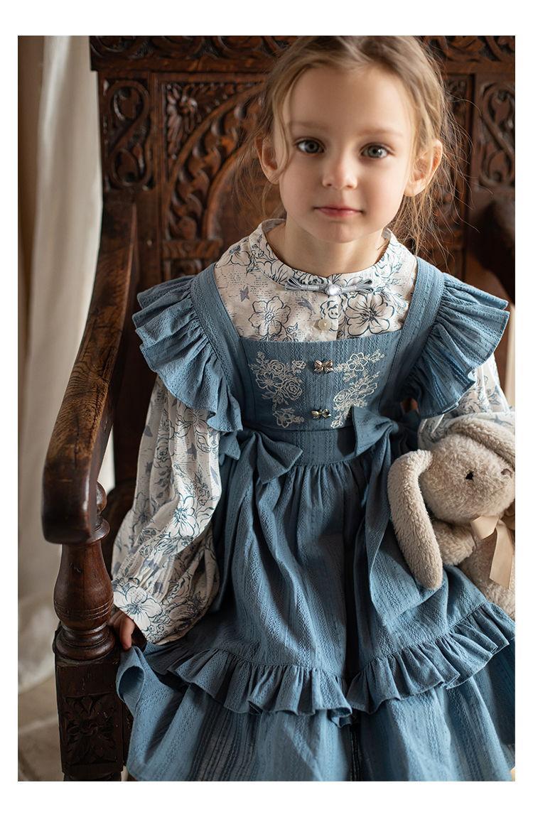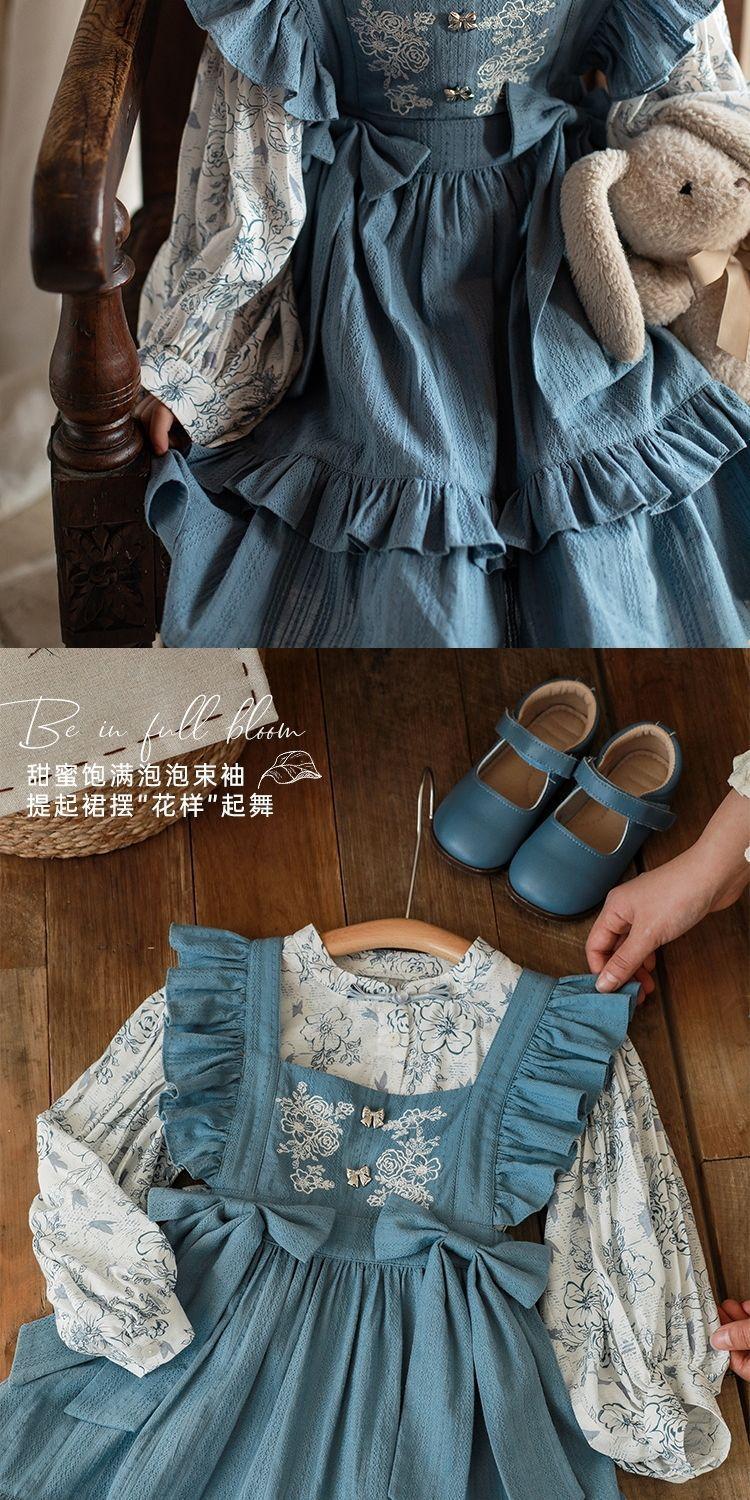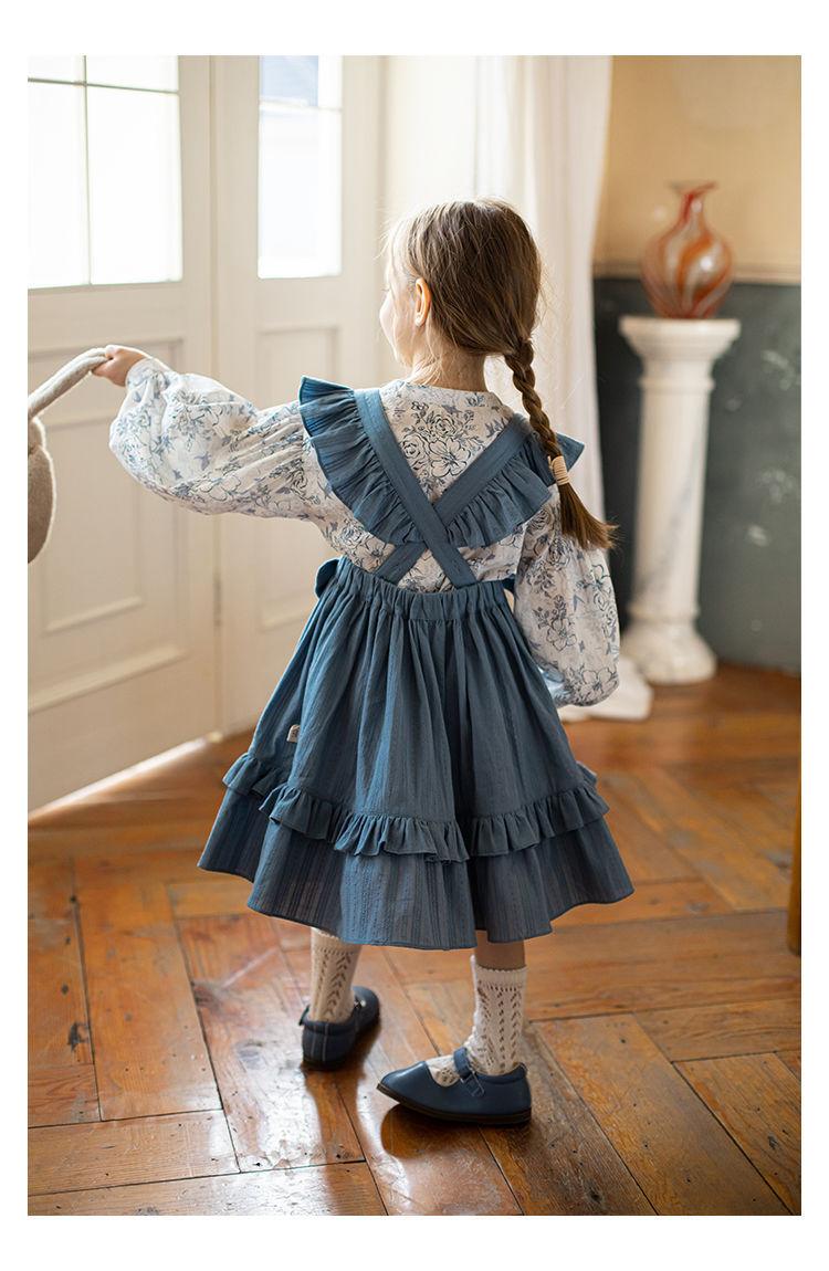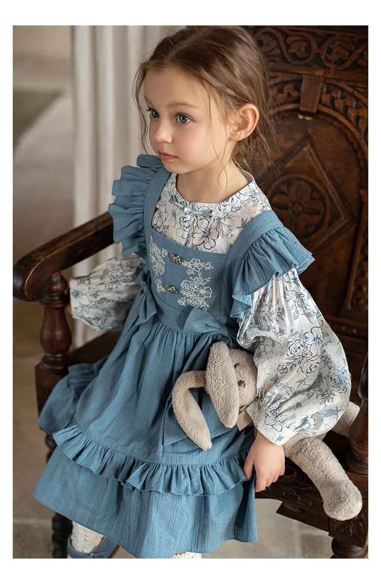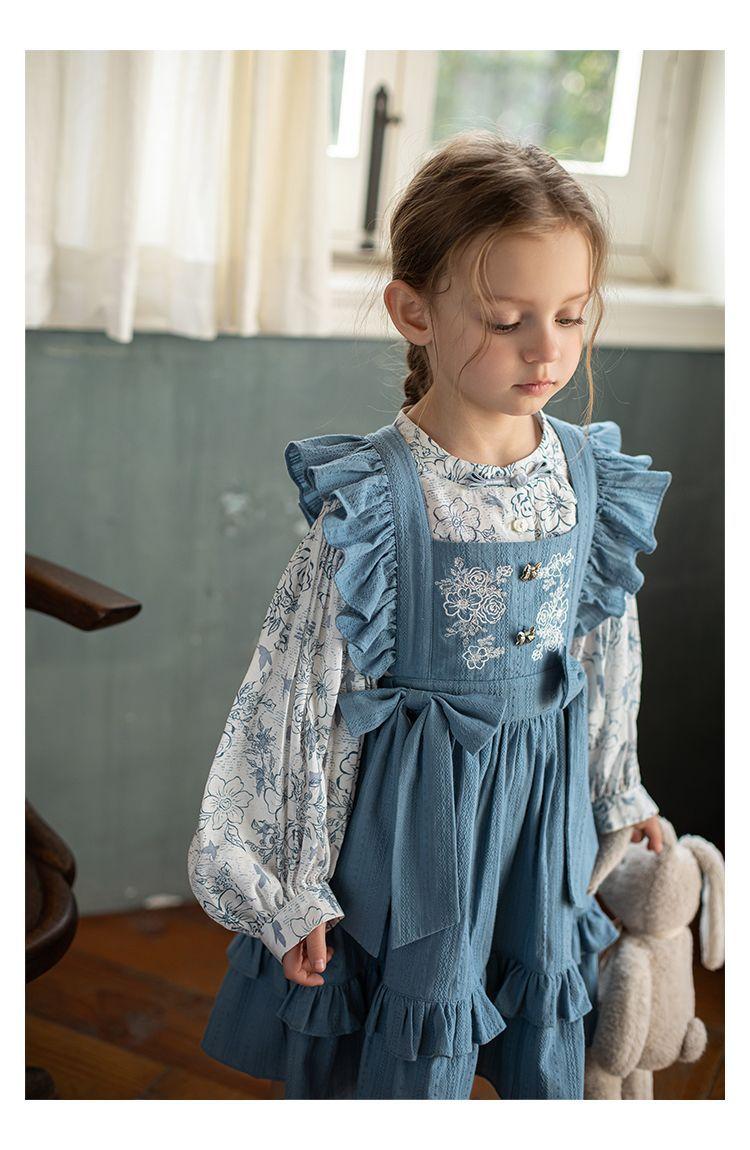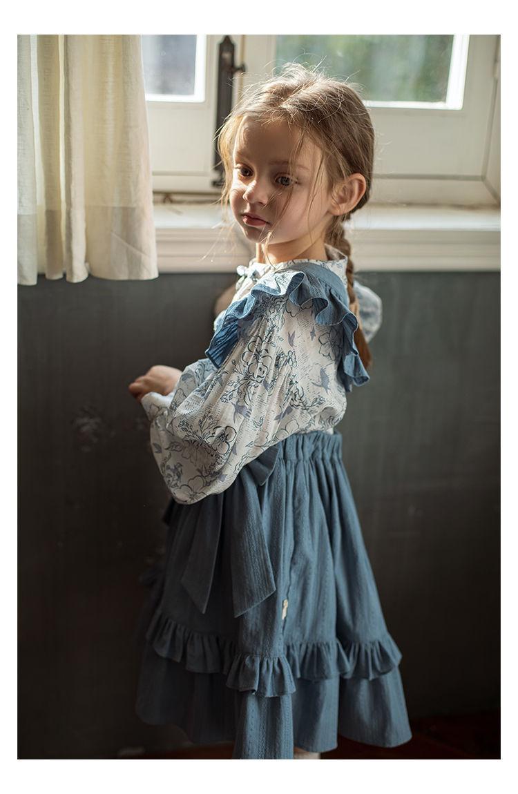 Traje de Otoño 2025 para Niñas Wulibu Vestido Dulce de Manga Abullonada Completa Camisa con Estampado Digital Completo