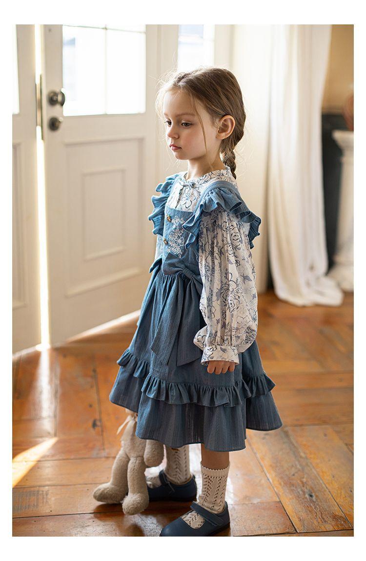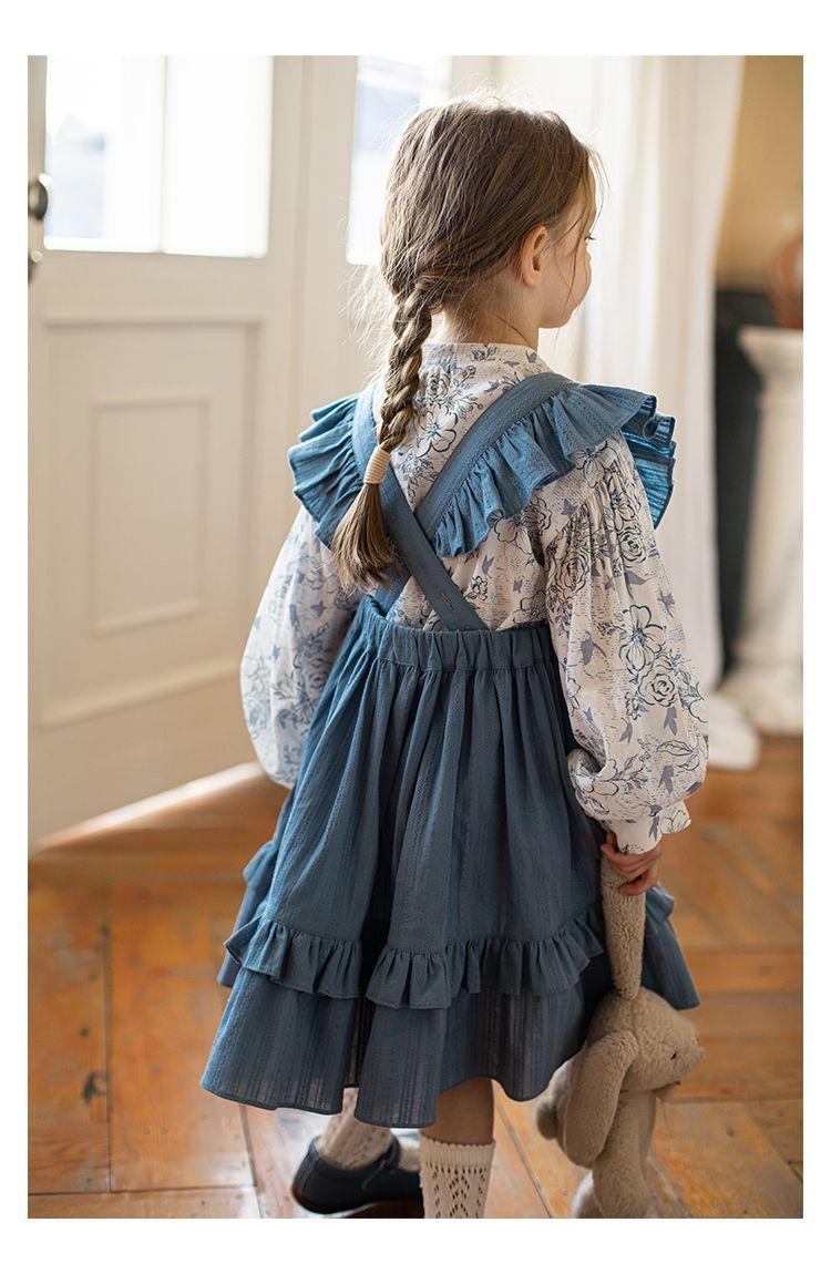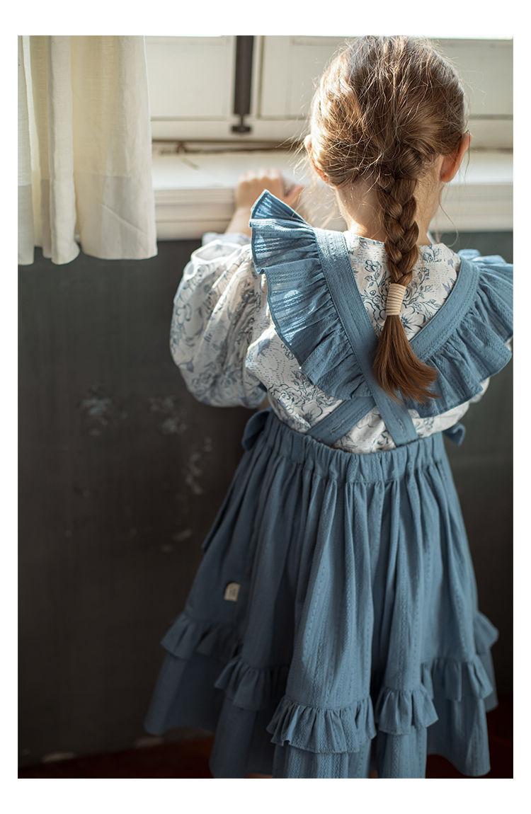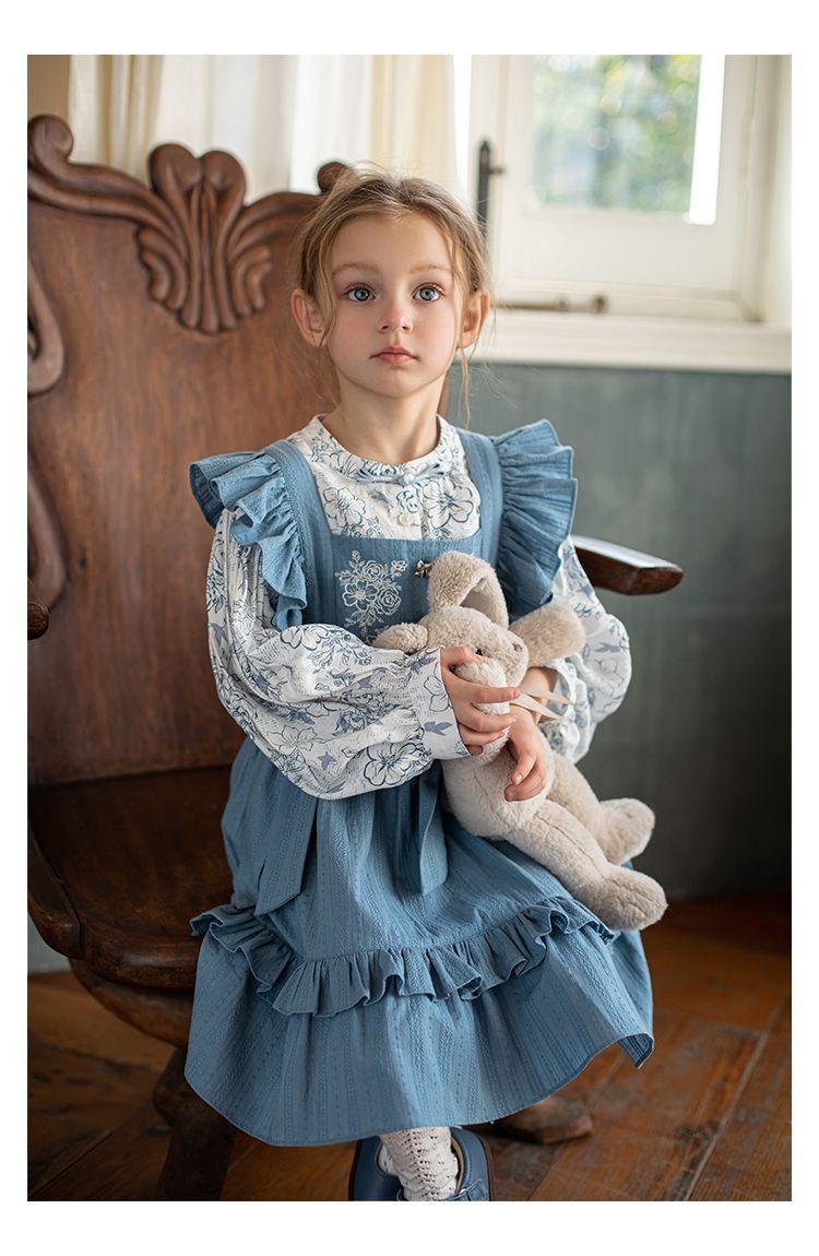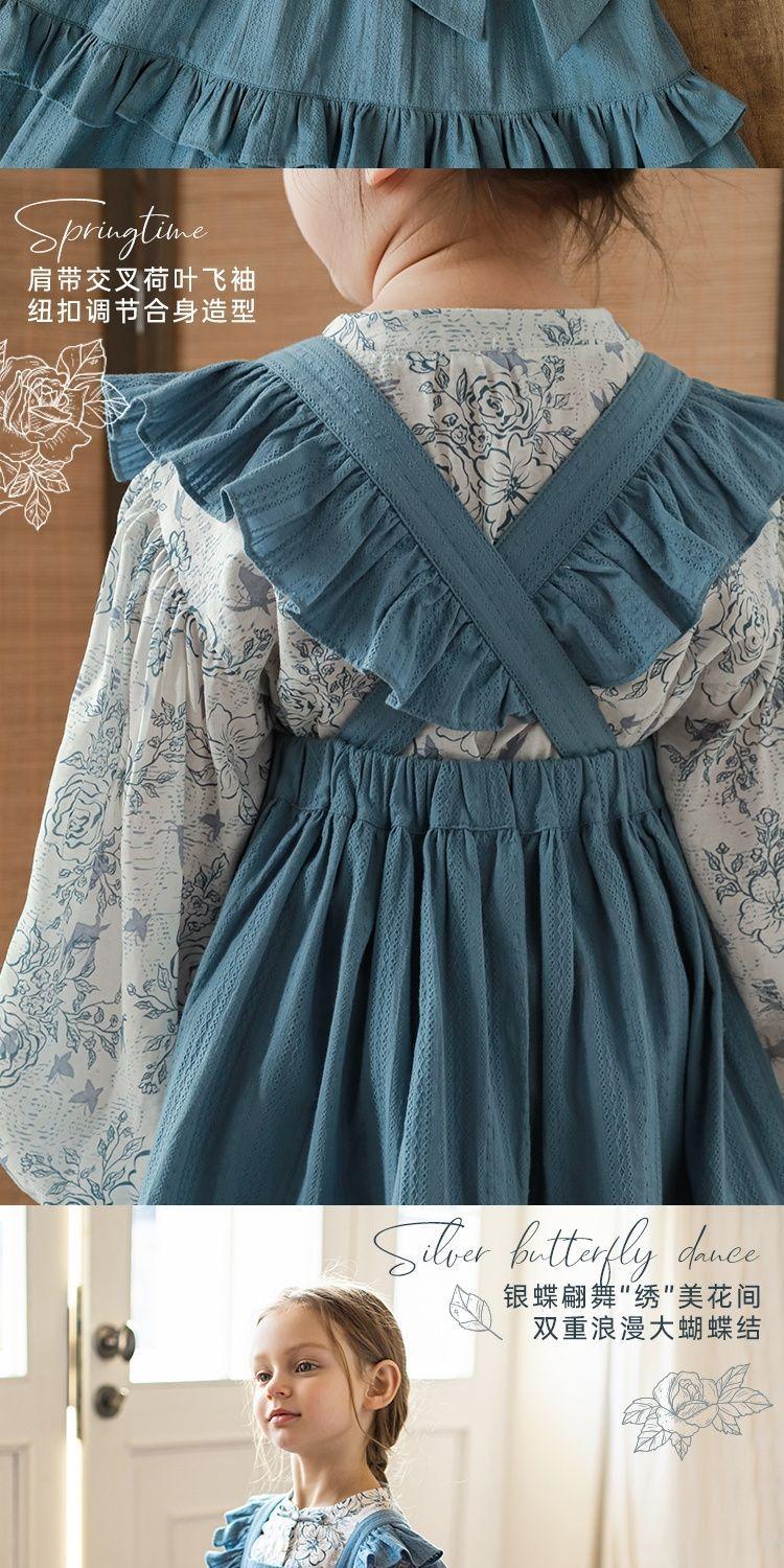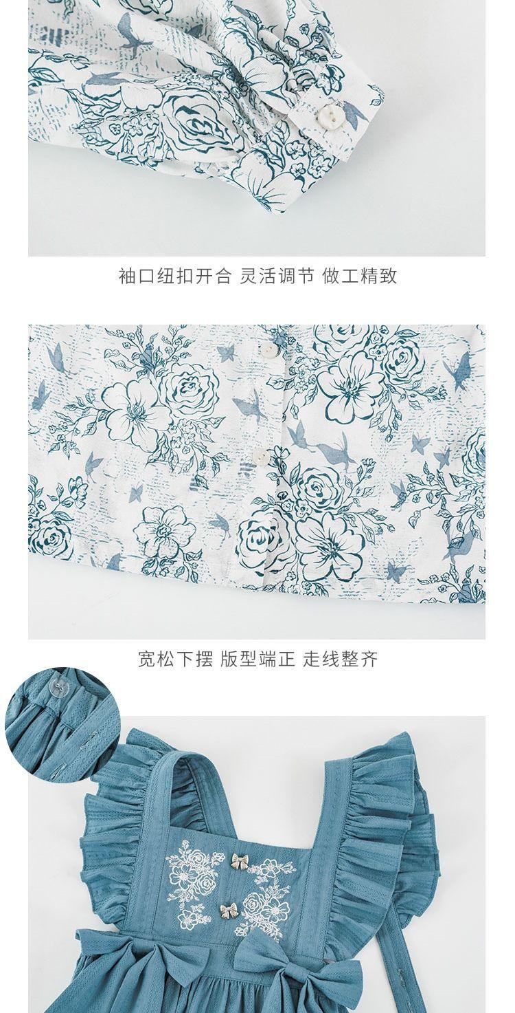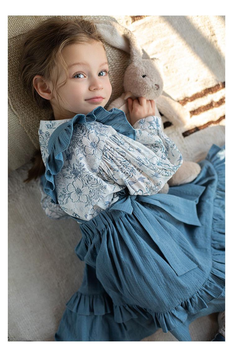 Traje de Otoño 2025 para Niñas Wulibu Vestido Dulce de Manga Abullonada Completa Camisa con Estampado Digital Completo