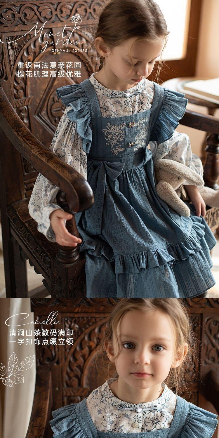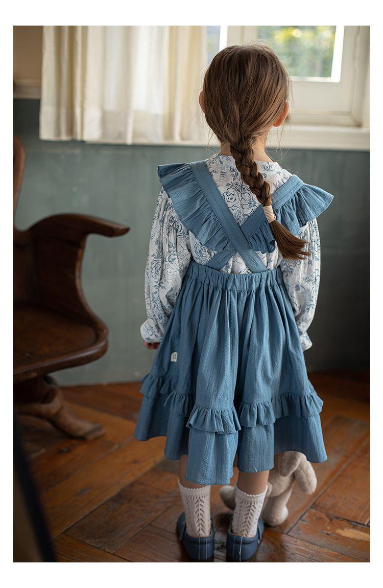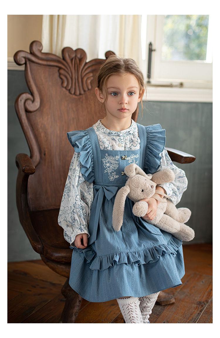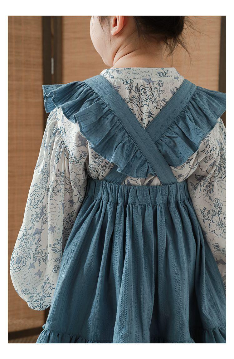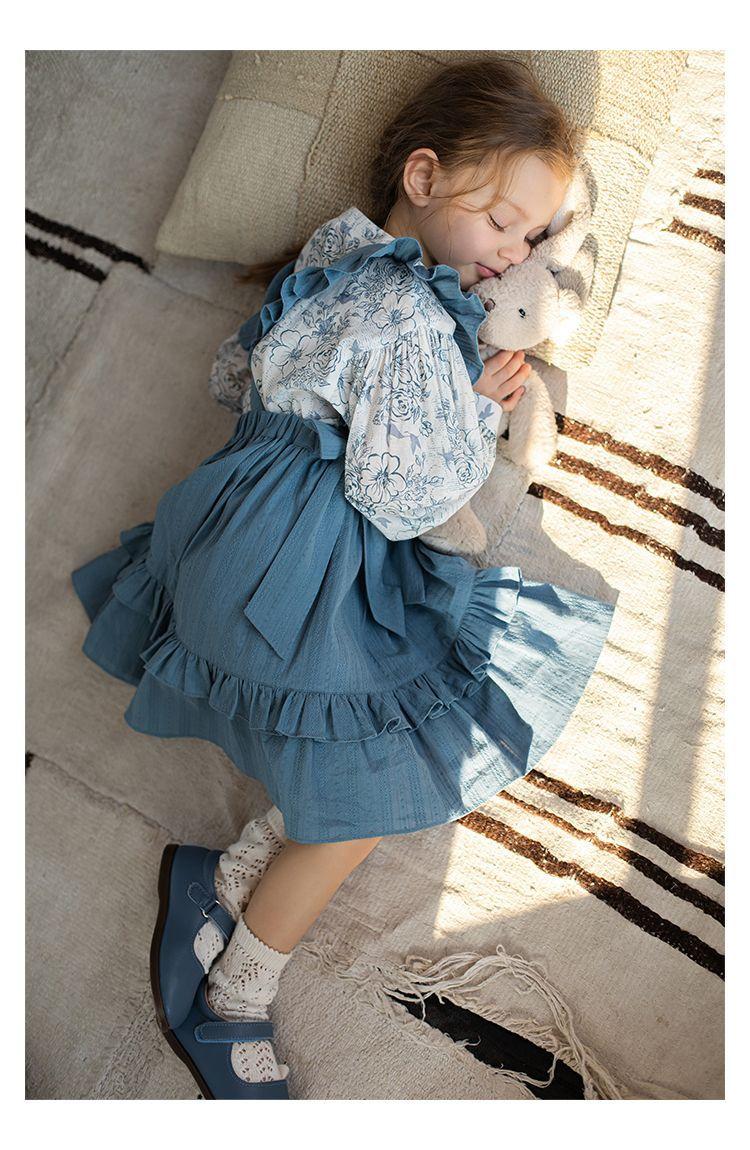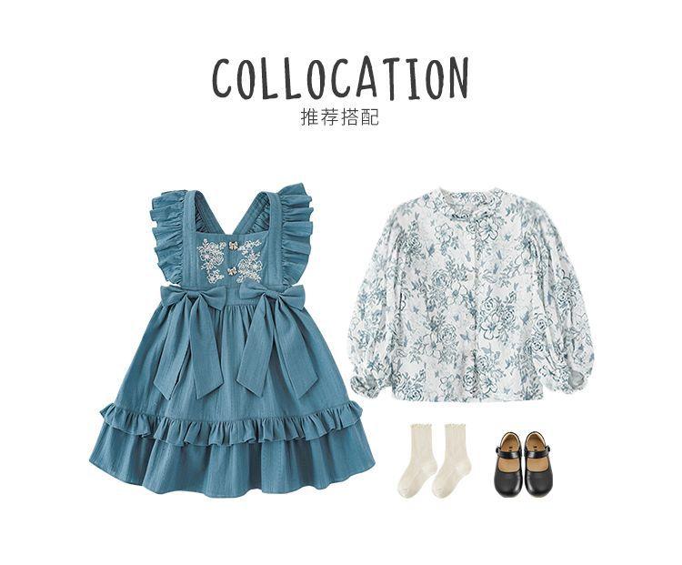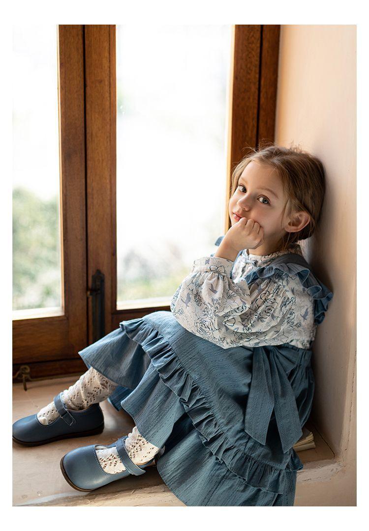 Traje de Otoño 2025 para Niñas Wulibu Vestido Dulce de Manga Abullonada Completa Camisa con Estampado Digital Completo
